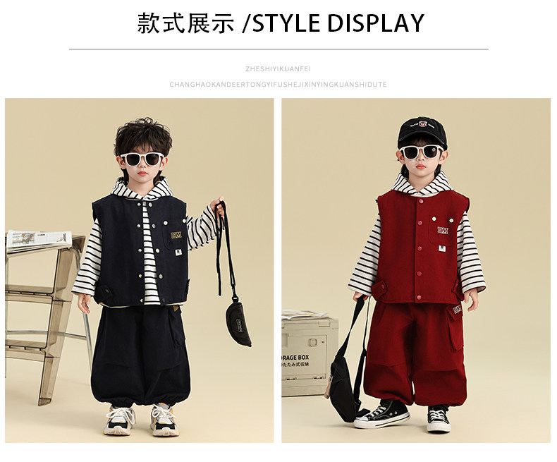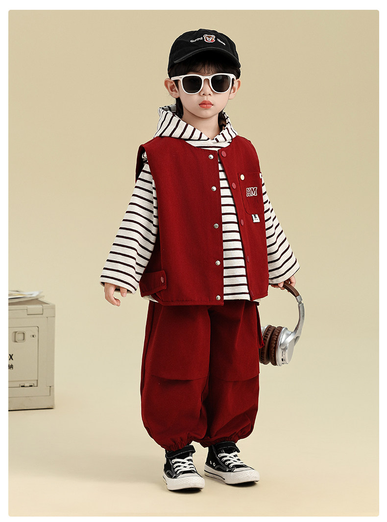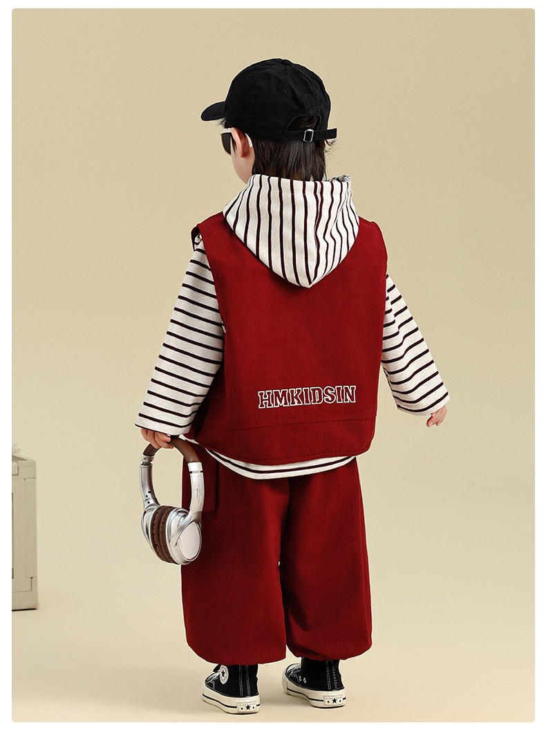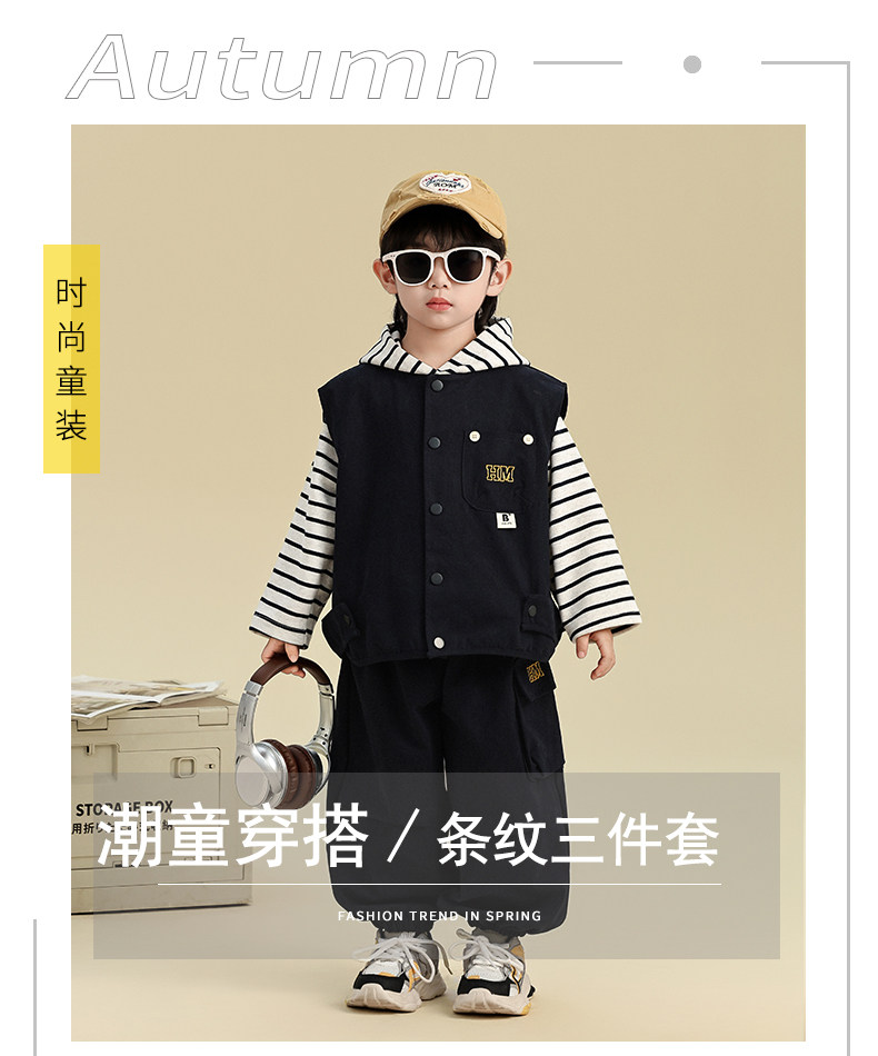 Boys' Autumn Outfit Set 2025 New Stylish Children's Sweatshirt Vest Three-Piece Set Trendy Baby Boy Autumn Clothes