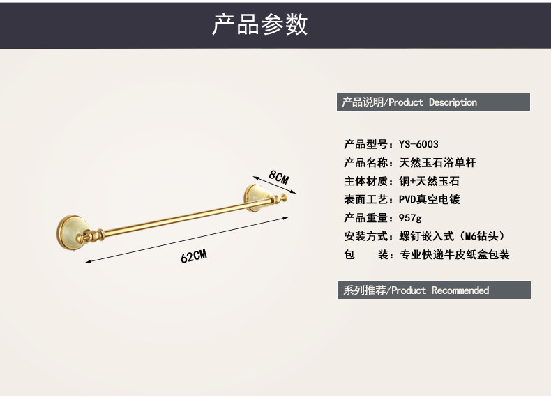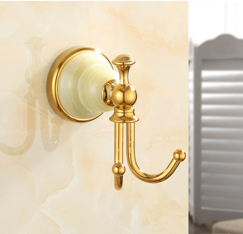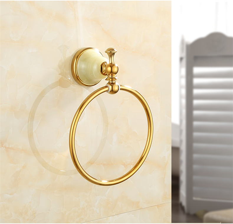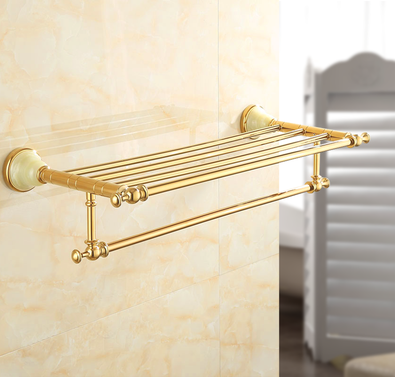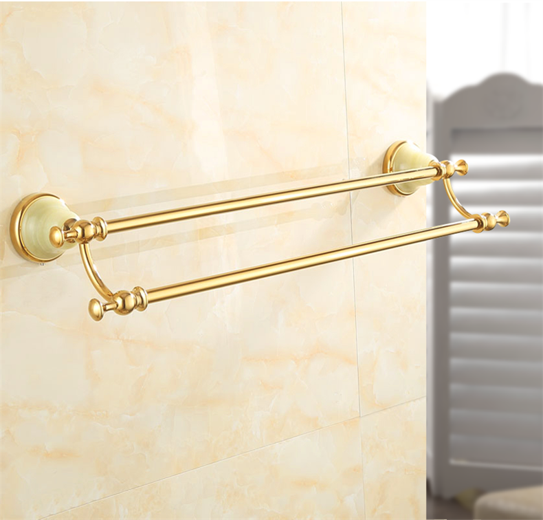 Italian Aisino European-Style All-Copper Natural Jade Towel Rack Bath Towel Rack Storage Bathroom Hardware Accessories