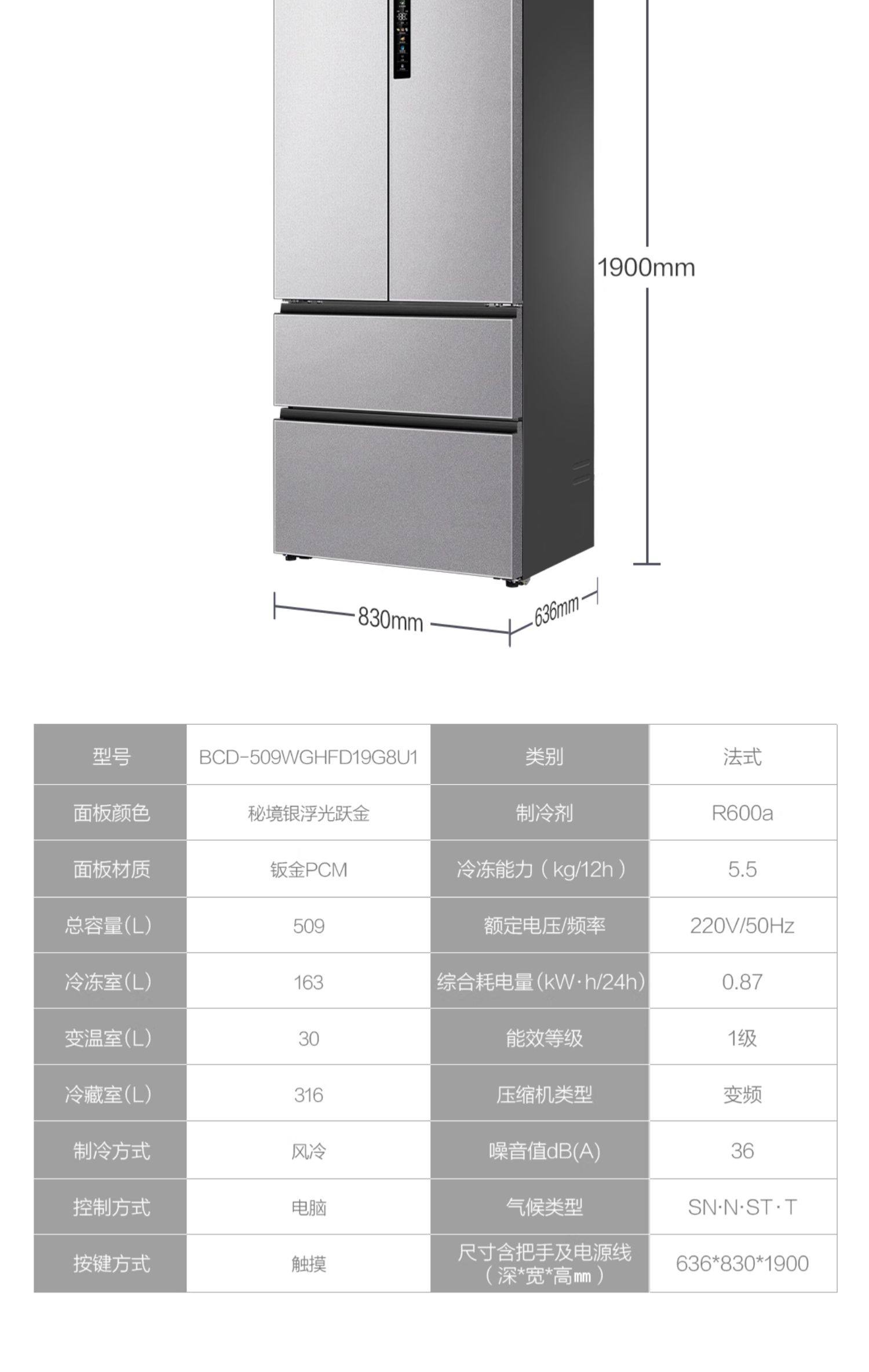 Haier Bcd-509Wghfd19G8U1 Full-Space Fresh-Keeping Air-Cooled Refrigerator with Three Temperature Settings for Mothers and Babies