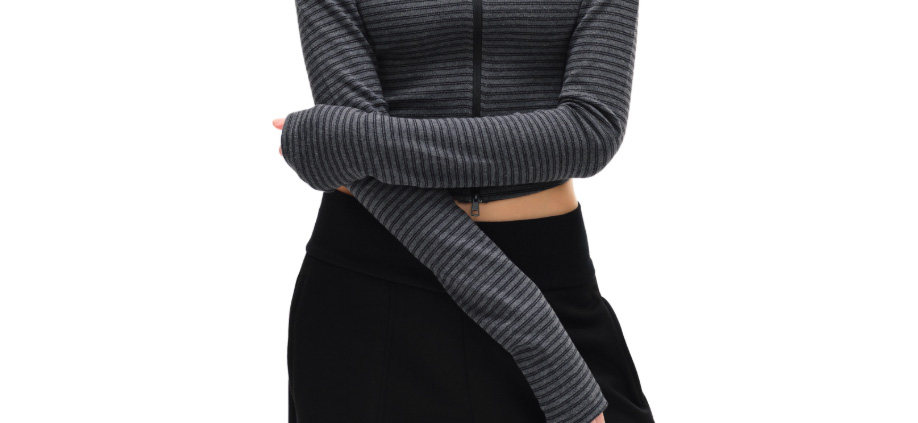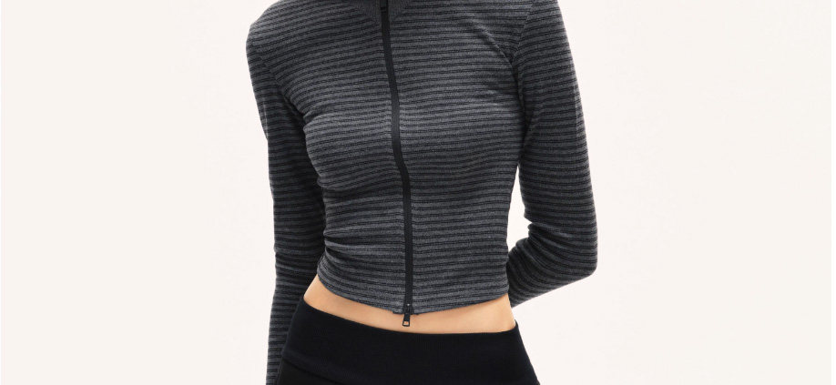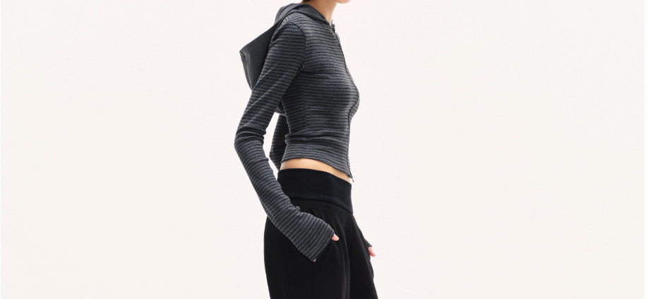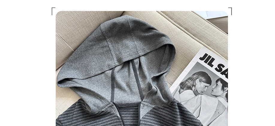 American-Style Spicy Girl Slim-Fit Striped Hooded Sweatshirt Jacket for Women, Autumn and Winter Minimalist Style, Slimming, Regular Shoulder, Short, Fitted Hoodie