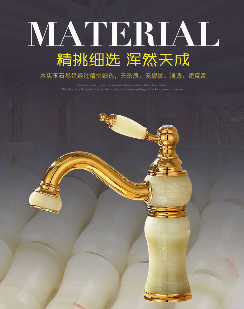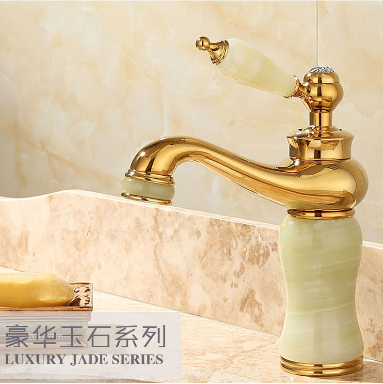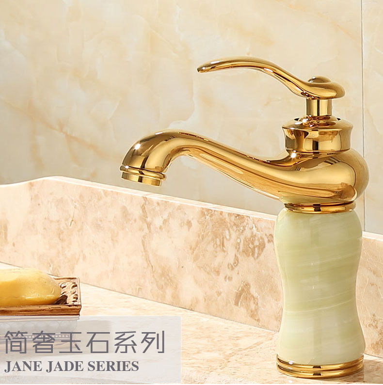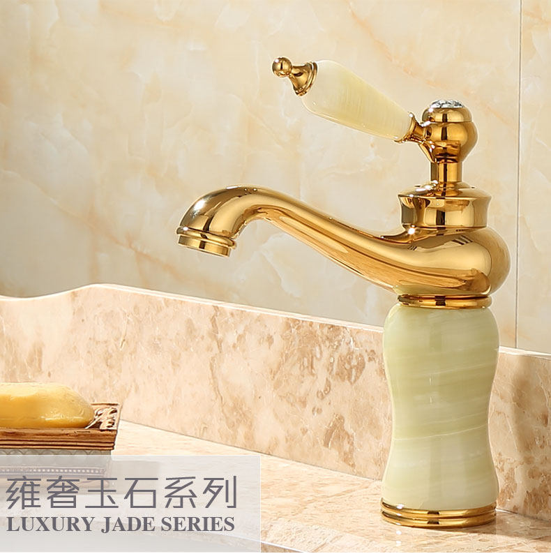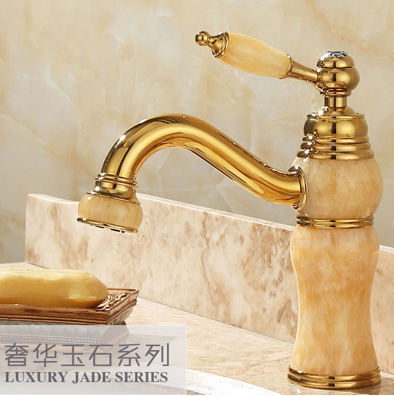 Italian Aisino All-Copper Natural Jade Washbasin Hot and Cold Faucet Gold Rotating Faucet