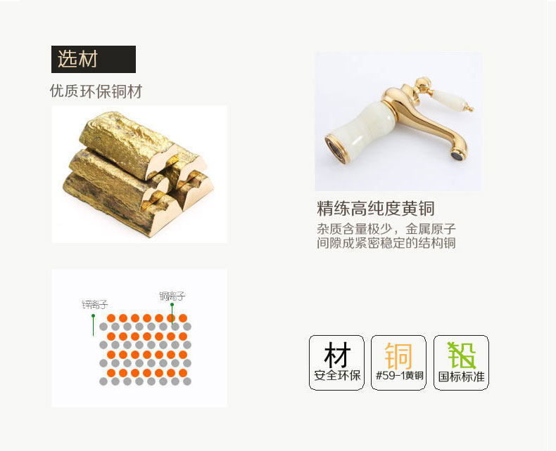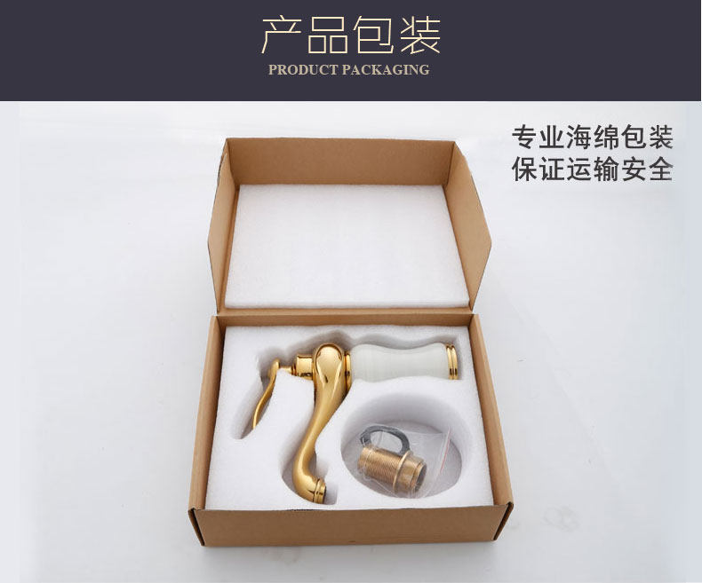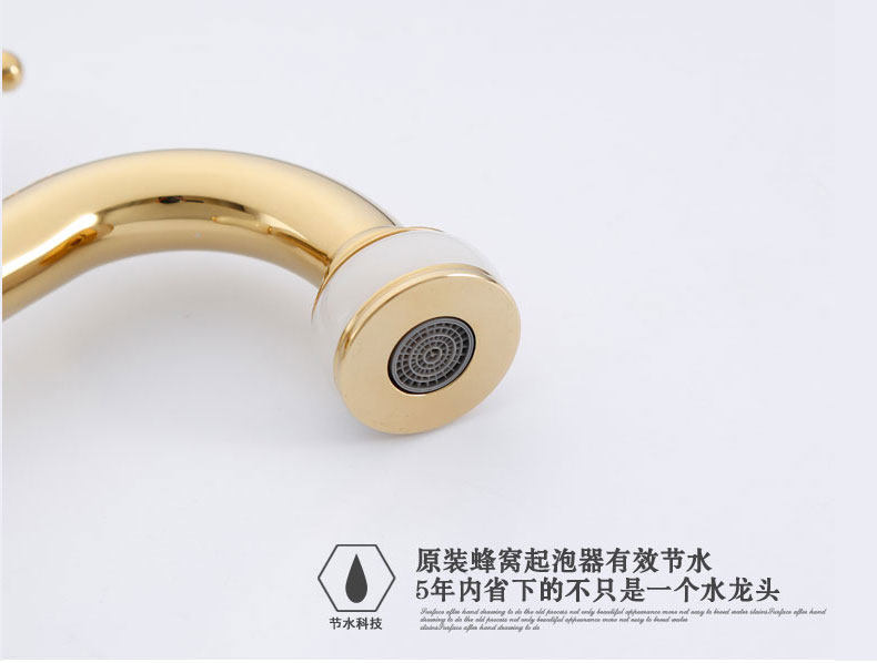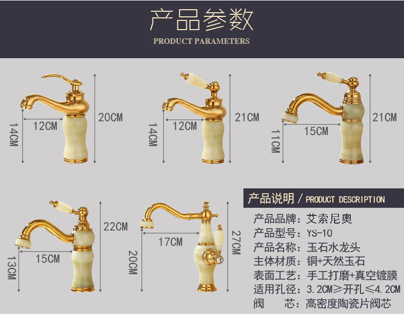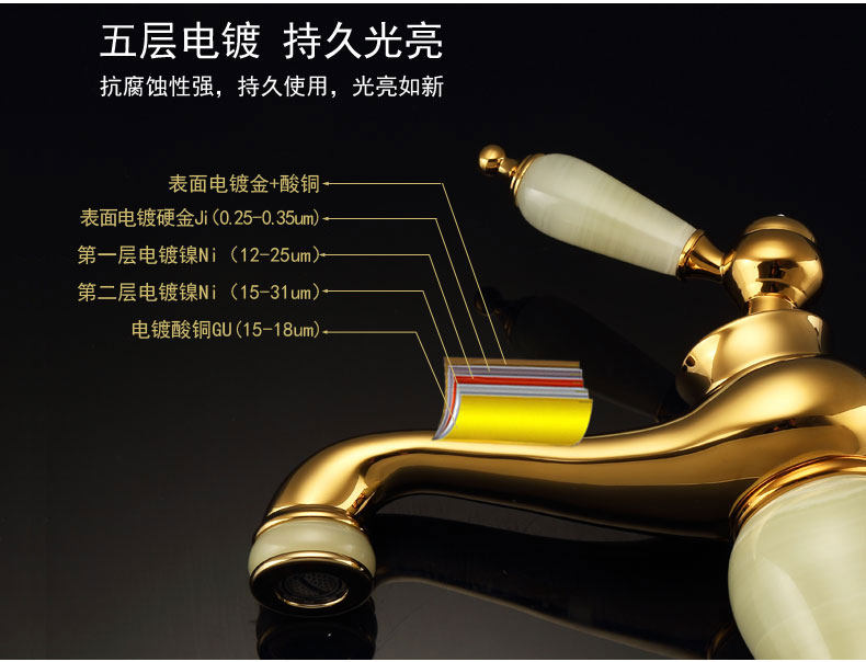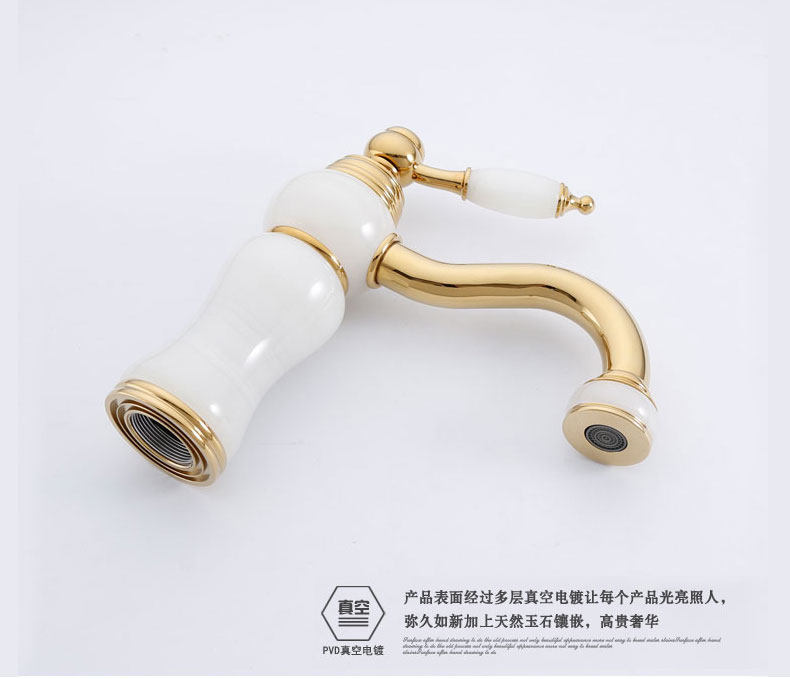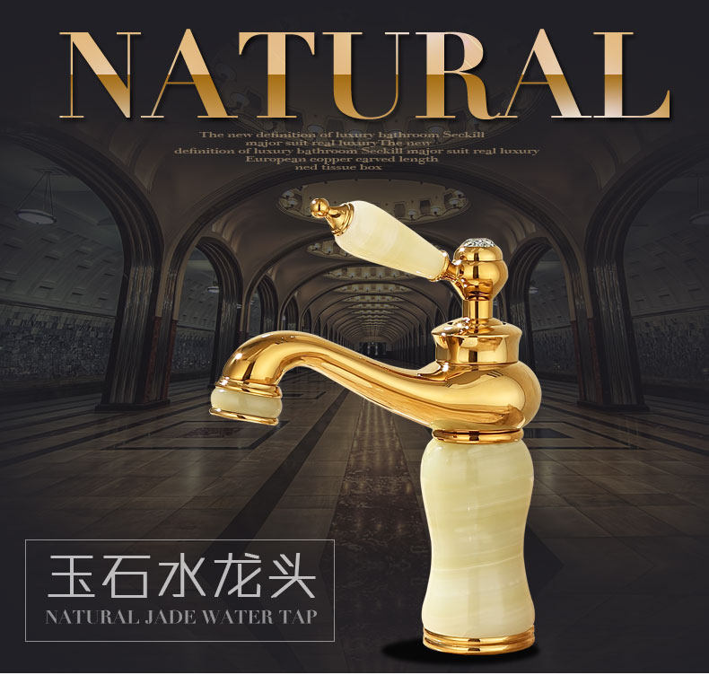 Italian Aisino All-Copper Natural Jade Washbasin Hot and Cold Faucet Gold Rotating Faucet