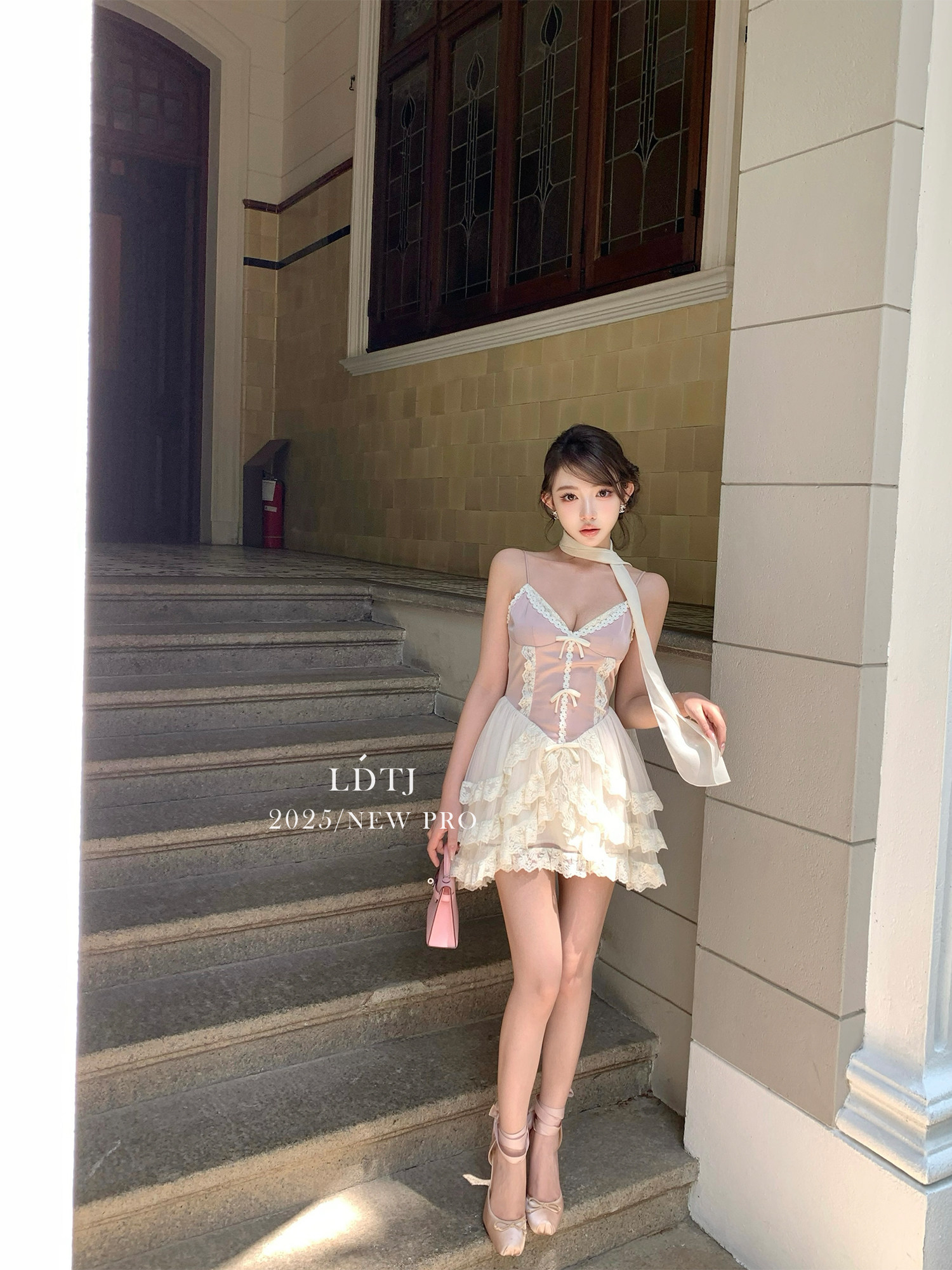 Ldtj Haute Couture Song Zhiya Cl Same Style Autumn French Sweet Princess Pink Satin Lace-Up Ballet High Heels for Women