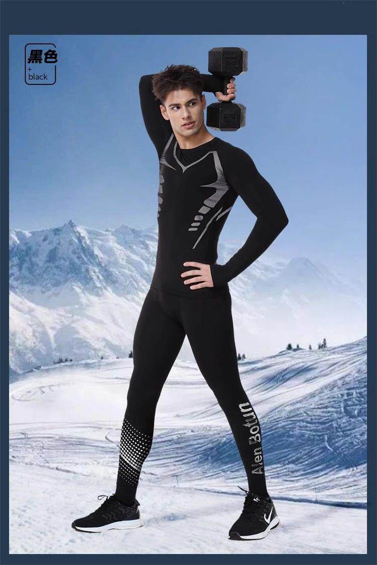 Men's Quick-Drying Ski Clothing, Thermal Underwear, Compression Tights, Compression Sportswear, Running Suit, Fleece-Lined, Sweat-Wicking, Winter Mountaineering