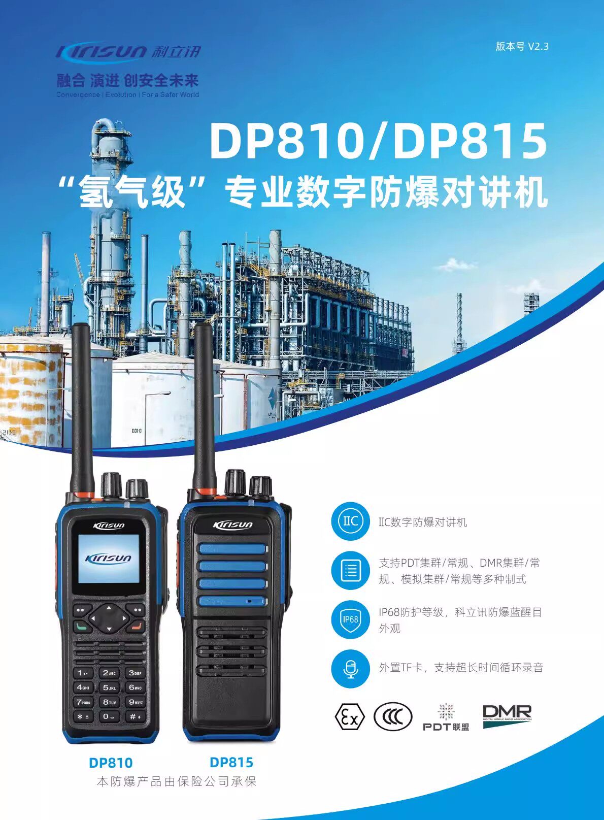 Kelixun Dp810 Digital Explosion-Proof Walkie-Talkie, Hydrogen Grade Iict4 Explosion-Proof, Ip68 Waterproof, for Use in Chemical Clusters and Factories