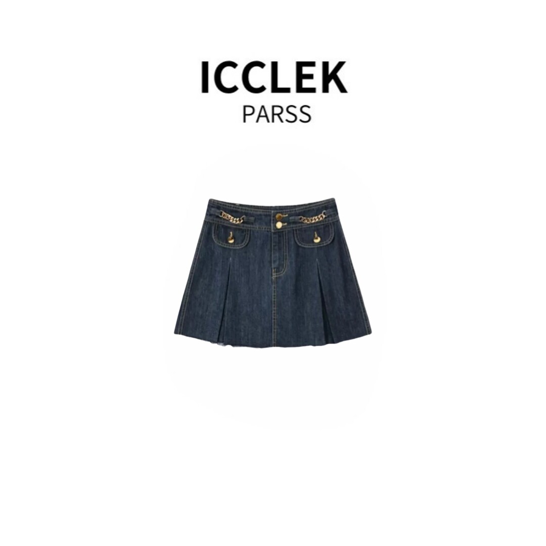 Icclek Parss New Autumn Fashion Versatile Slim Denim Skirt Retro Denim Skirt-2857