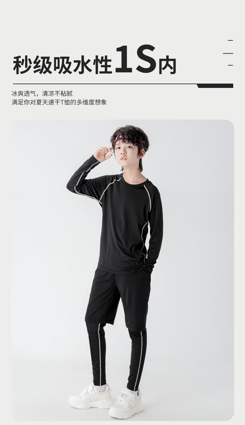 Children's Compression Training Clothing Quick-Dry Set for Boys, Autumn and Winter Basketball and Soccer Base Layer Sports Fitness Outfit Set for Boys