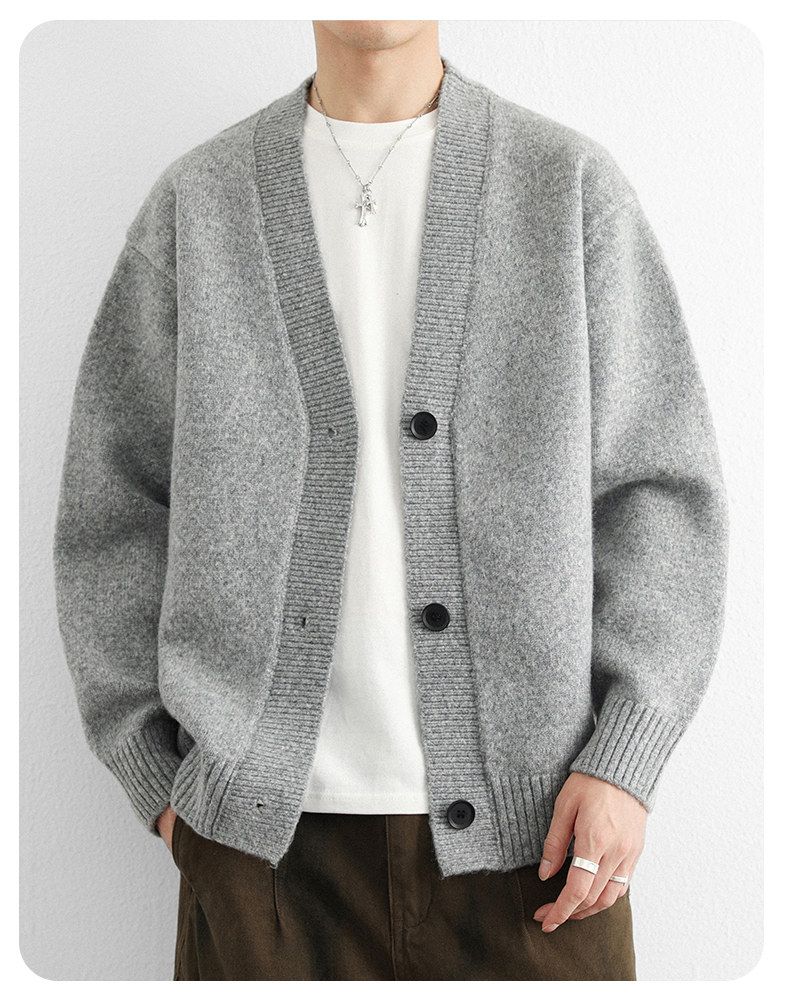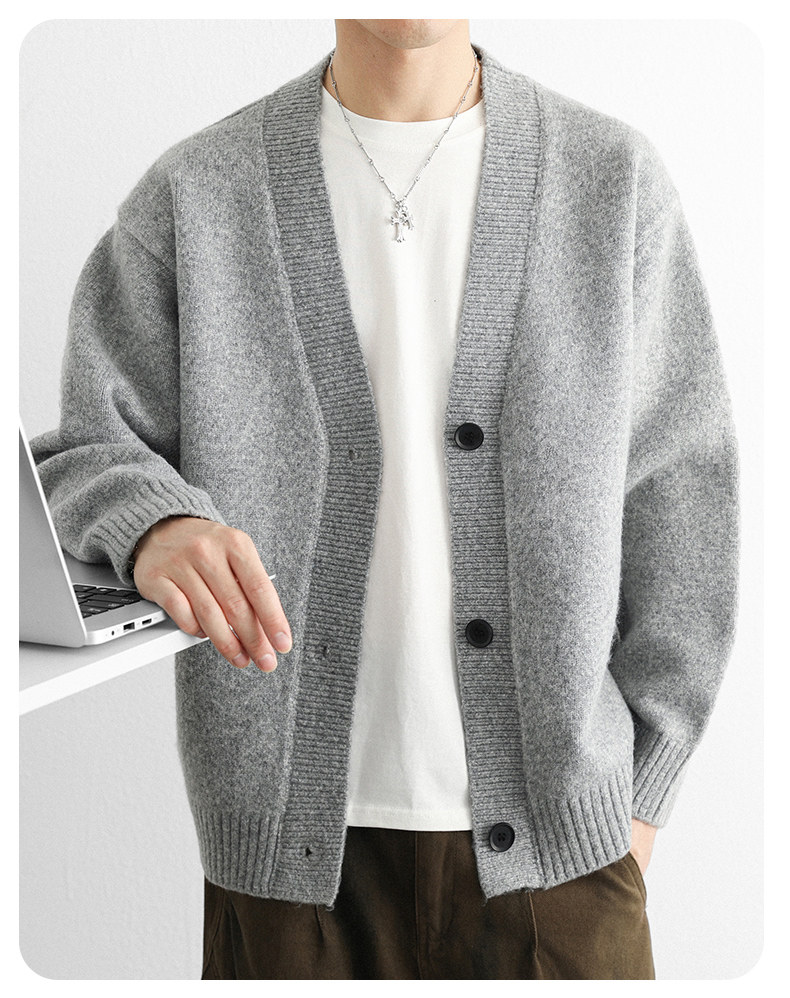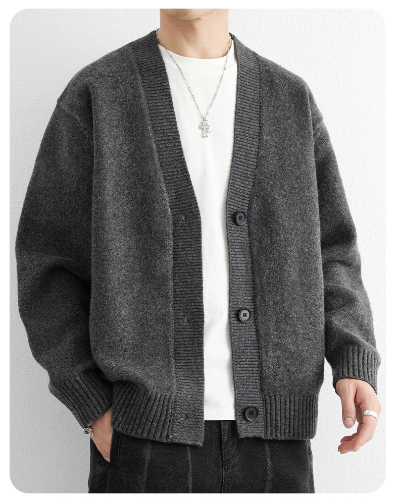 High-end cardigan sweater men's cardigan spring and autumn American retro couple sweater loose lazy style jacket