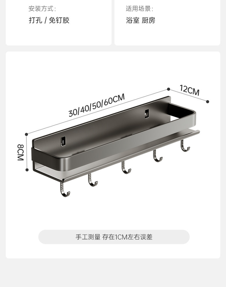 Color Classification ✅Punching❗That's What Security Feels Like.❗Includes a Drill-Free or Drill-Mount Installation Kit.,❤Hot Sale❤[2-Piece Set a] Storage Rack*2+Towel Rack,❤Hot Sale❤[3-Piece Set a] Storage Rack*2+Bath Towel Rack+Towel Bar,[Special for Punching Installation - Single Layer] Gun Gray Storage Rack 30cm,[Special for Drilling Installation - Single Layer] Gun Gray Storage Rack 40cm,[Special for Drilling Installation - Single Layer] Gun Gray Storage Rack 50cm,[Special for Drilling Installation - Single Layer] Gun Gray Storage Rack 60cm,【Special for Drilling and Installation❤Hot-Selling Double-Layer Hook-Gun Gray Storage Rack 30cm,【Special for Drilling and Installation❤Hot-Selling Double-Layer Hook-Gun Gray Storage Rack 40cm,【Special for Drilling and Installation❤Hot-Selling Double-Layer Hook Gun Gray Storage Rack 50cm,【Special for Drilling and Installation❤Hot-Selling Double-Layer Hook Gun Gray Storage Rack 60cm,[Special for Drilling Installation - Single Layer with Hook] Gun Gray Storage Rack 30cm,[Special for Drilling Installation - Single Layer with Hook] Gun Gray Storage Rack 40cm,[Special for Drilling Installation - Single Layer with Hook] Gun Gray Storage Rack 50cm,[Special for Drilling Installation - Single Layer with Hook] Gun Gray Storage Rack 60cm,⭐Recommend⭐[3-Piece Set B] Storage Rack*2+Towel Rack+Tissue Box,⭐Recommend⭐[4-Piece Set a] Storage Rack*2+Bath Towel Rack+Tissue Box+Toilet Brush,Punch/No-Punch Installation⭐Double Layer] Gun Gray Storage Rack 30cm,Punch/No-Punch Installation⭐Double Layer] Gun Gray Storage Rack 40cm,Punch/No-Punch Installation⭐Double Layer] Gun Gray Storage Rack 50cm,Punch/No-Punch Installation ⭐ Double Layer] Gun Gray Storage Rack 60cm
