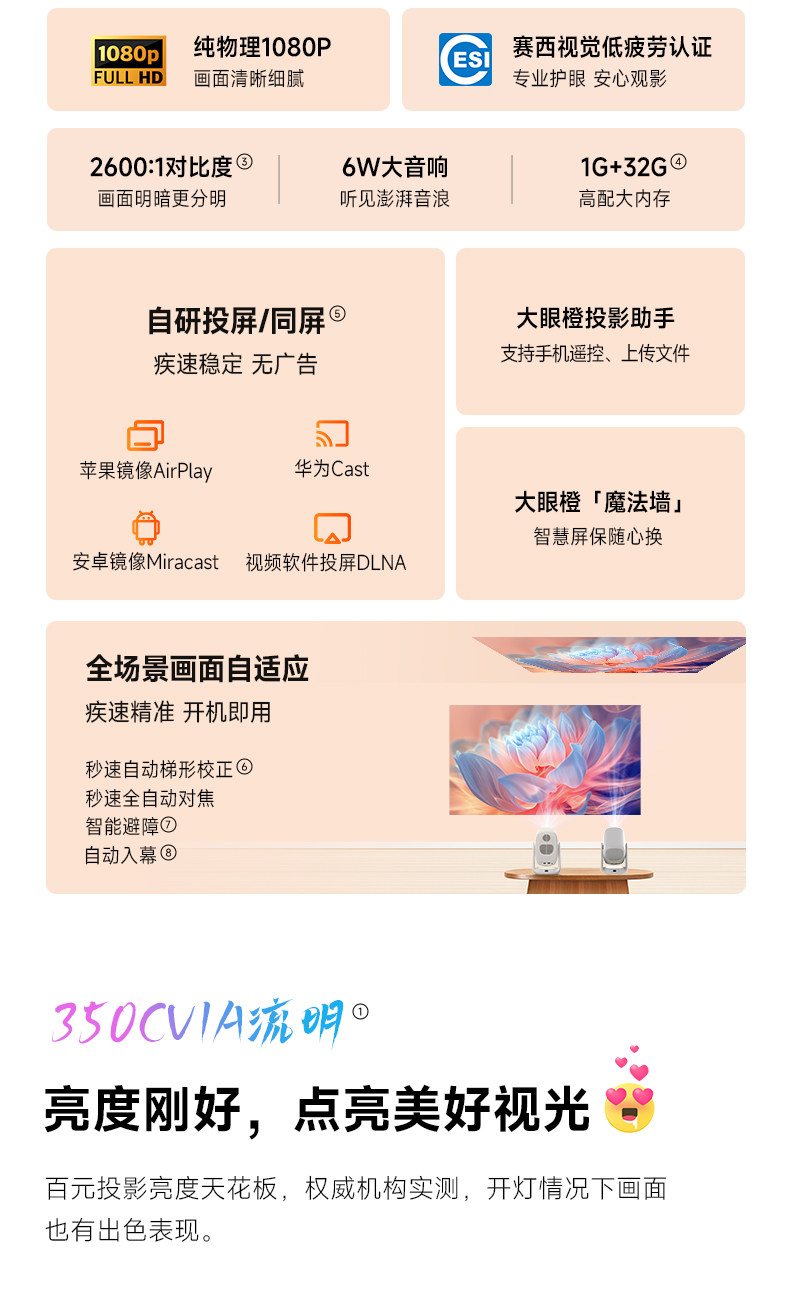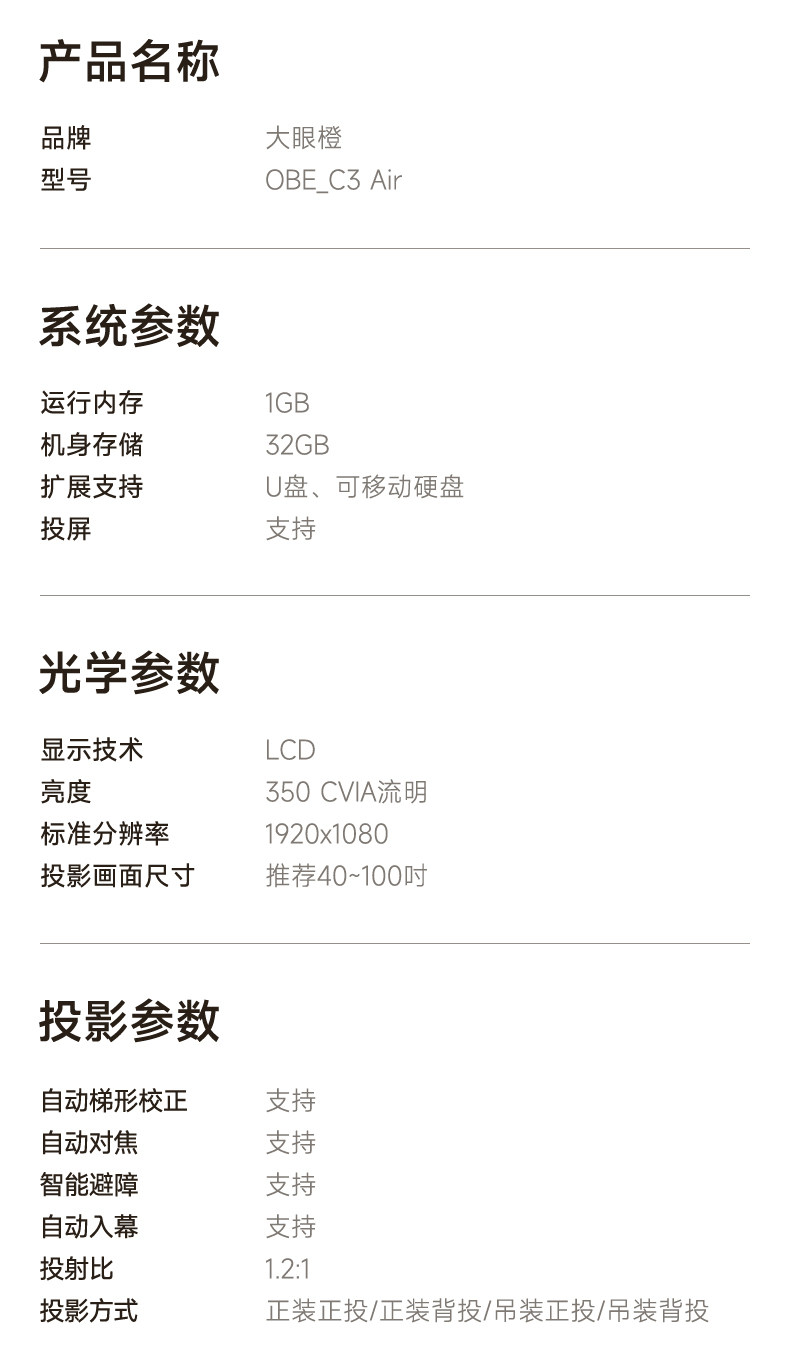 Big Eye Orange C3 Air Projector Highlight Home HD Projector 1080P Portable 4K Decoding Home Theater Bedroom 2990