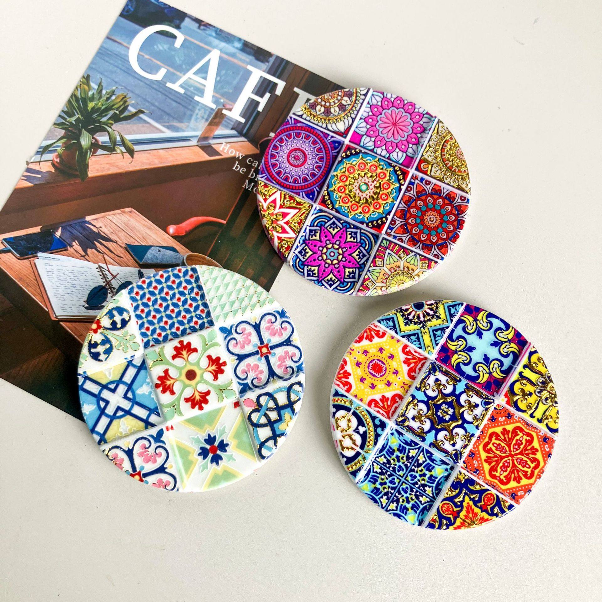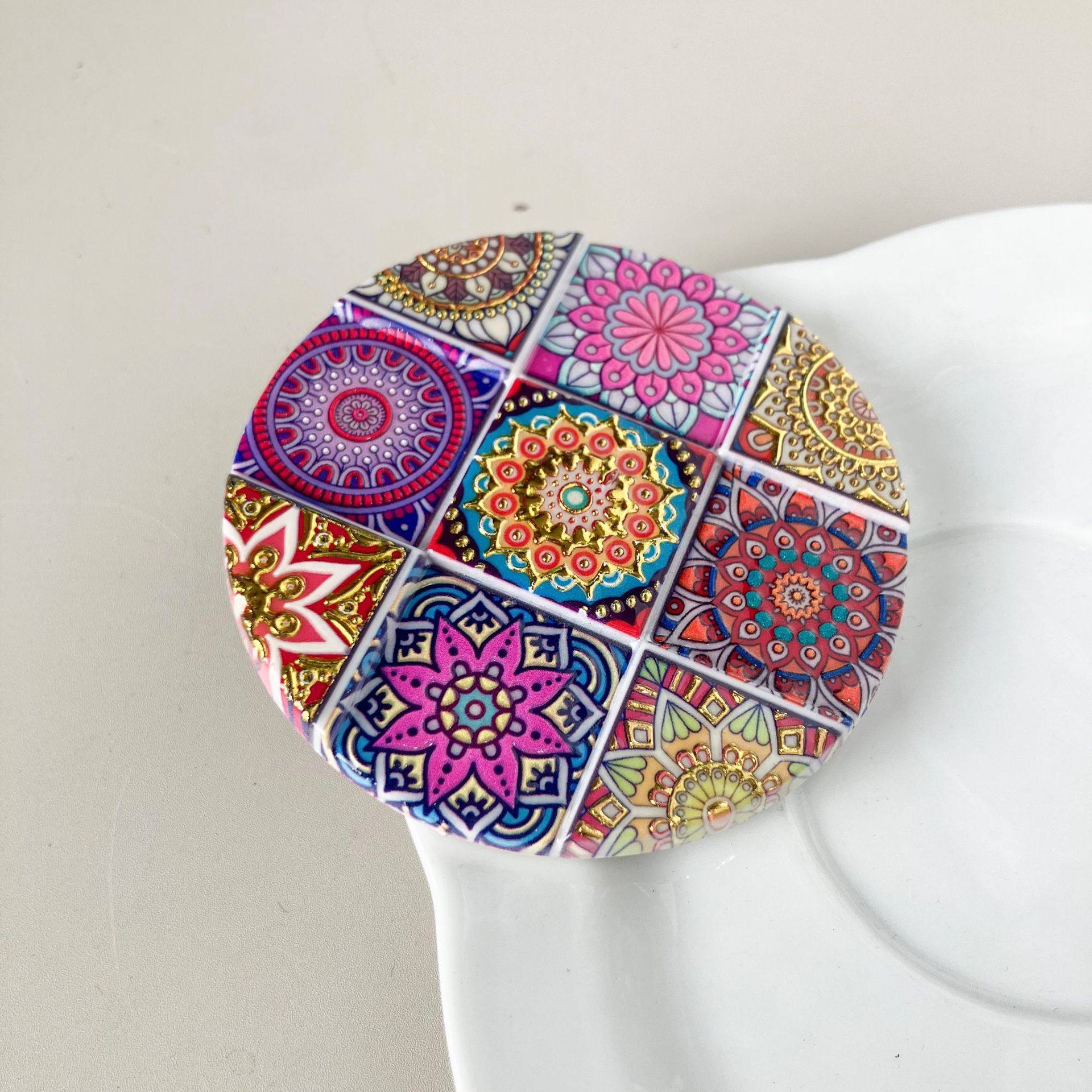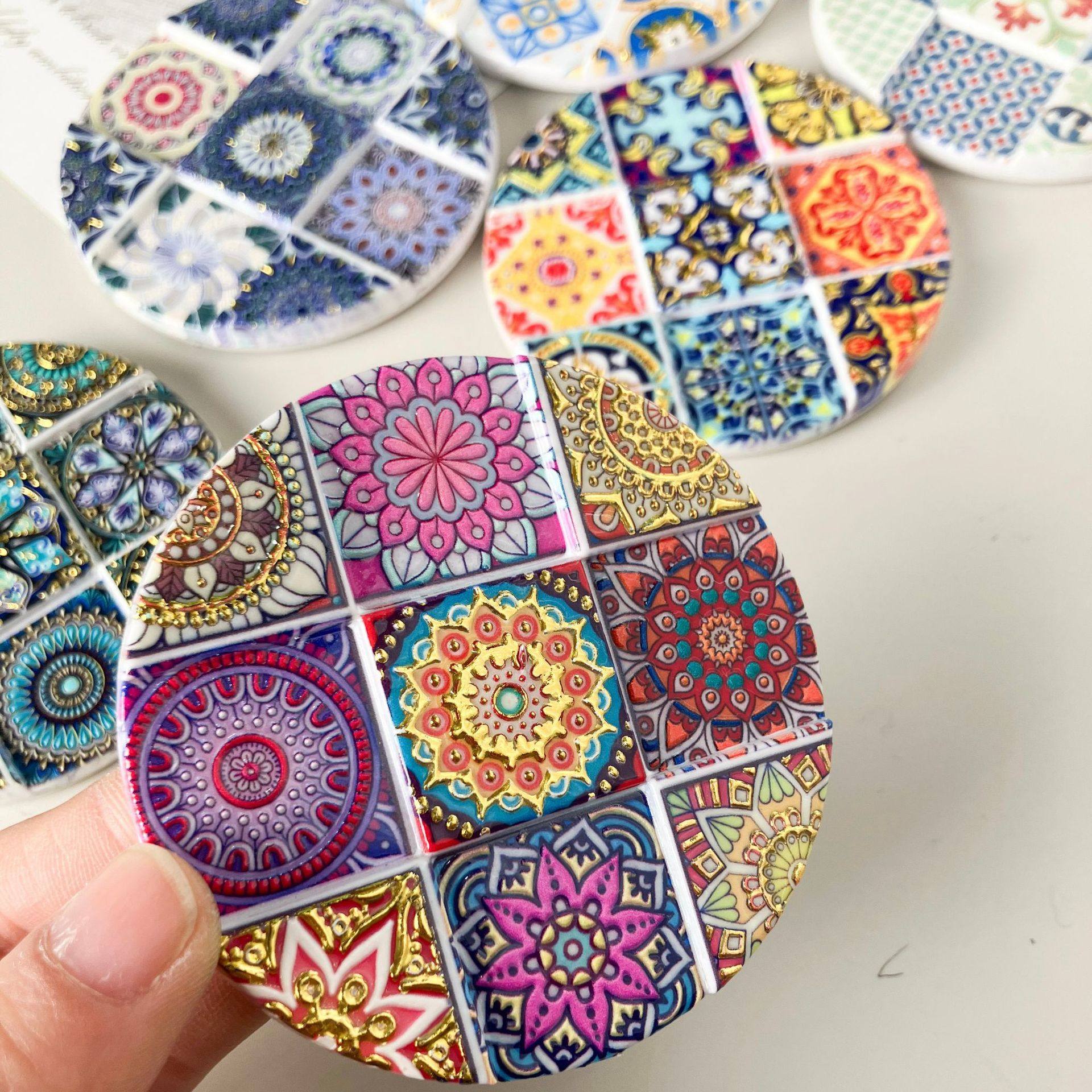 Cross-Border 7.5×7.5 Resin Nine-Grid Round Refrigerator Magnet with D Hot Stamping Technology, Suitable for Home Use and Gift-Giving