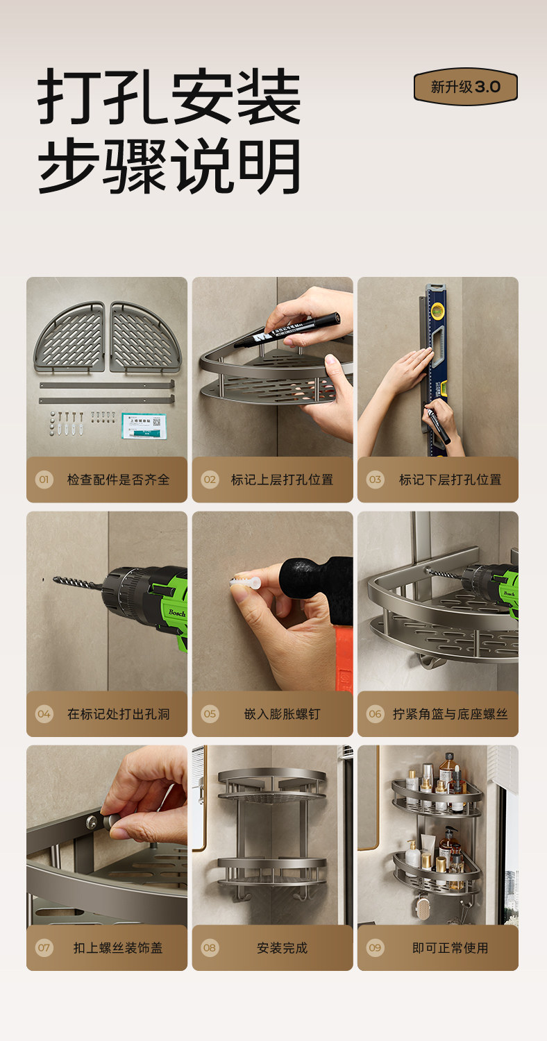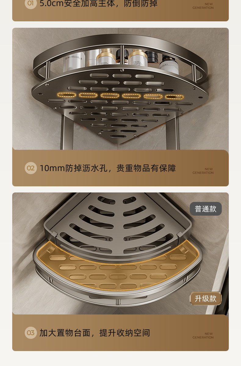 Perforated Space Aluminum Bathroom Storage Rack, Bathroom Triangle Basket Wall-Mounted Rack, Toilet Corner Household Storage Shelf