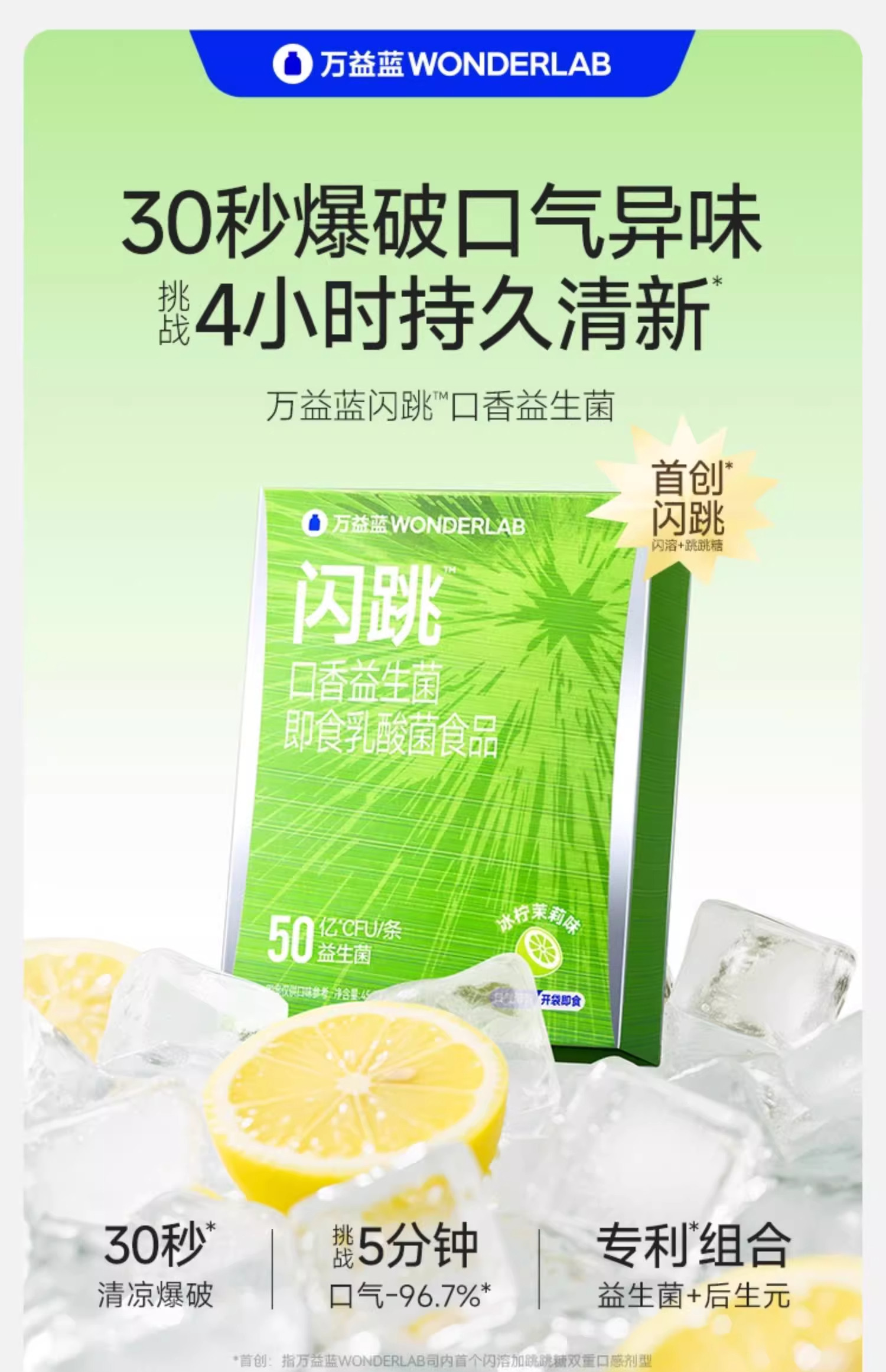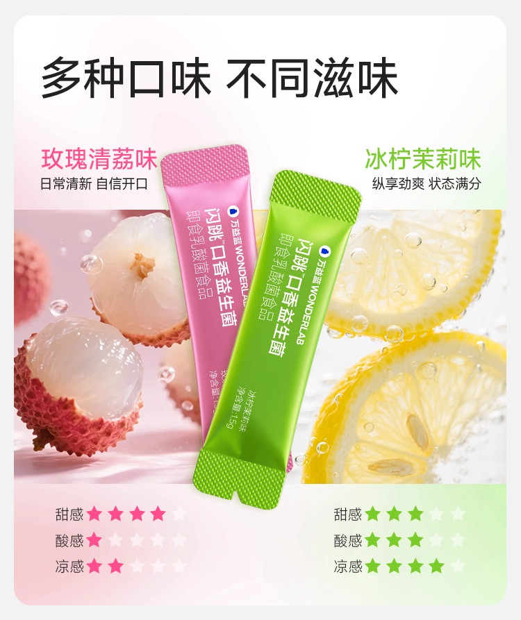 Wonderlab Sparkling Probiotics Instant Oral Freshener for Bad Breath Authentic Popping Candy for Dates