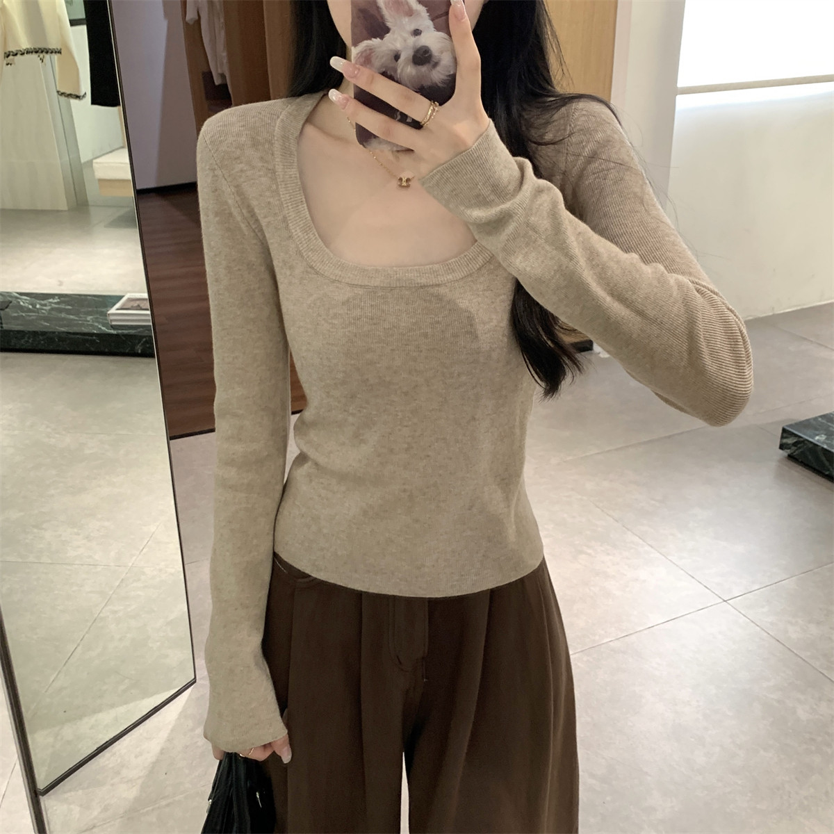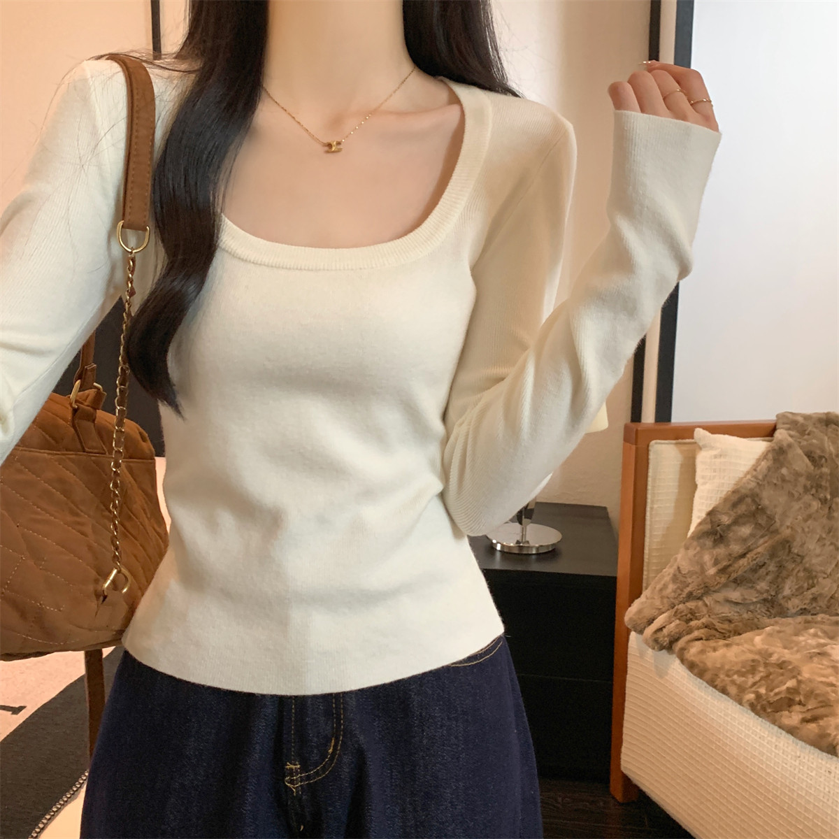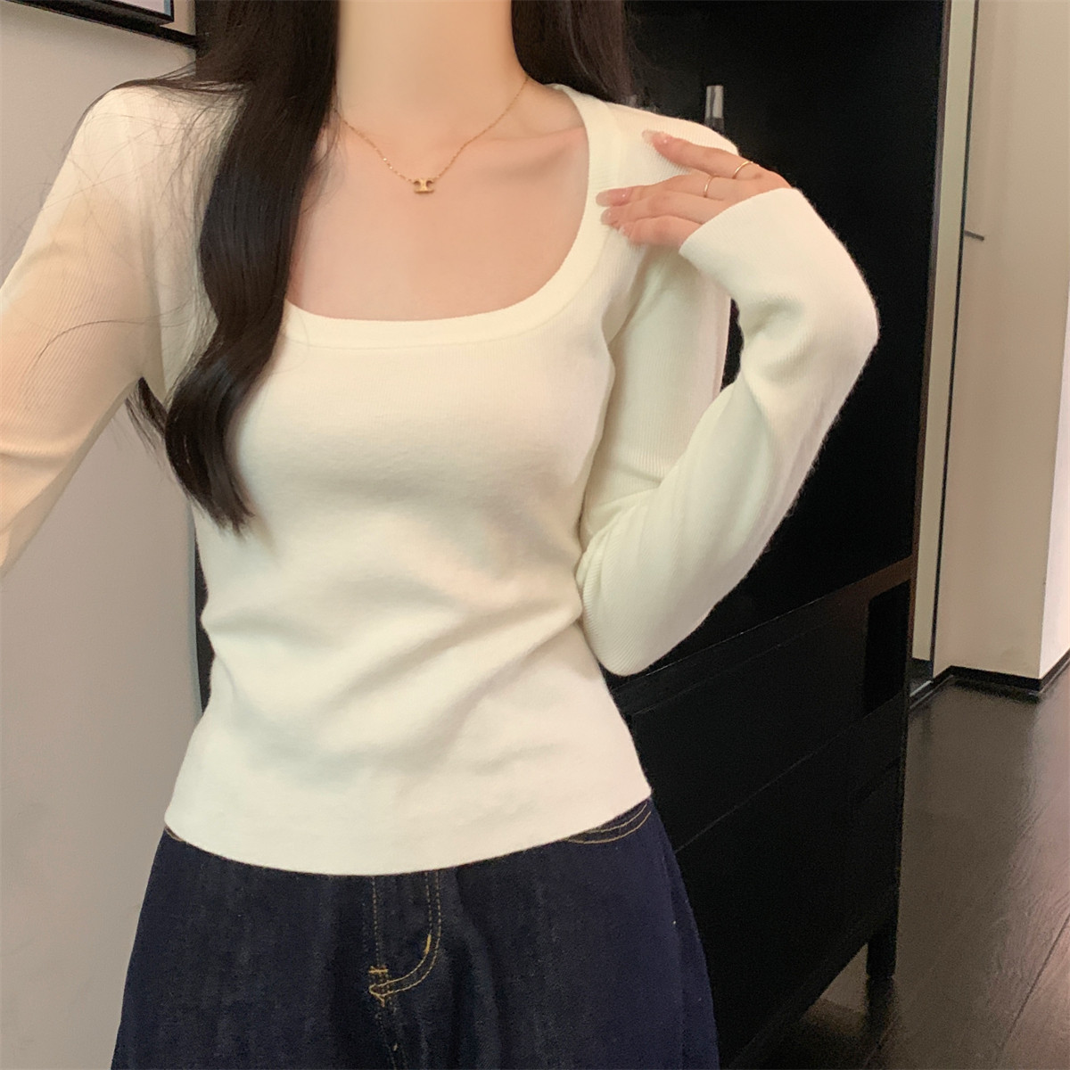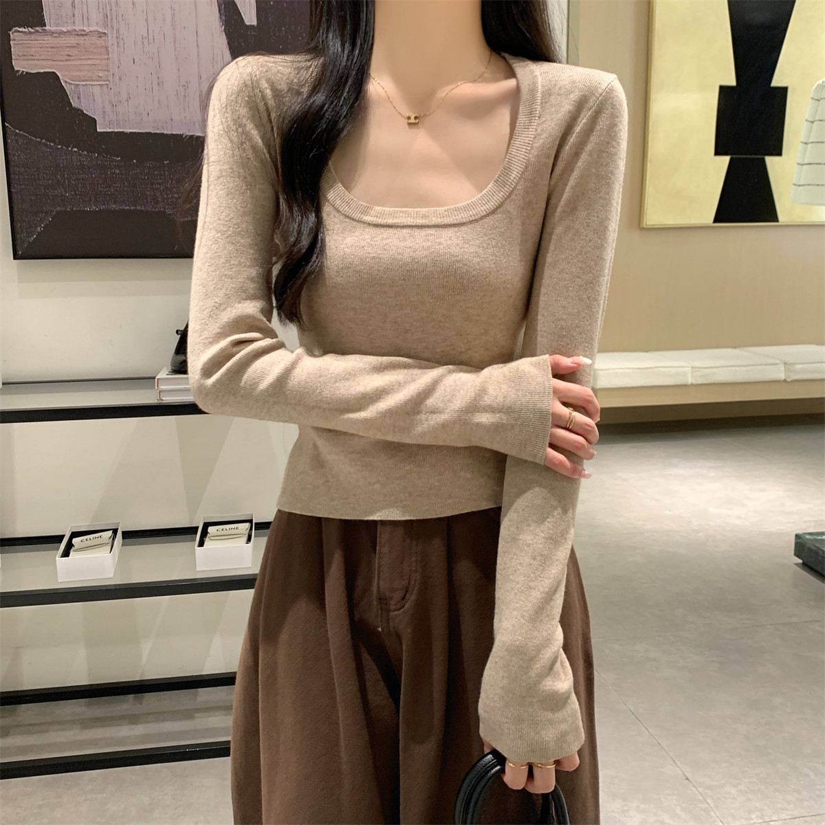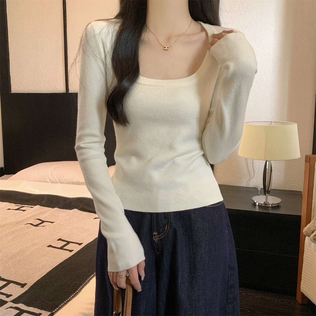 Gentle Temperament, Square Collar, Slim-Fitting Long-Sleeved Knitwear for Women, Andy Velvet Inner Layer, New Autumn Style Korean Style Simple Sweater