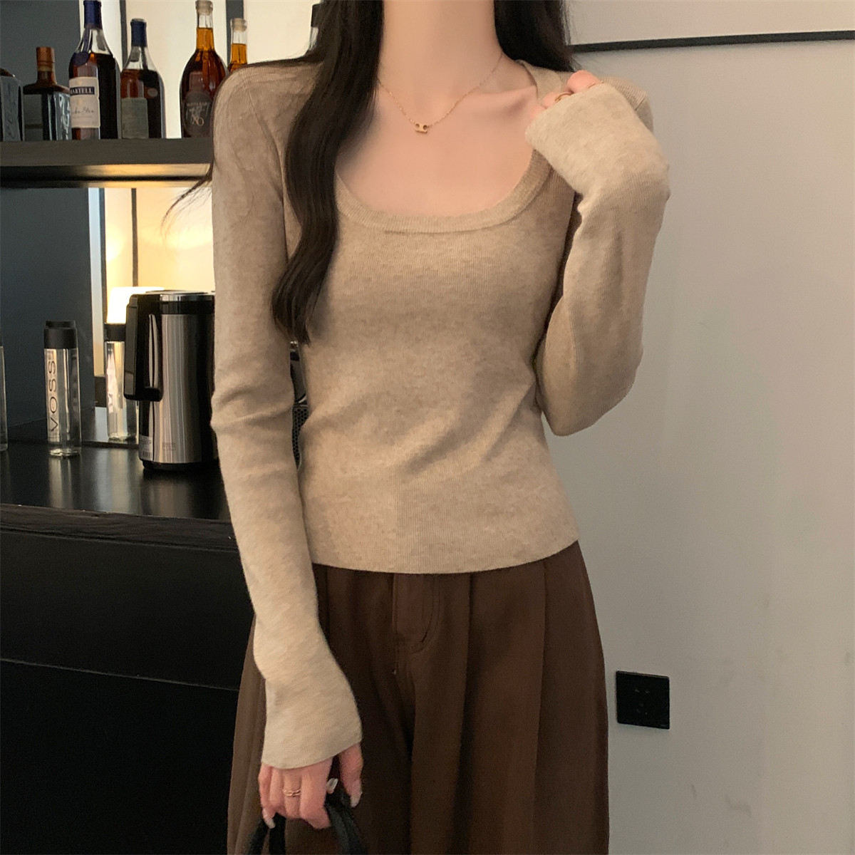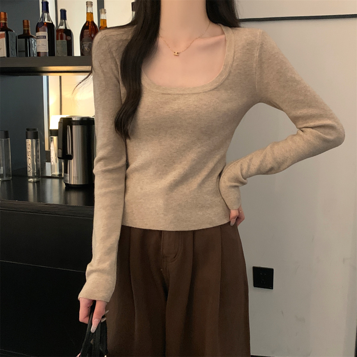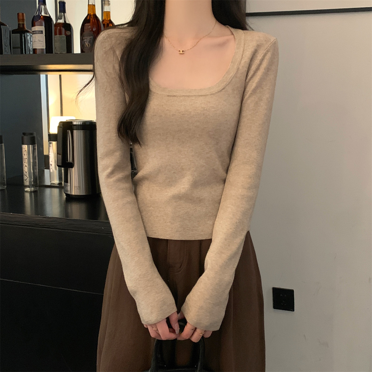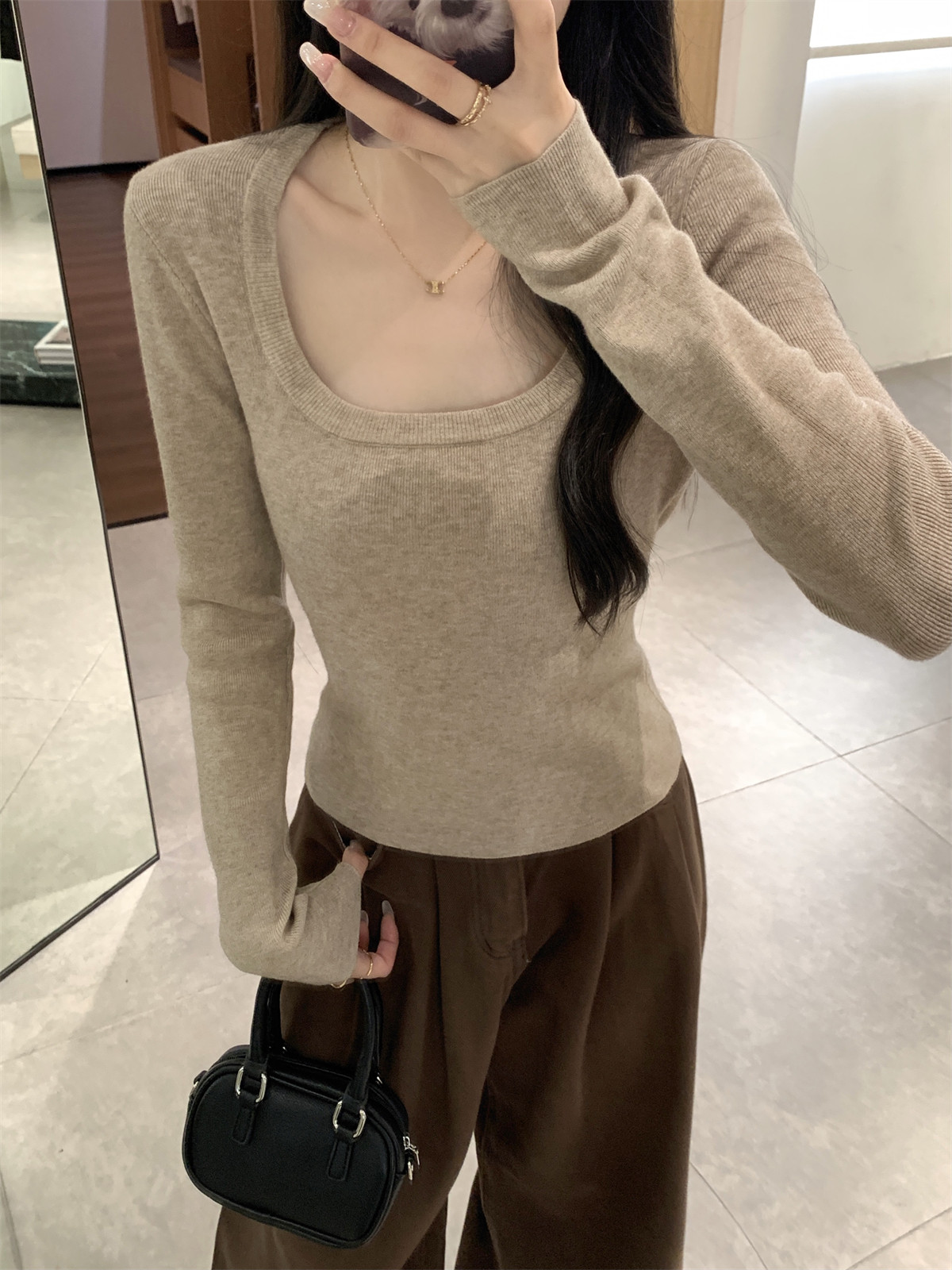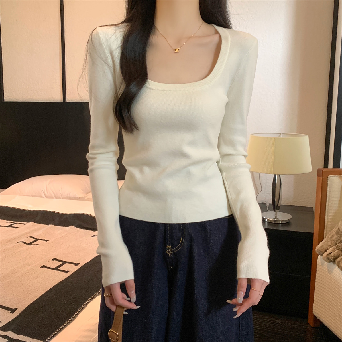 Gentle Temperament, Square Collar, Slim-Fitting Long-Sleeved Knitwear for Women, Andy Velvet Inner Layer, New Autumn Style Korean Style Simple Sweater