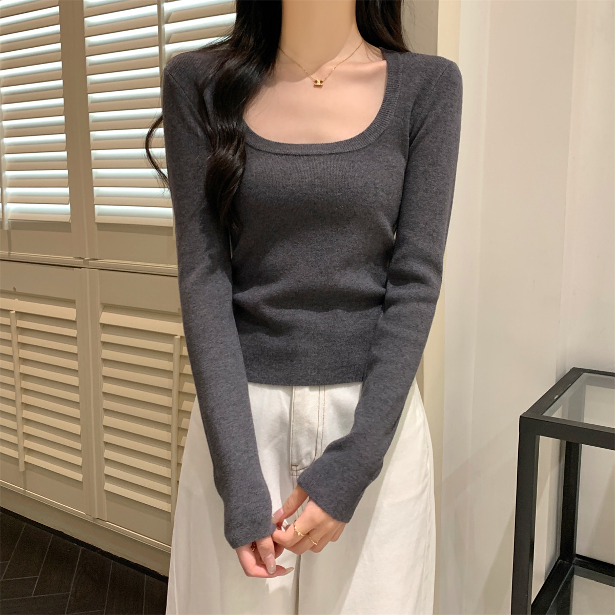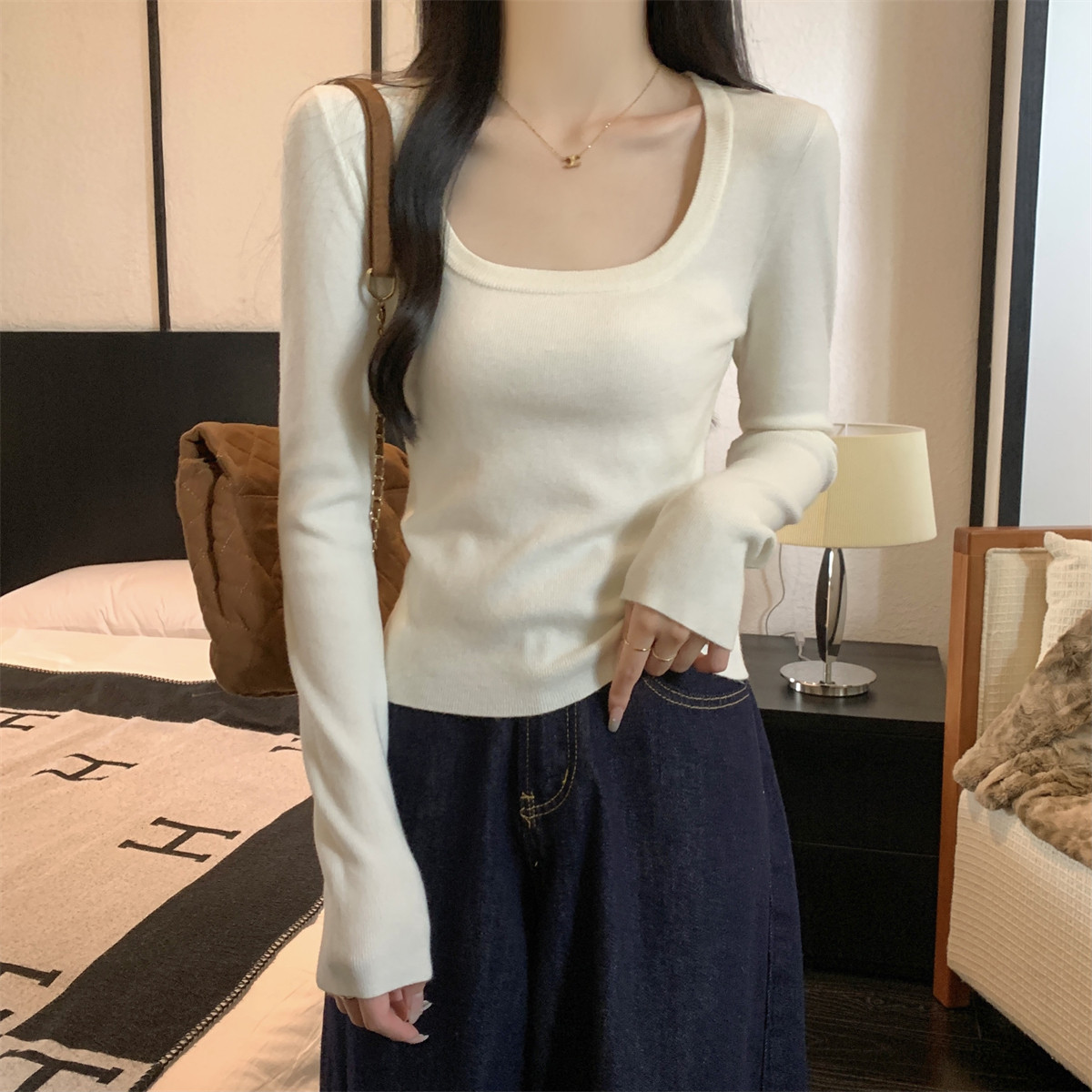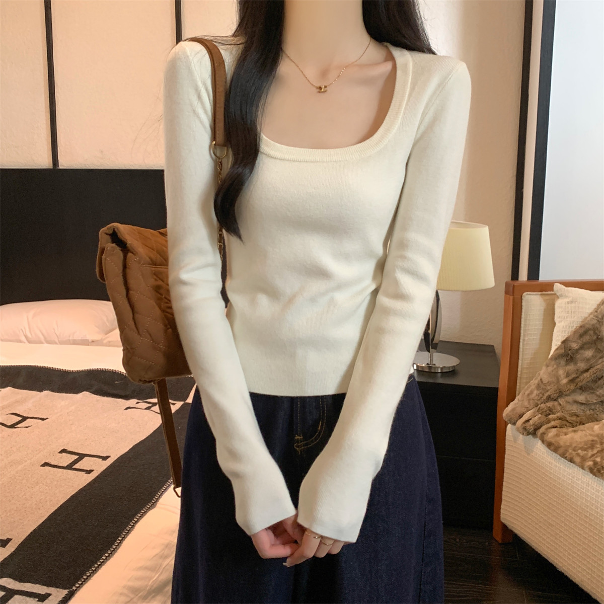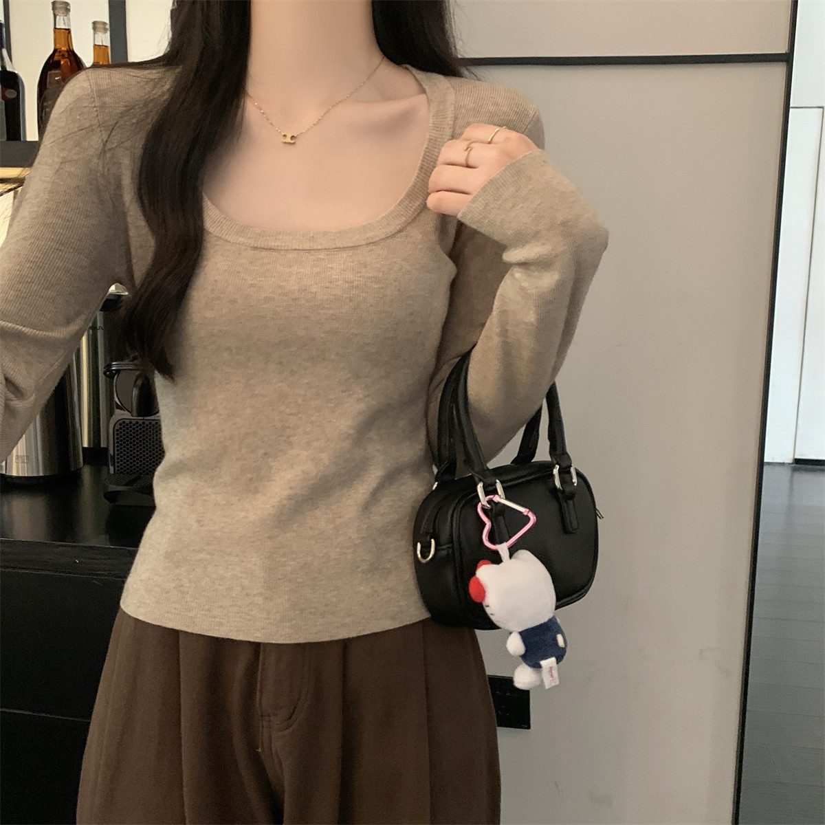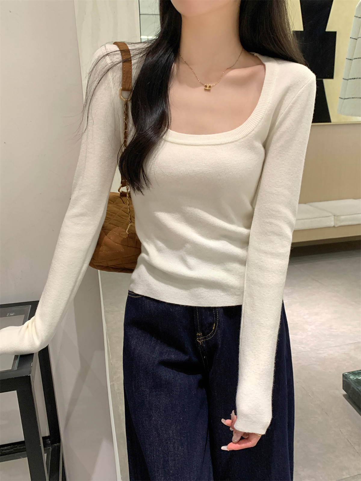 Gentle Temperament, Square Collar, Slim-Fitting Long-Sleeved Knitwear for Women, Andy Velvet Inner Layer, New Autumn Style Korean Style Simple Sweater