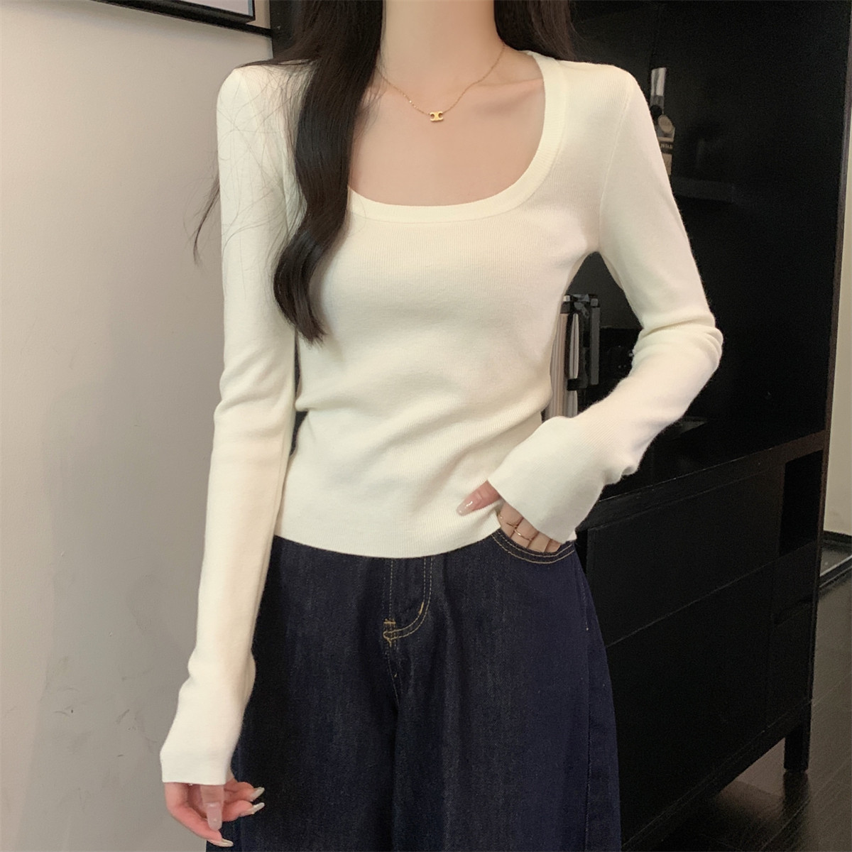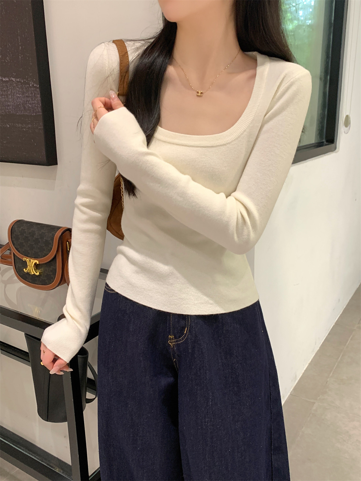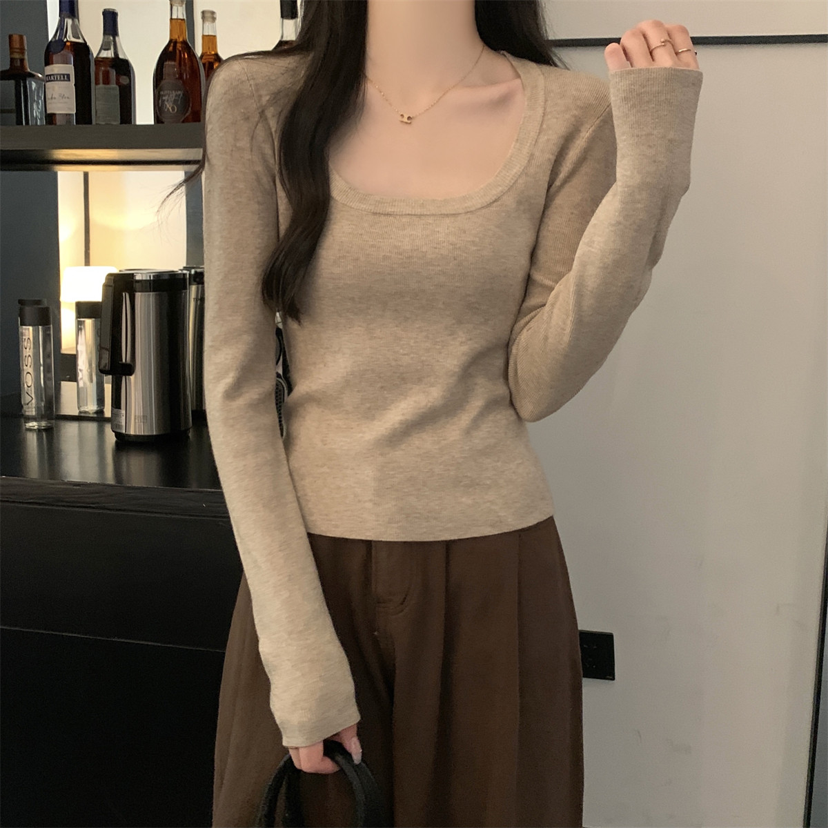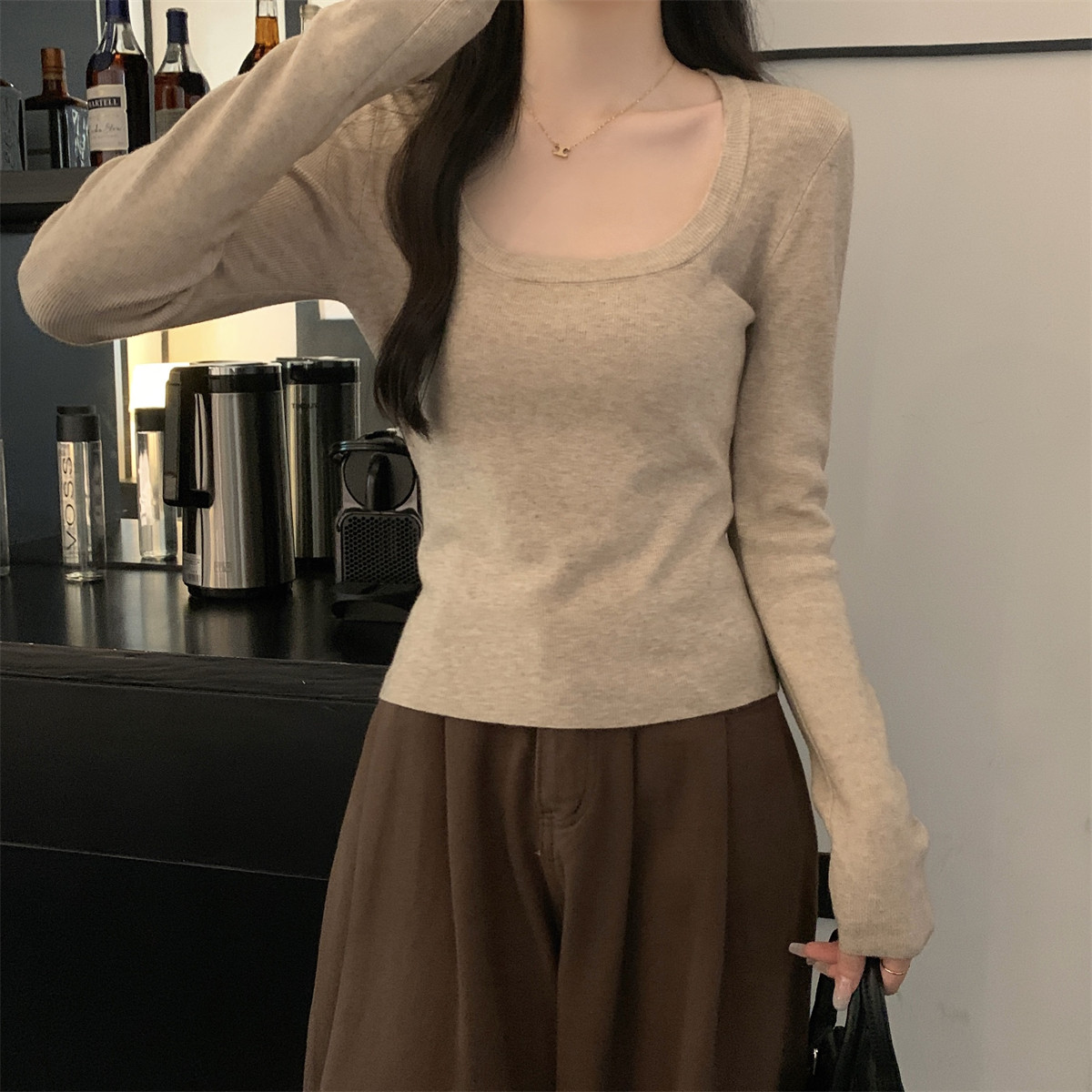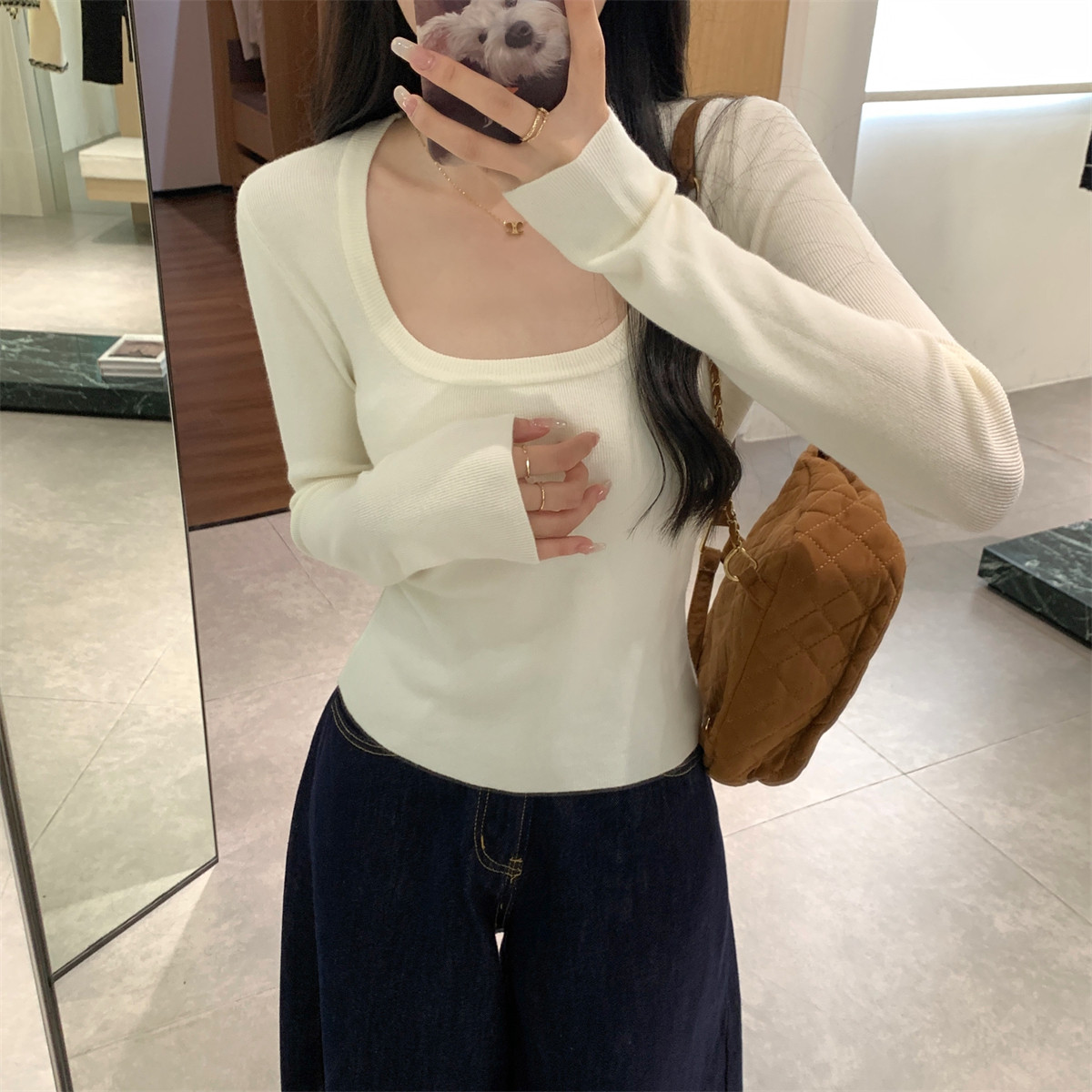 Gentle Temperament, Square Collar, Slim-Fitting Long-Sleeved Knitwear for Women, Andy Velvet Inner Layer, New Autumn Style Korean Style Simple Sweater