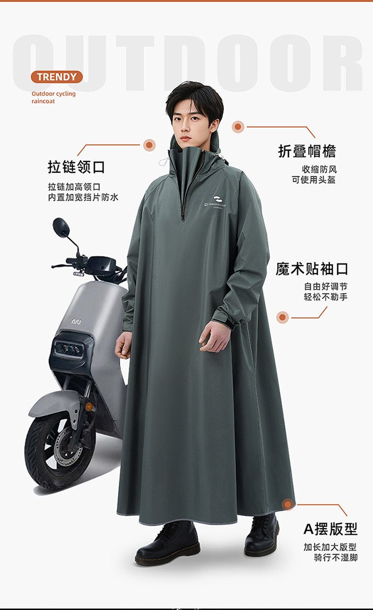 Electric Vehicle Raincoat, Single-Person, Long, Full-Body, Heavy Rain Protection, Unisex, Enlarged and Thickened, Easy to Put on and Take Off, Electric Scooter Rain Poncho