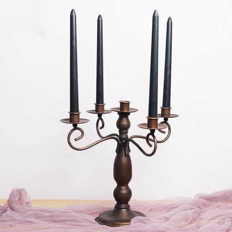 Retro European candlestick ornaments iron art living room dining table home candle holder photography props metal candle cup