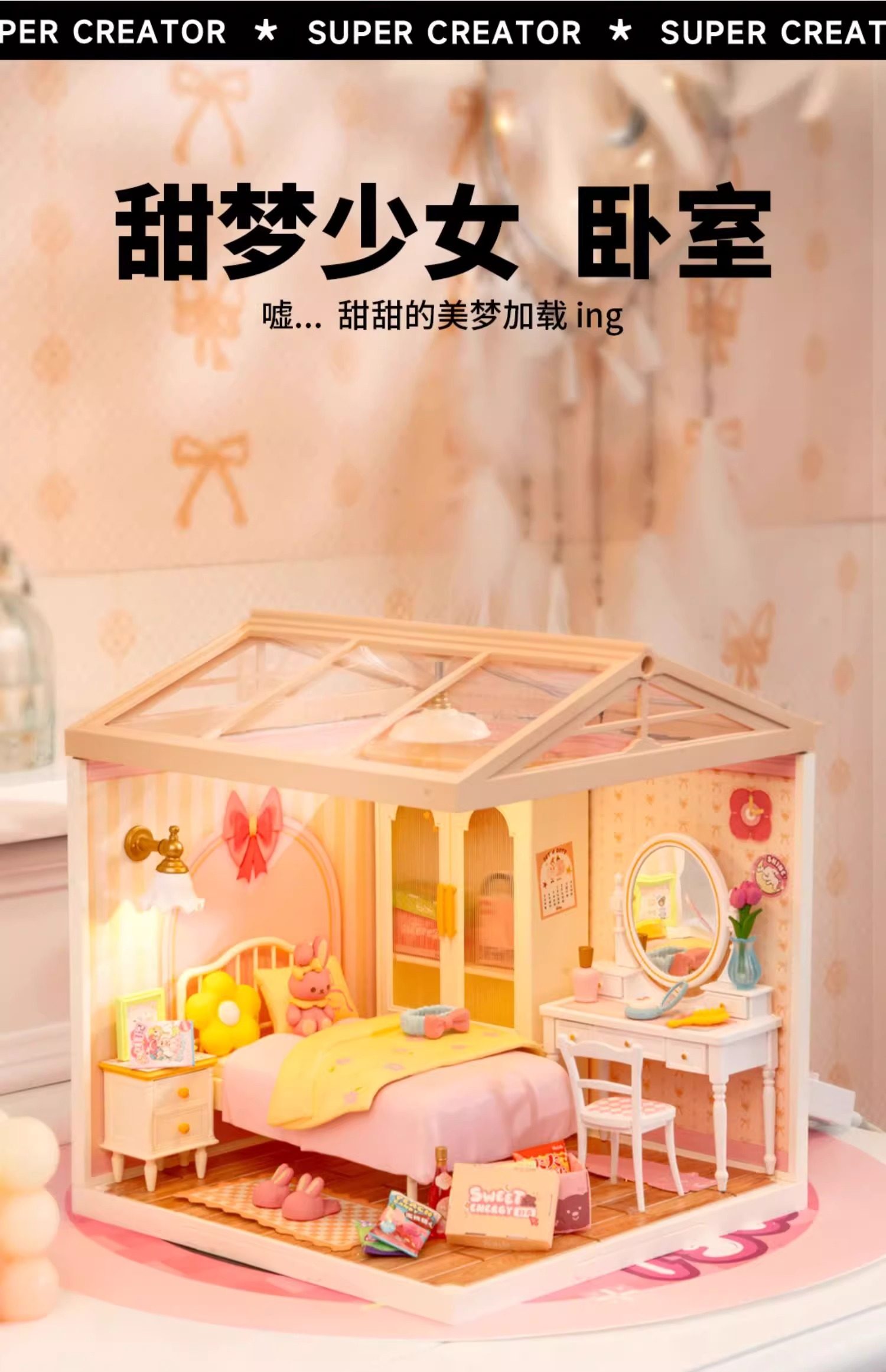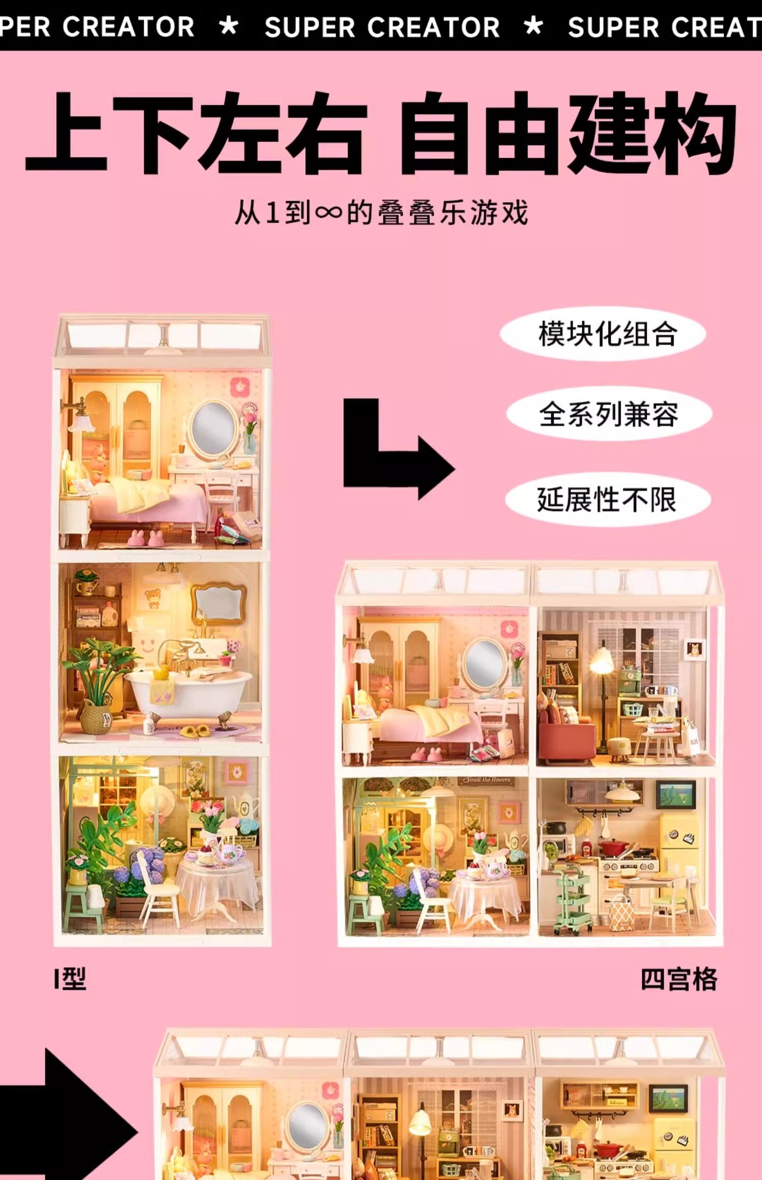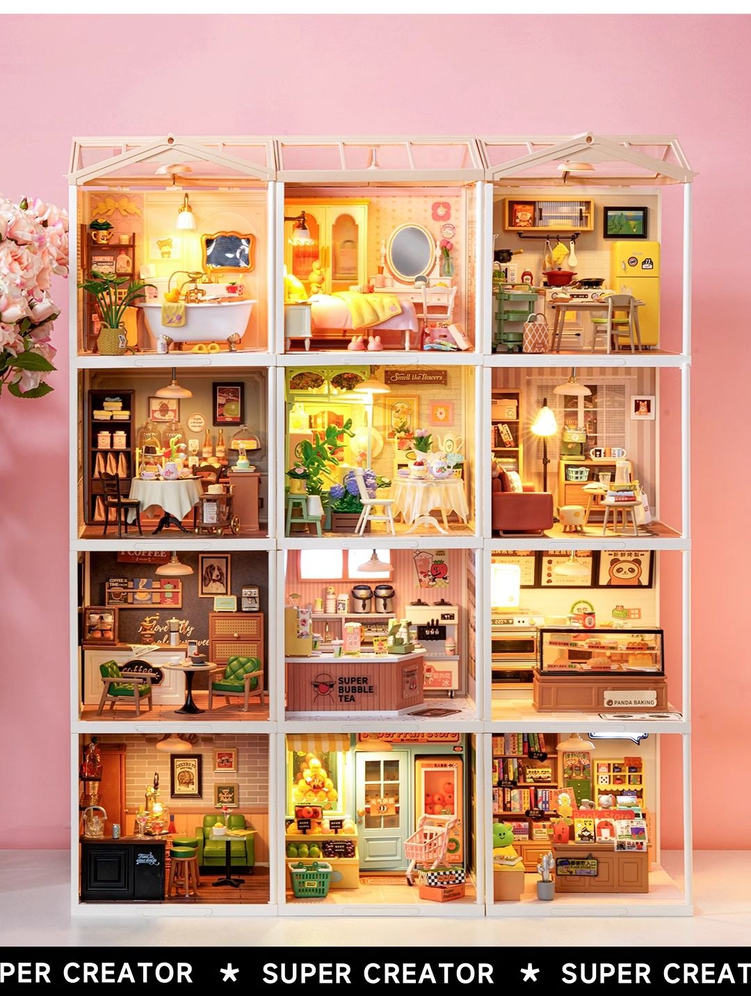 Rokr Super World Bedroom Shop DIY Miniature House Building Blocks Toy Model Gift for Girls