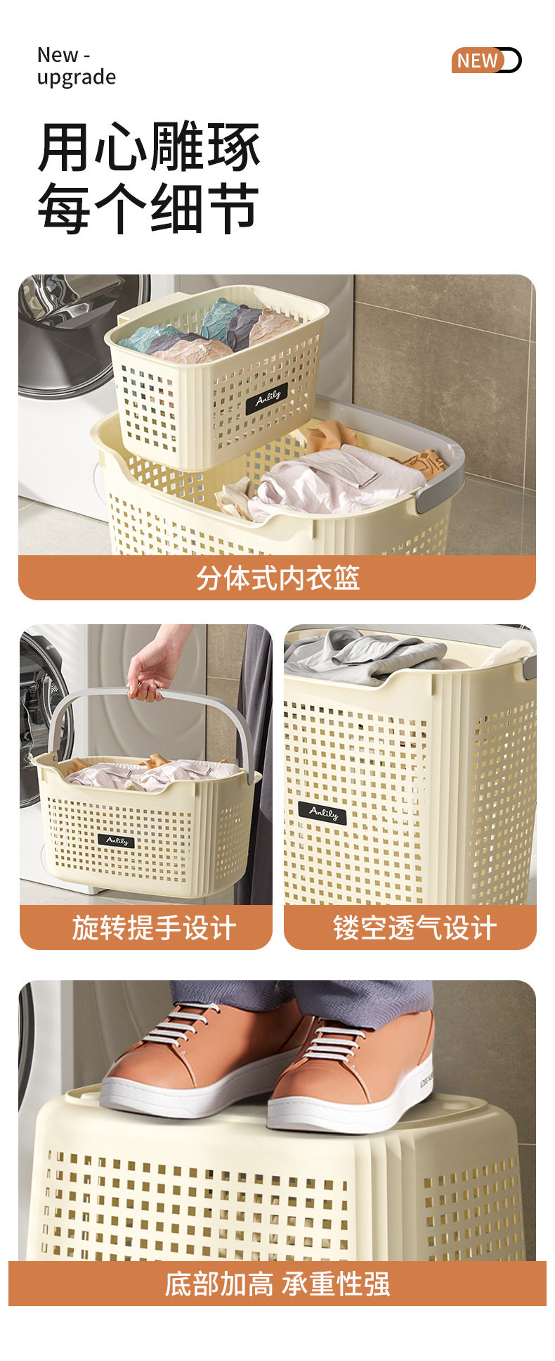 New Style Dirty Clothes Basket, Household Storage Basket, Bathroom Laundry Basket, Divided Storage Rack for Dirty Clothes, Dirty Clothes Bin