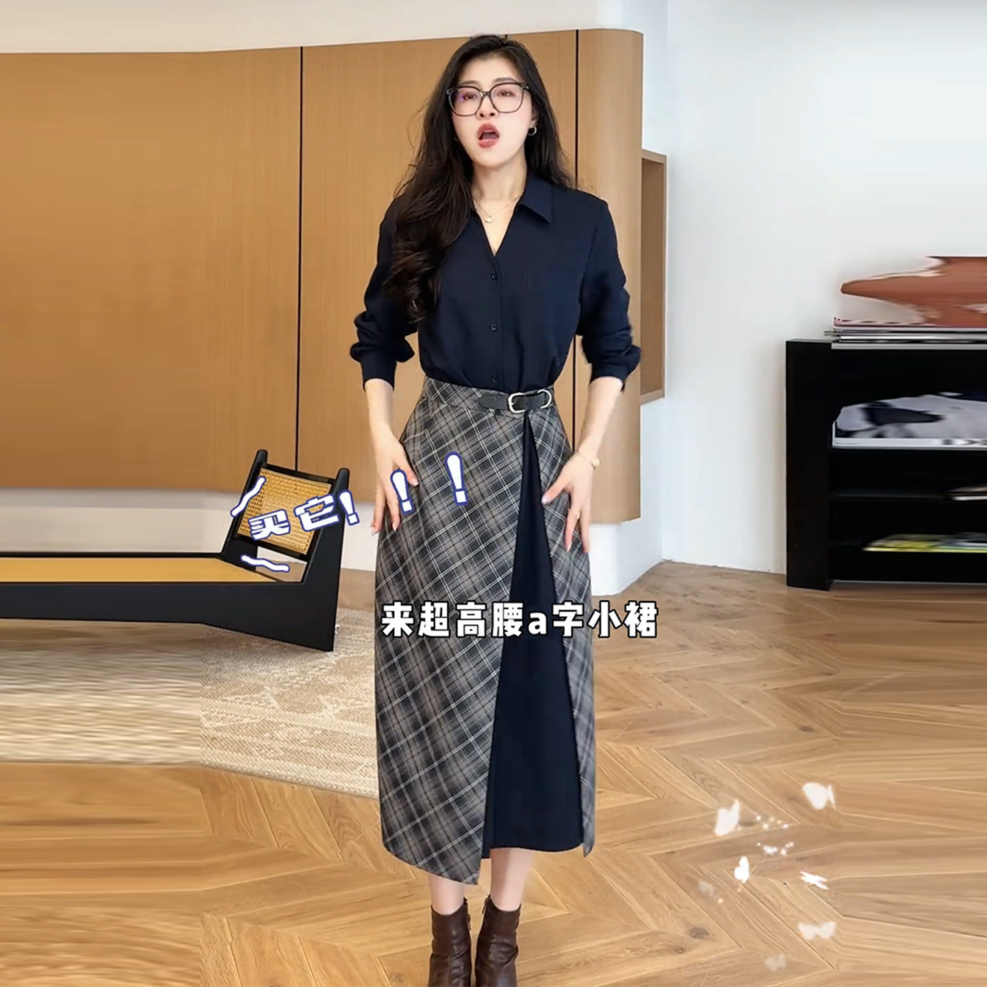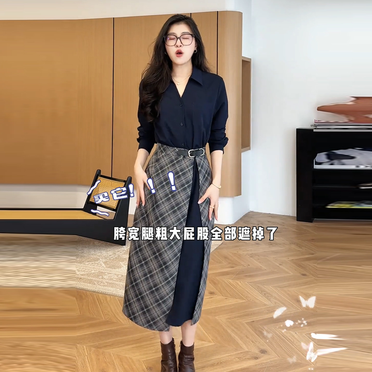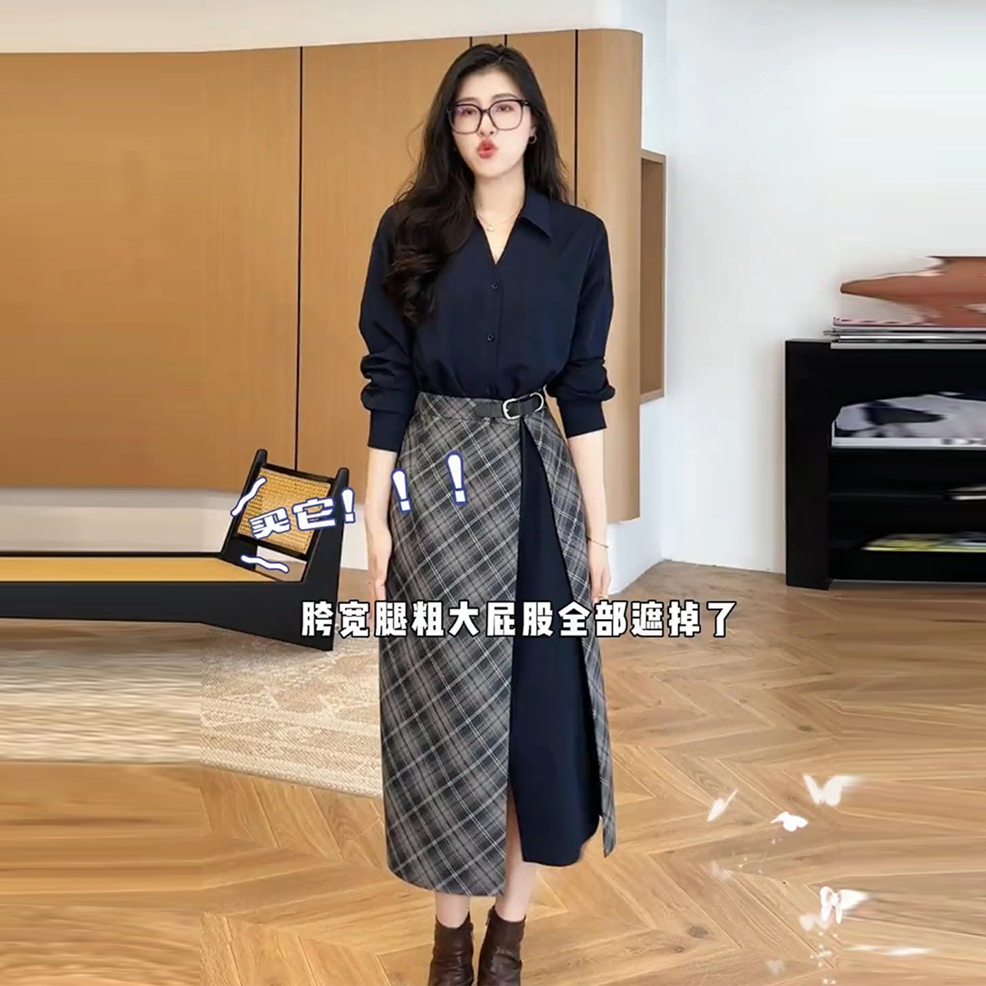 Plus-Size Vintage Two-Piece Dress for Women, Autumn and Winter, High-End Shirt Dress, Slimming for Chubby Women, Tummy-Concealing, Waist-Cinching Long Dress