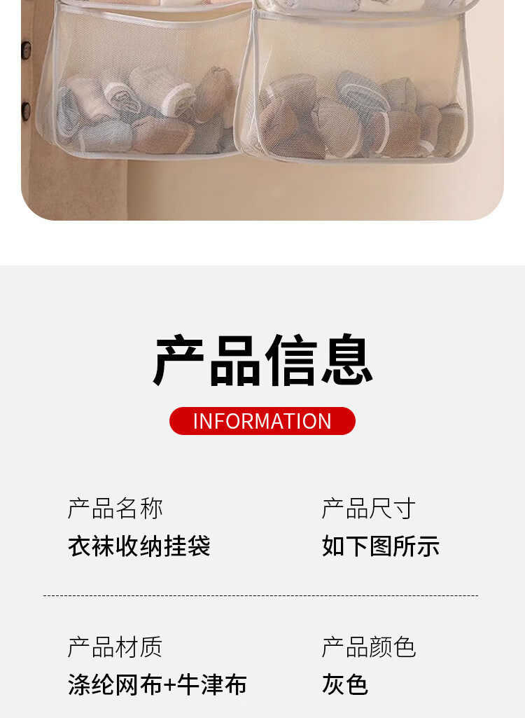 Sock Storage Organizer Dormitory Wardrobe Underwear Hanging Bag Hanging Mesh Bag Bedside Storage Bag