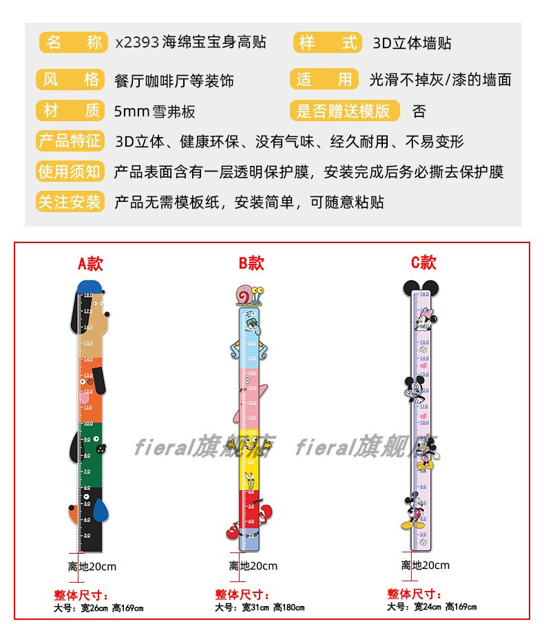 Cartoon Animal Height Measuring Ruler Wall Sticker Kidsren's Room Layout Creative Baby Bedroom Bedside Wall Decoration Painting