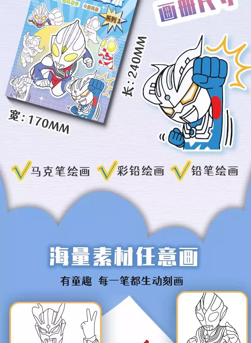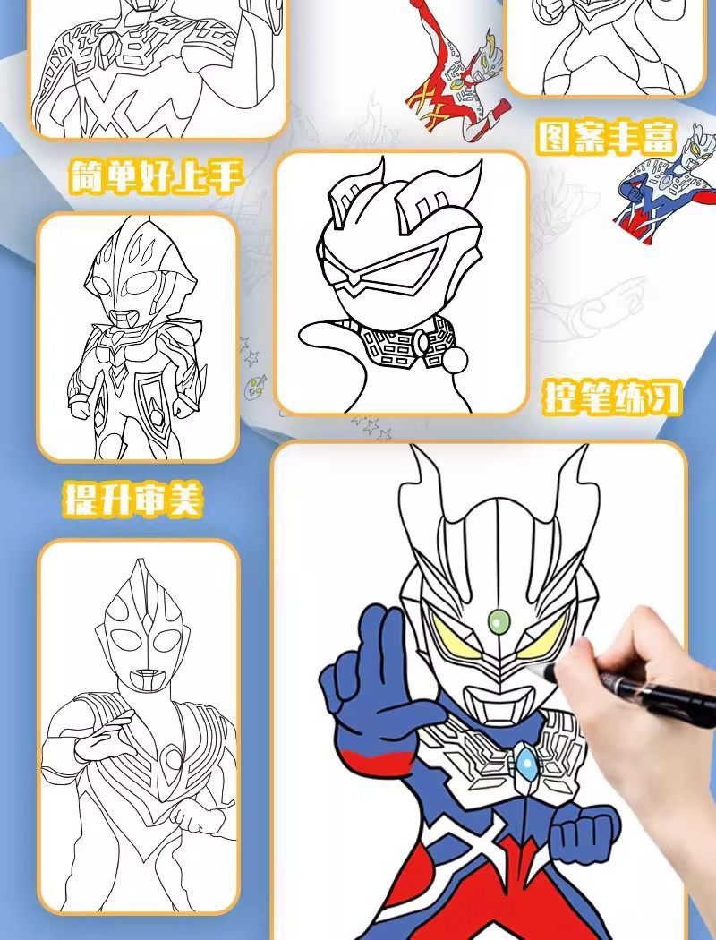 Ultraman Tracing Book, Zero Children's Pen Control Training, Kindergarten Gift, Coloring Hand-Drawn Book for Boys, Educational Drawing Book