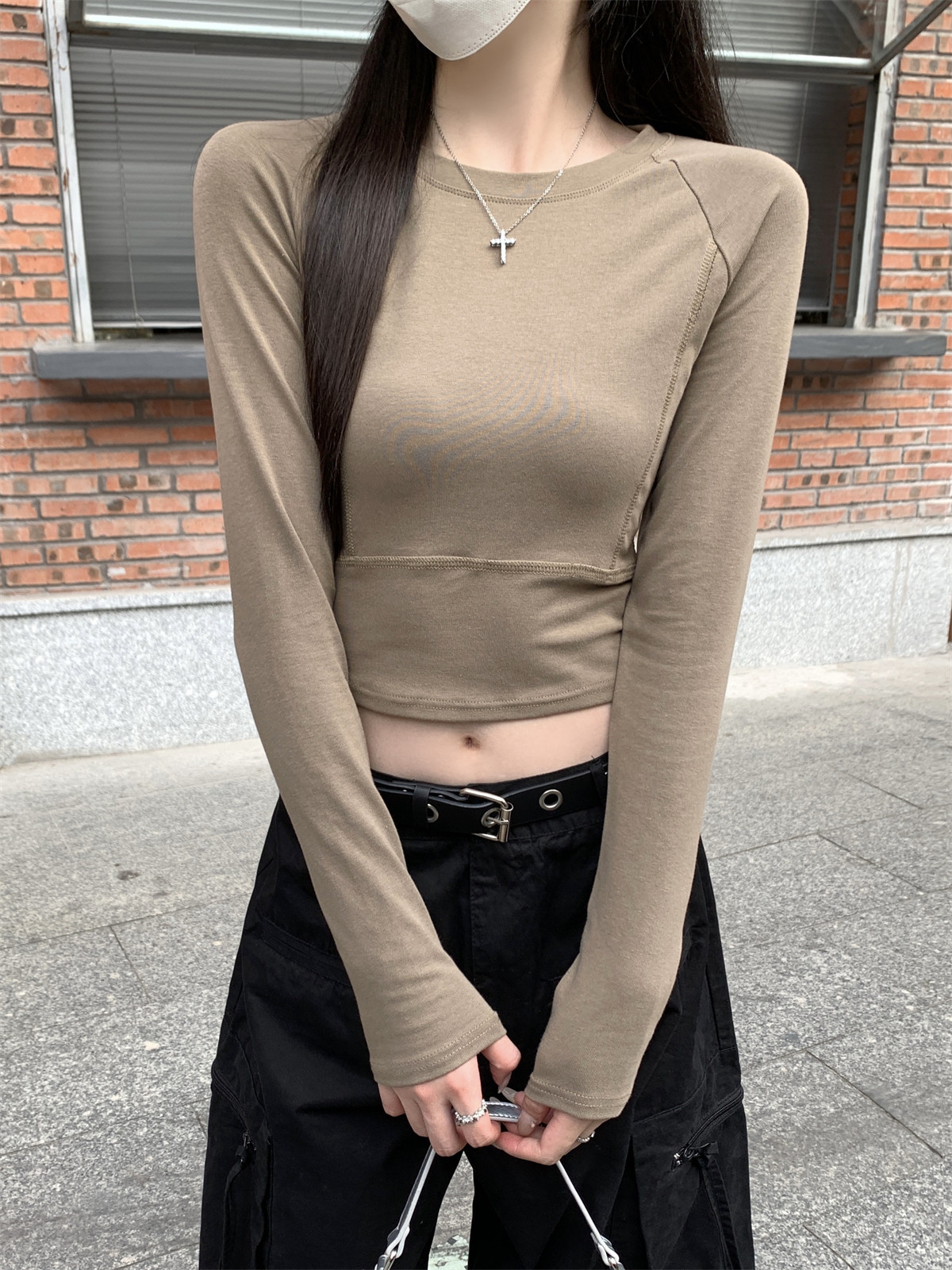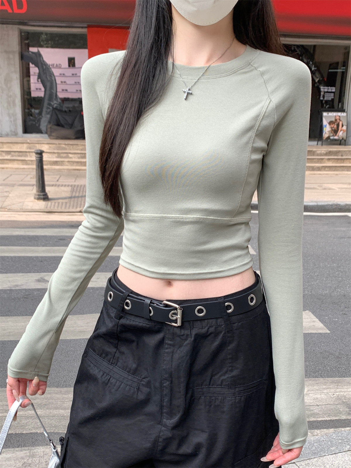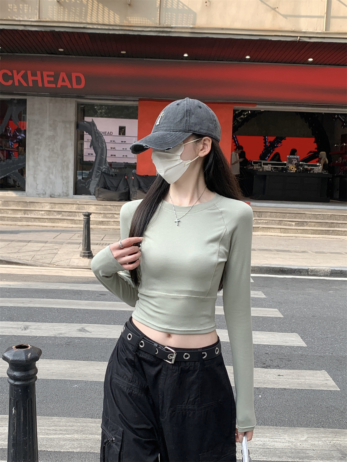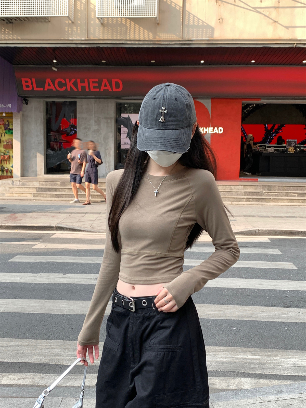 Korean Style Slim Fit Raglan Sleeve Short T-Shirt for Women, 2026 Spring New Versatile Round Neck High-Waisted Top for Petite Figures