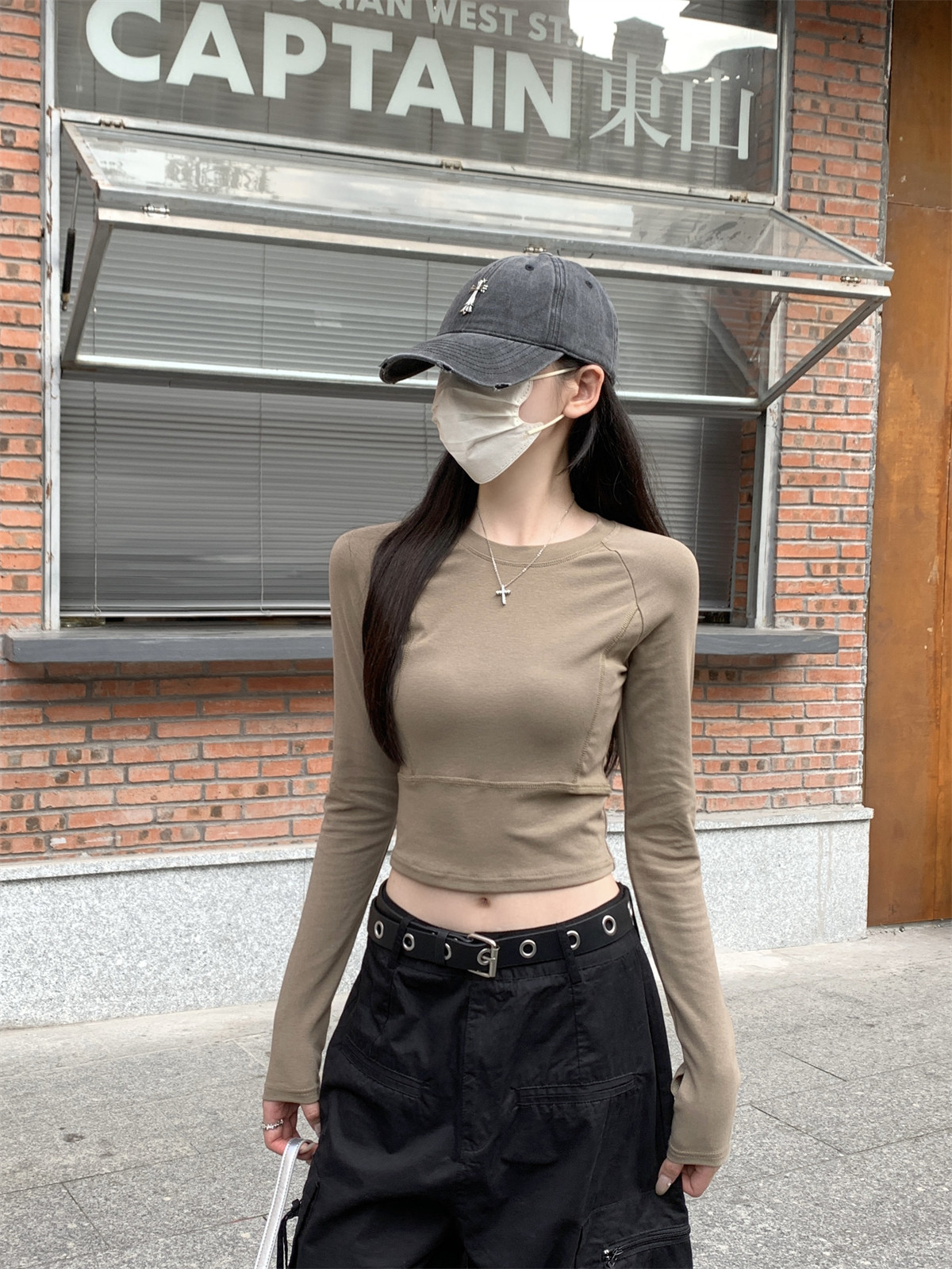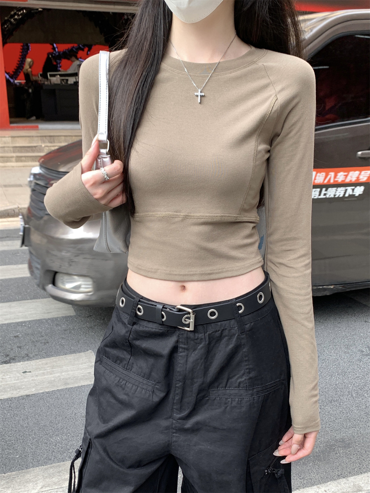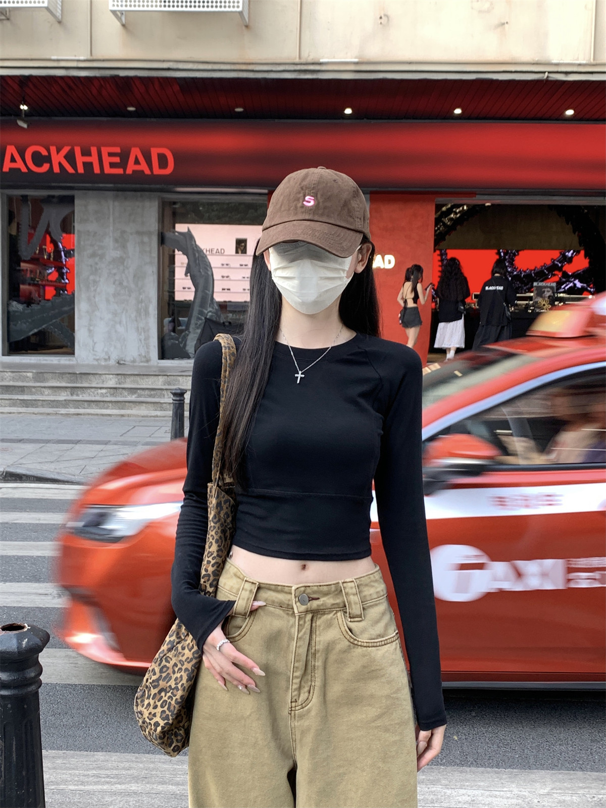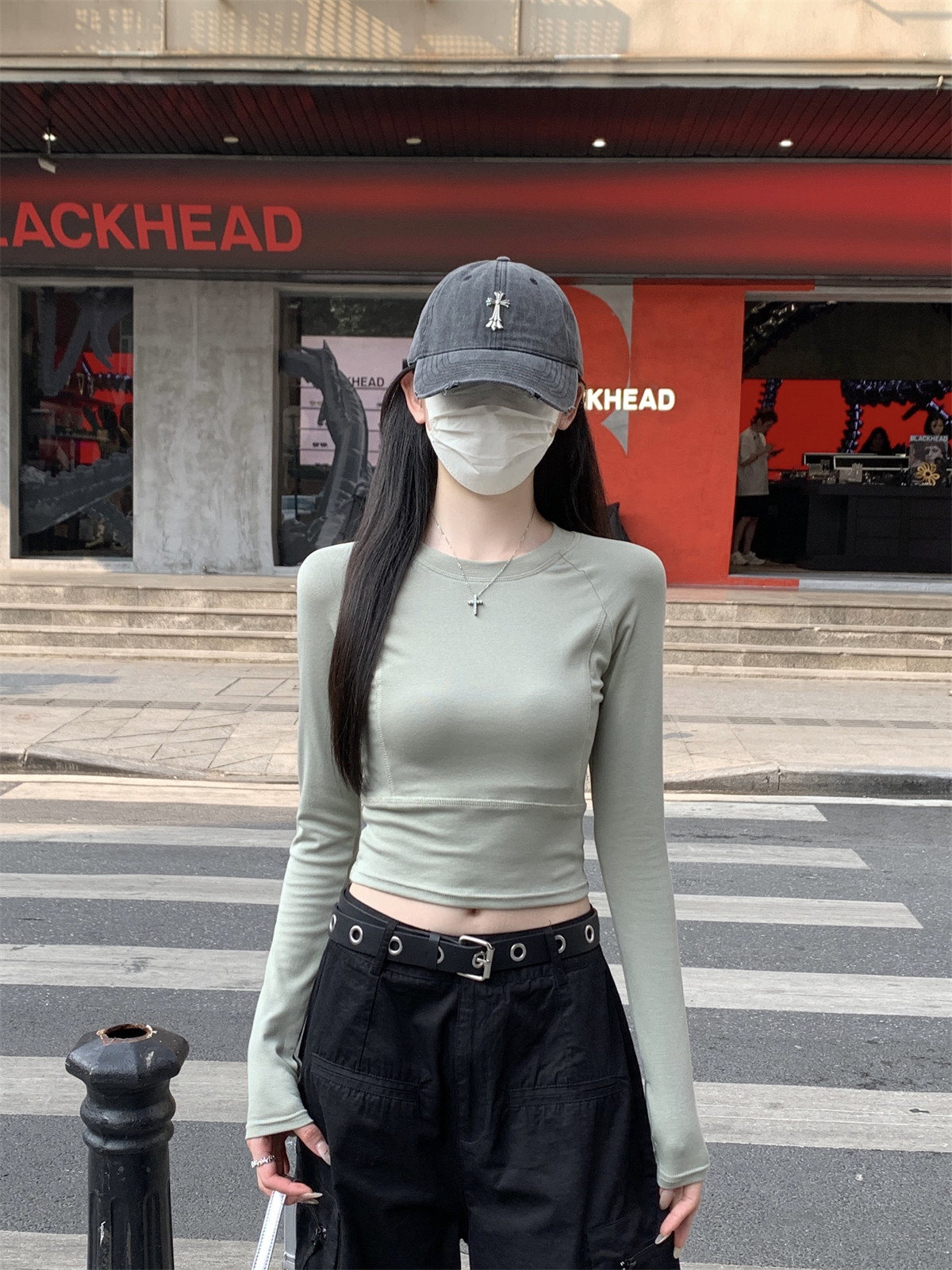 Korean Style Slim Fit Raglan Sleeve Short T-Shirt for Women, 2026 Spring New Versatile Round Neck High-Waisted Top for Petite Figures