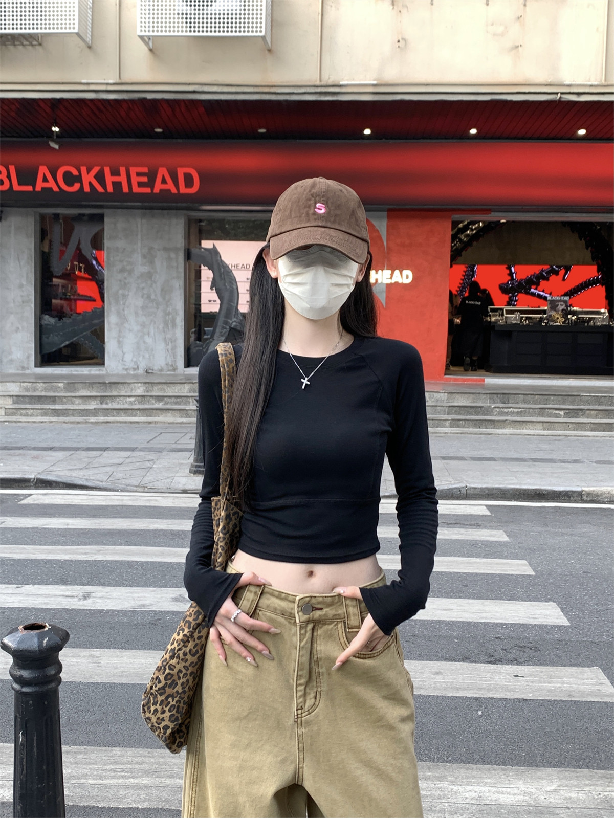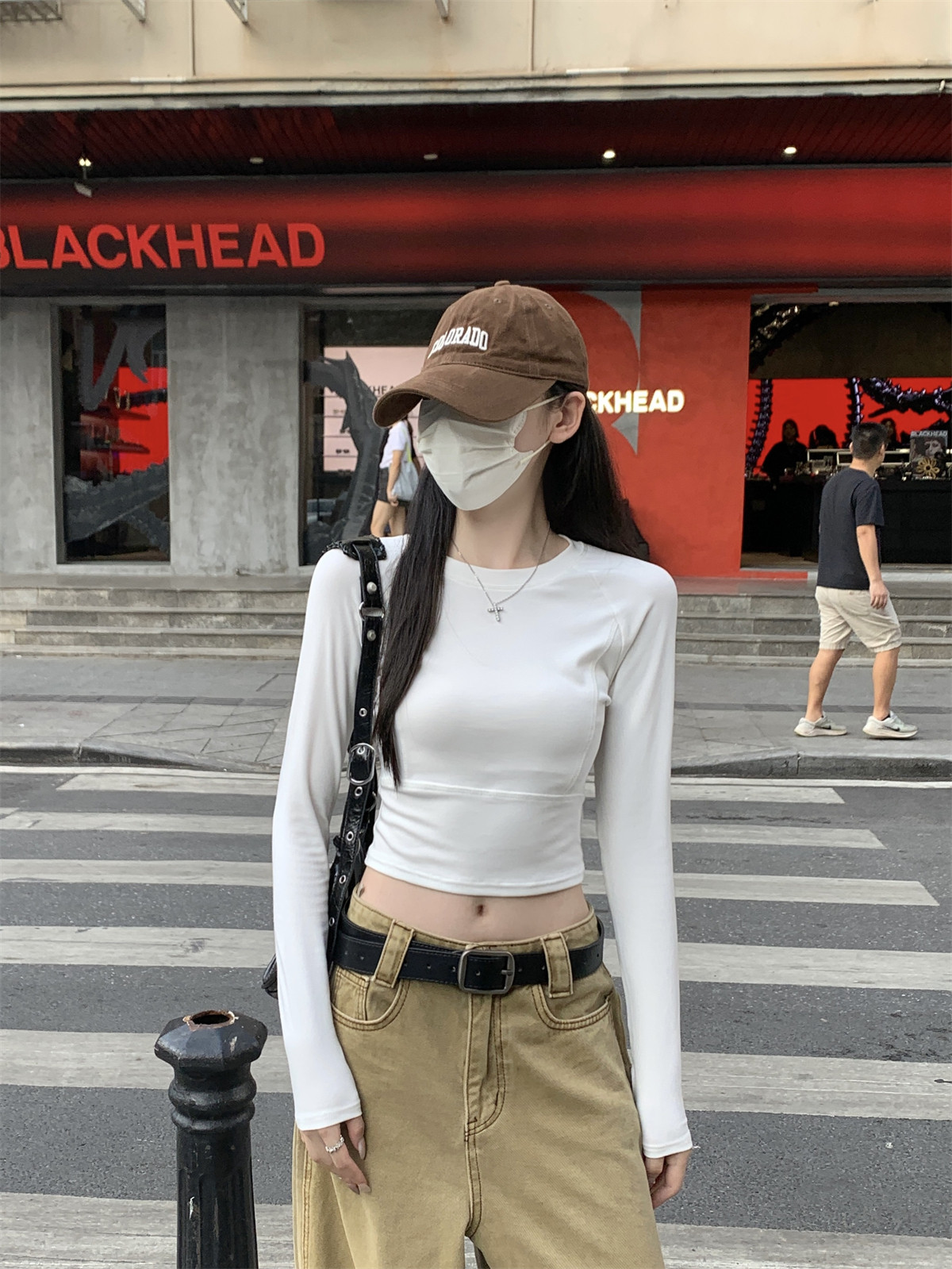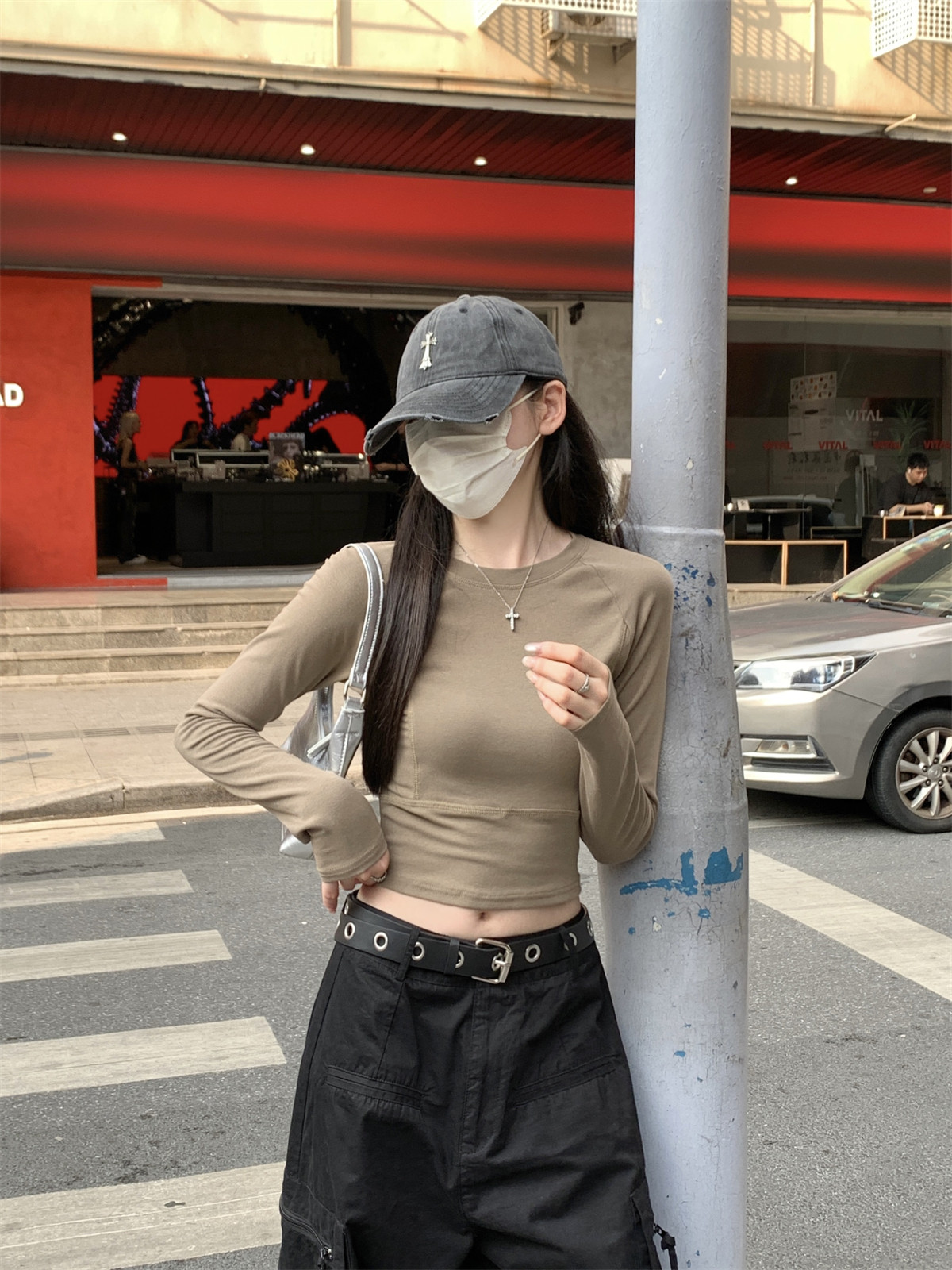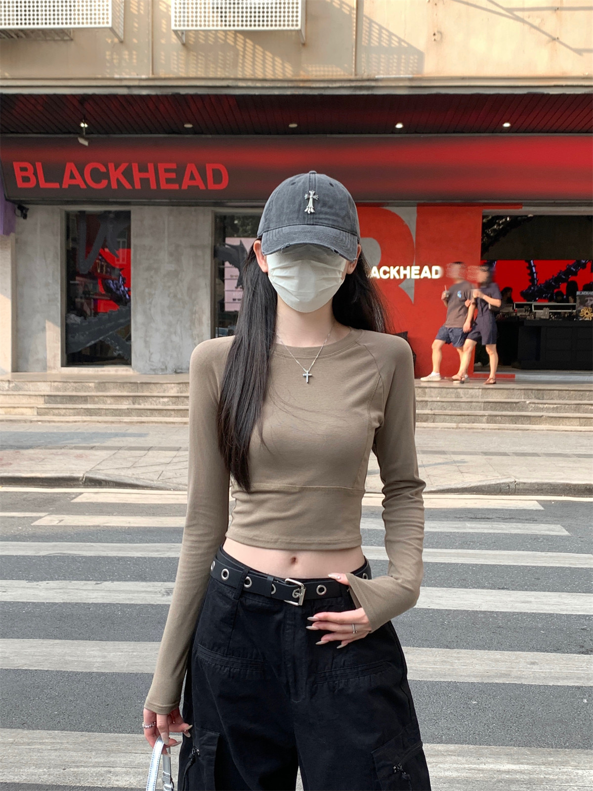 Korean Style Slim Fit Raglan Sleeve Short T-Shirt for Women, 2026 Spring New Versatile Round Neck High-Waisted Top for Petite Figures