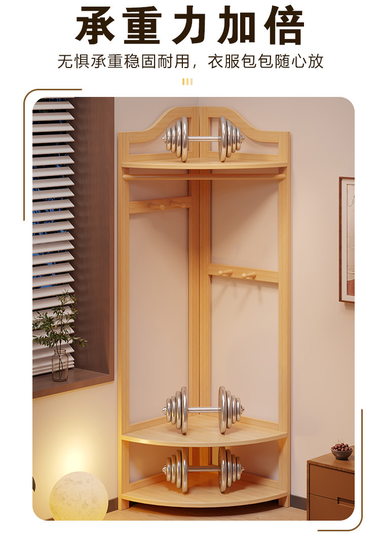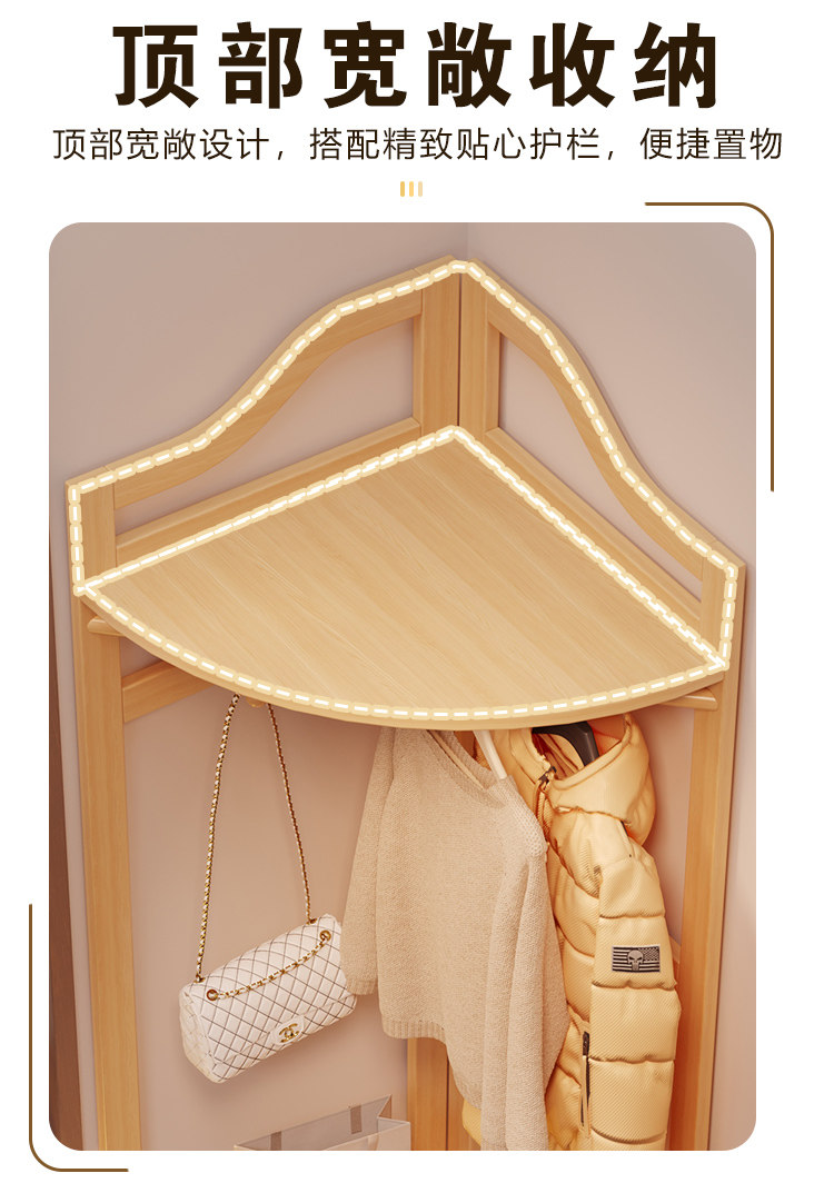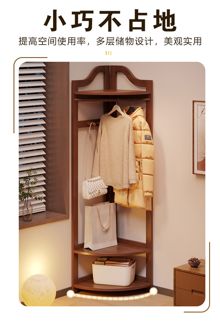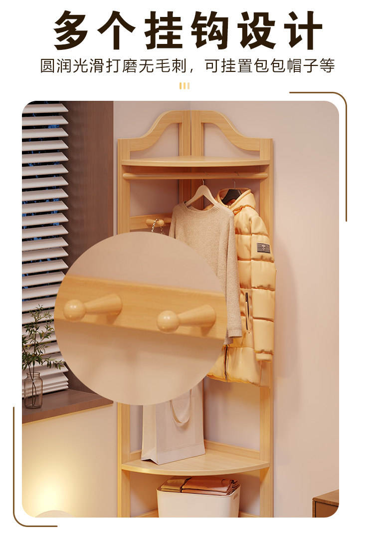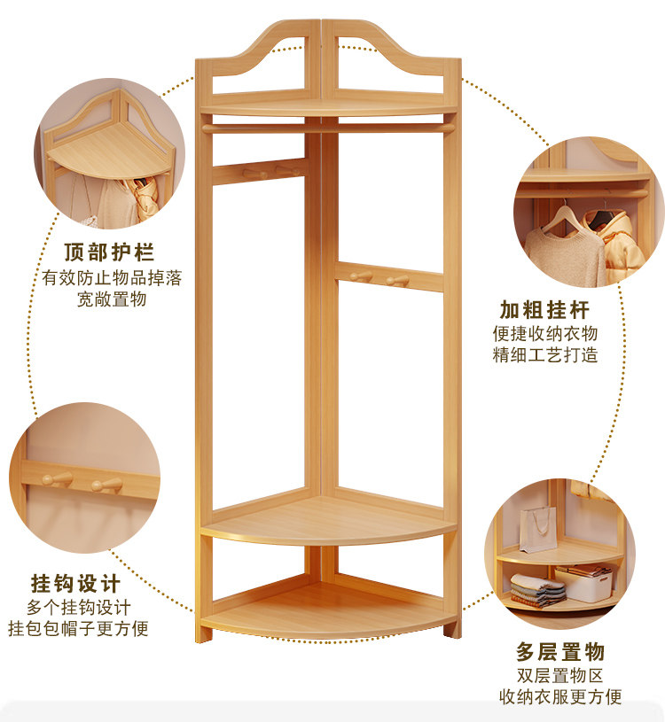 Corner Coat Rack, Floor-Standing Bedroom Solid Wood Clothes Rack, Entryway Standing Indoor Simple Clothes Rack, Multifunctional