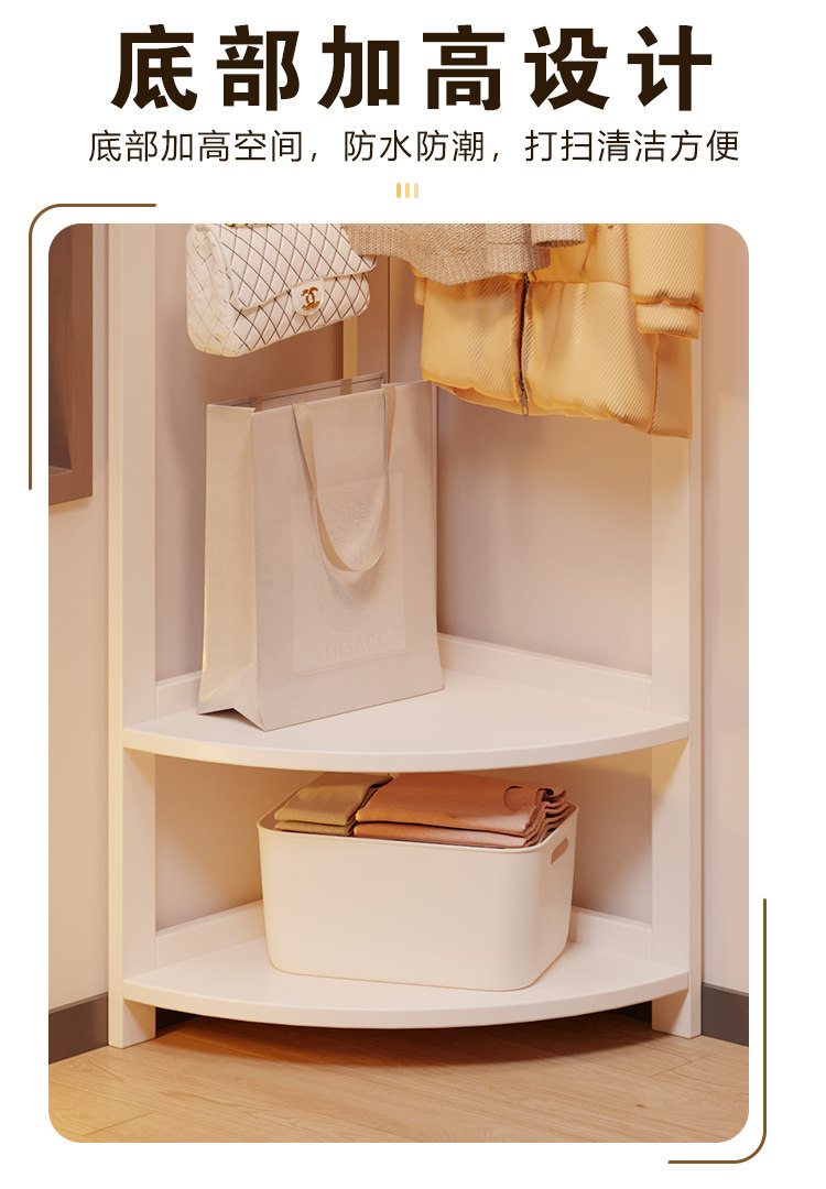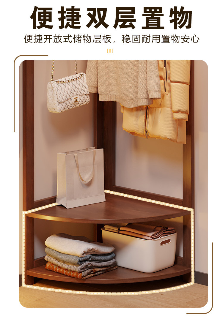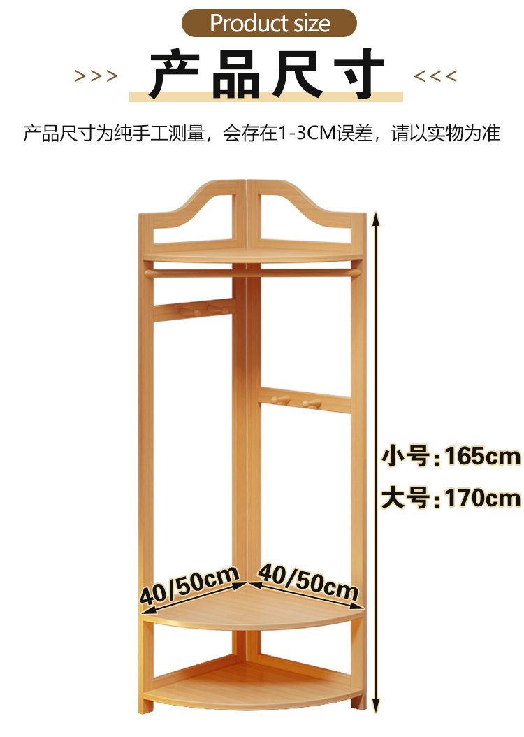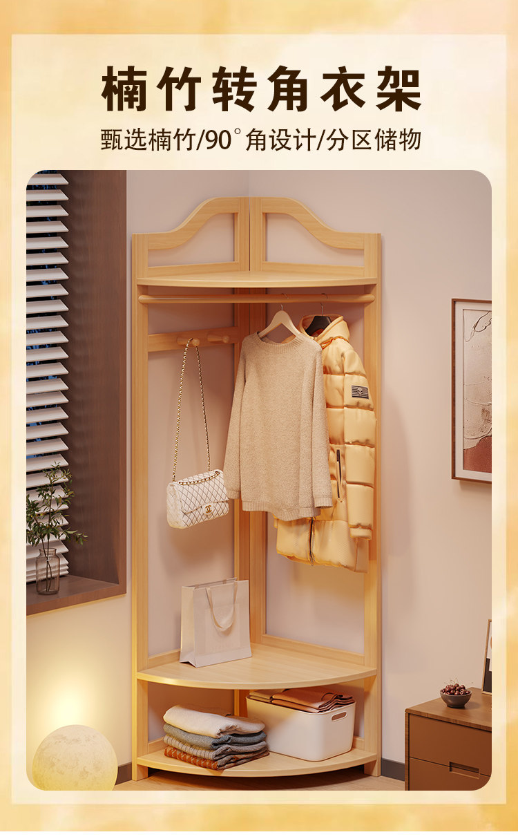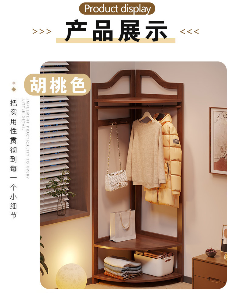 Corner Coat Rack, Floor-Standing Bedroom Solid Wood Clothes Rack, Entryway Standing Indoor Simple Clothes Rack, Multifunctional