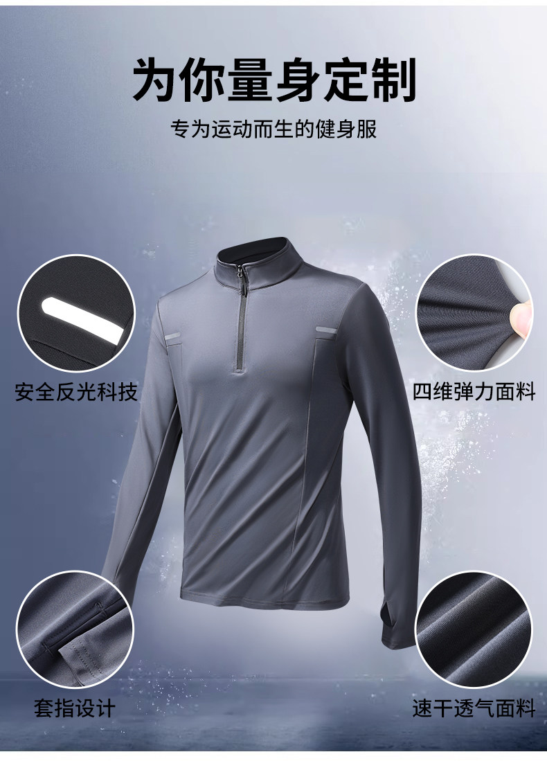 Sports suit men's half-zip autumn and winter running morning run fitness training clothes quick-drying sports track and field clothing equipment