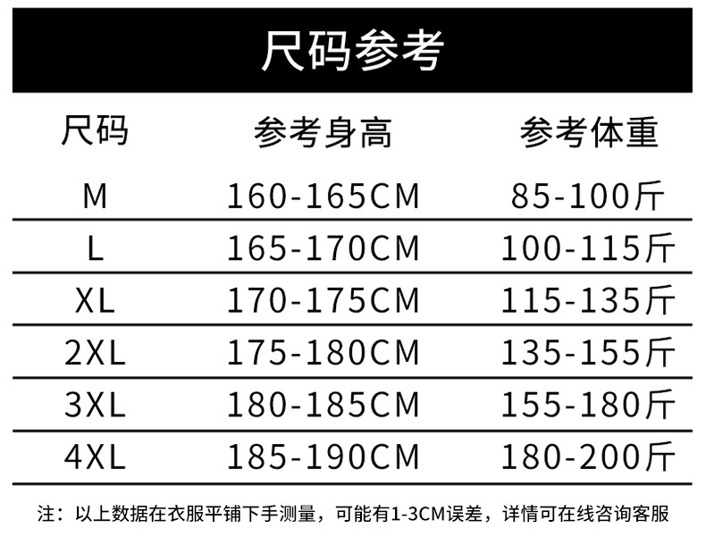 China (cm) 165 / 88-90 170 / 96-98 175 / 108-110 180 / 118-122 185 / 126-130
