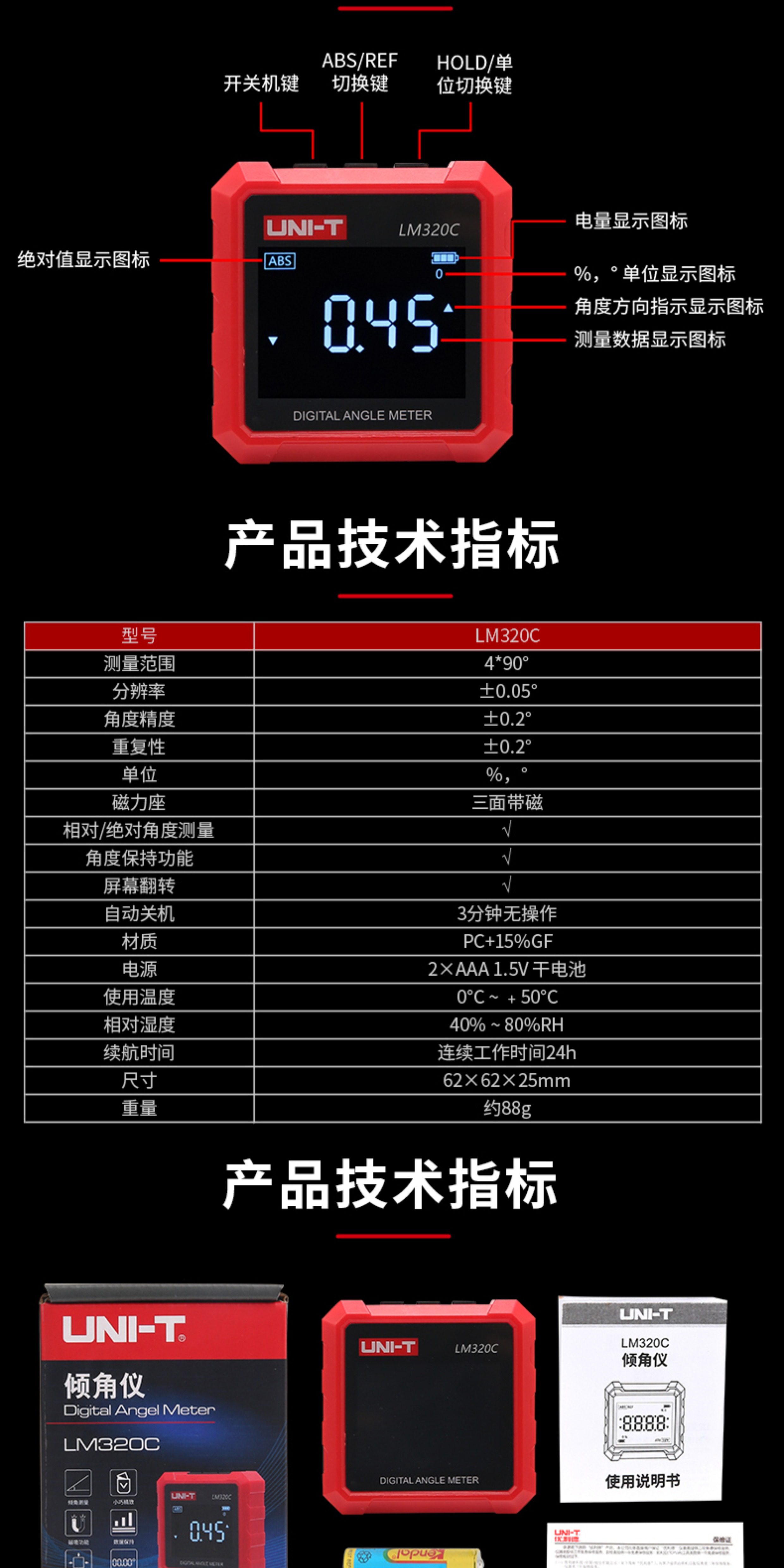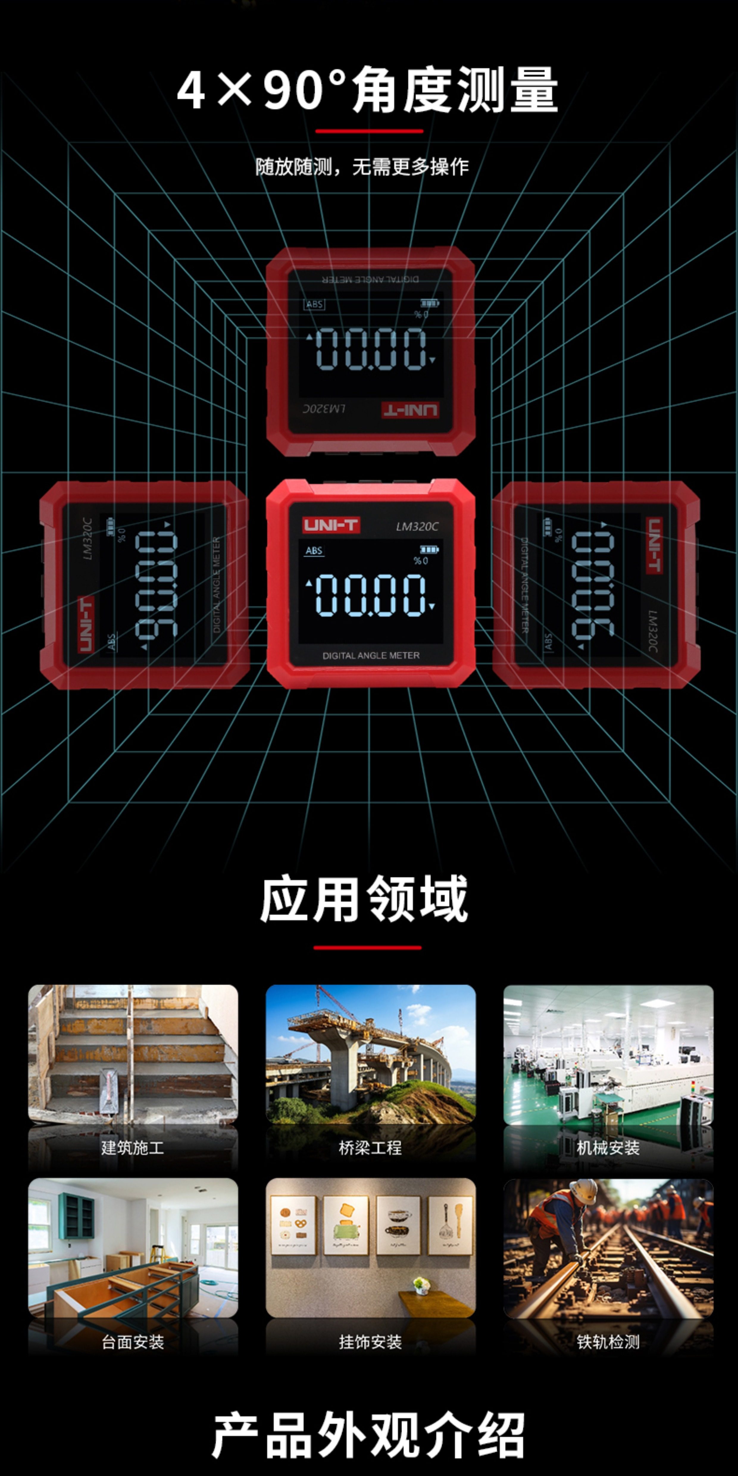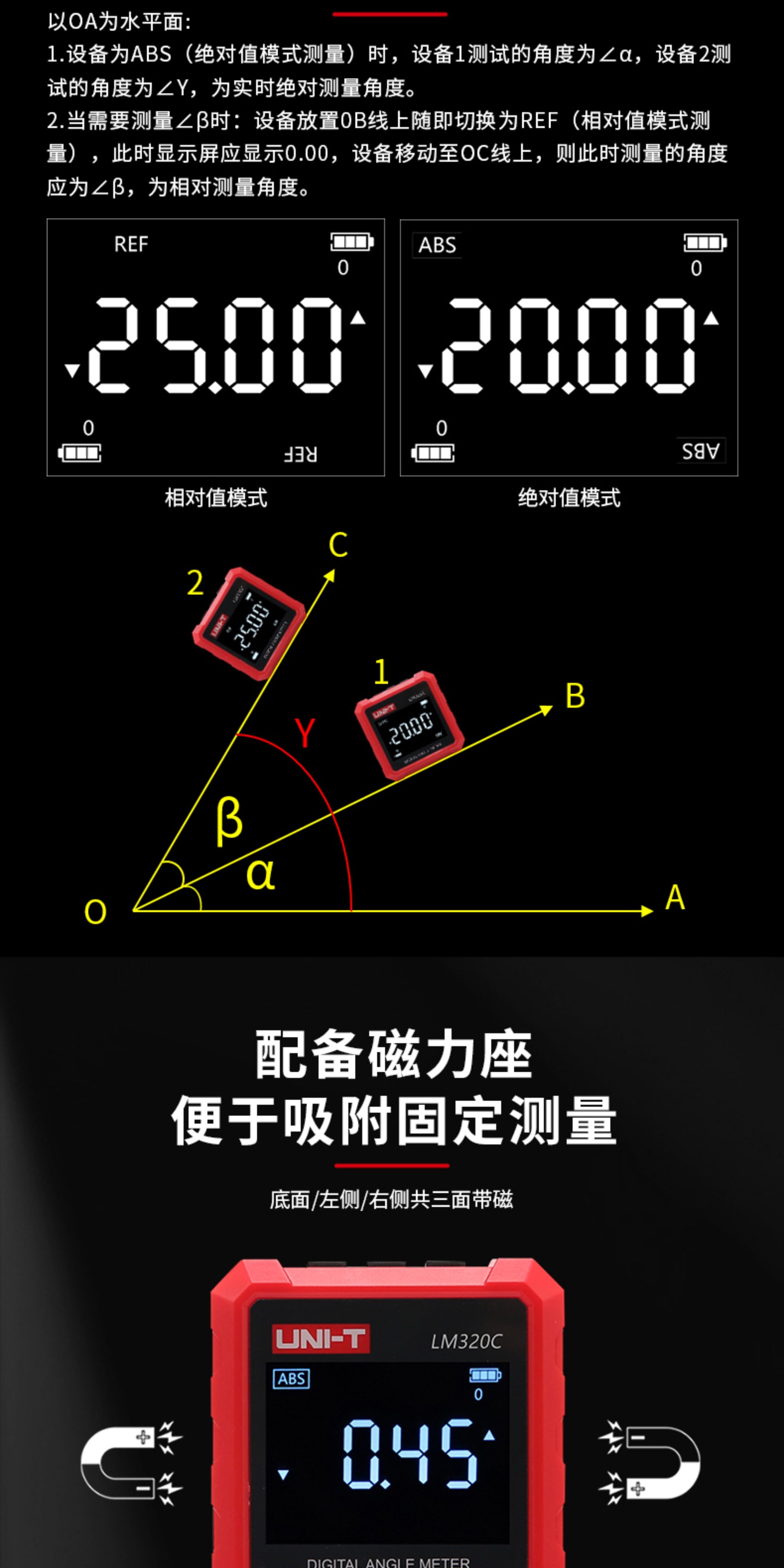 Uliide Lm320C Digital Inclinometer 4×90 ° Angle Measurement with Three-Sided Magnets for Home Installation and Measurement
