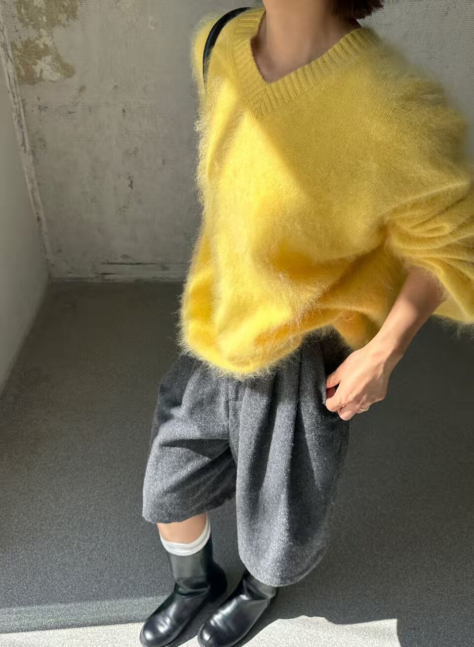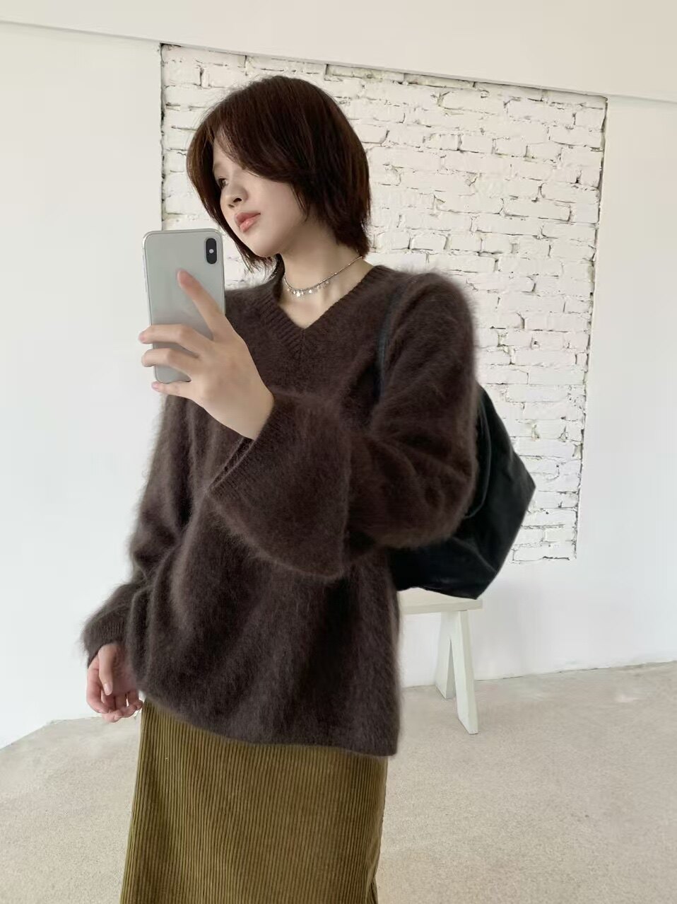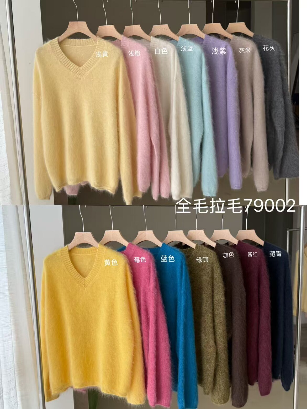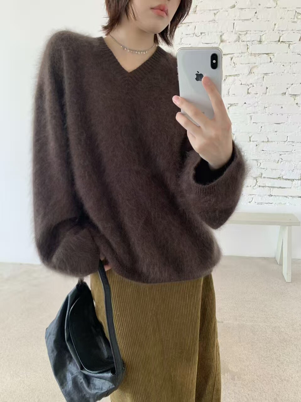 Wool Brushed 79002 New Korean Style V-Neck Long-Sleeved Knitwear for Women, Loose Furry Sweater, Mid-Length Outer Wear