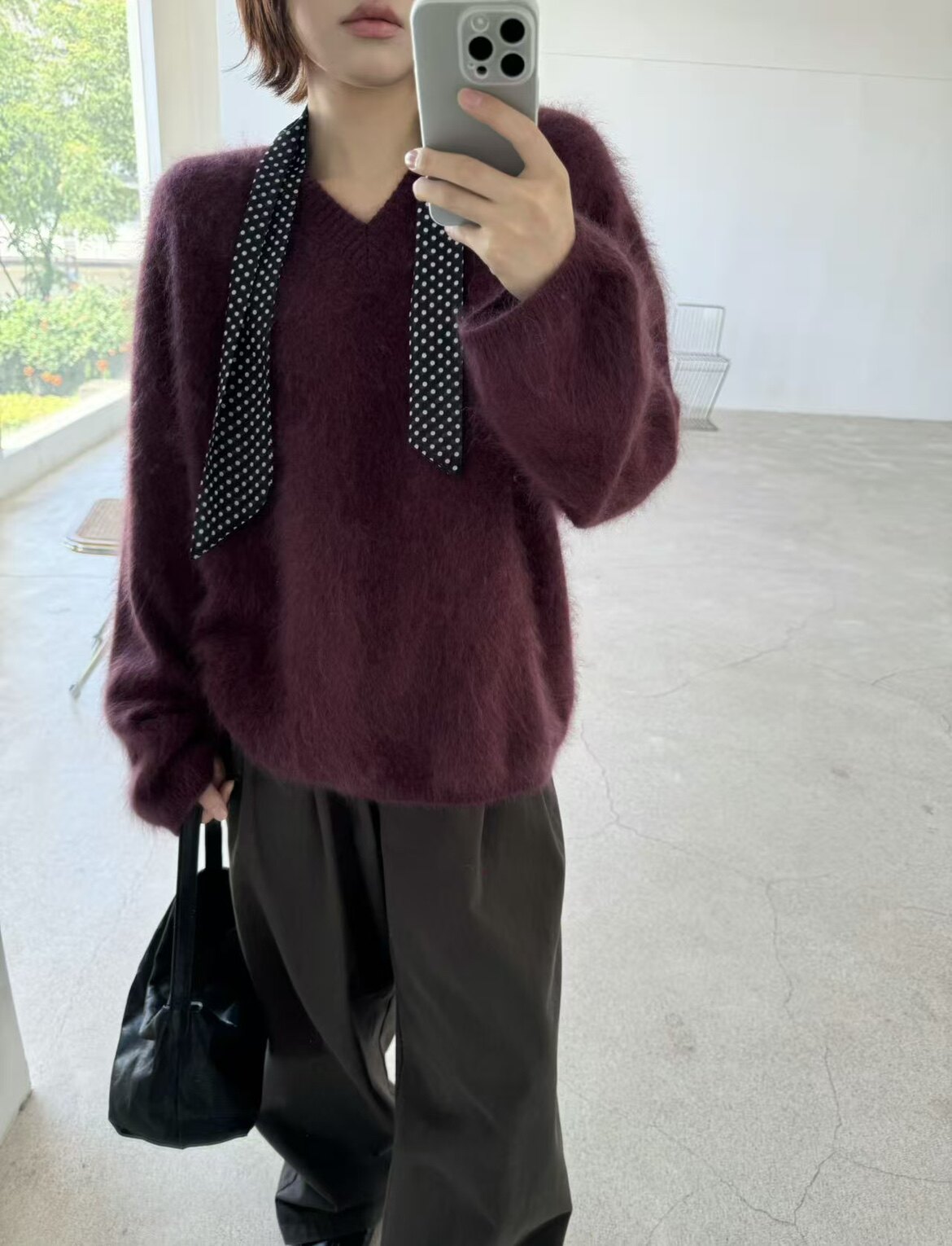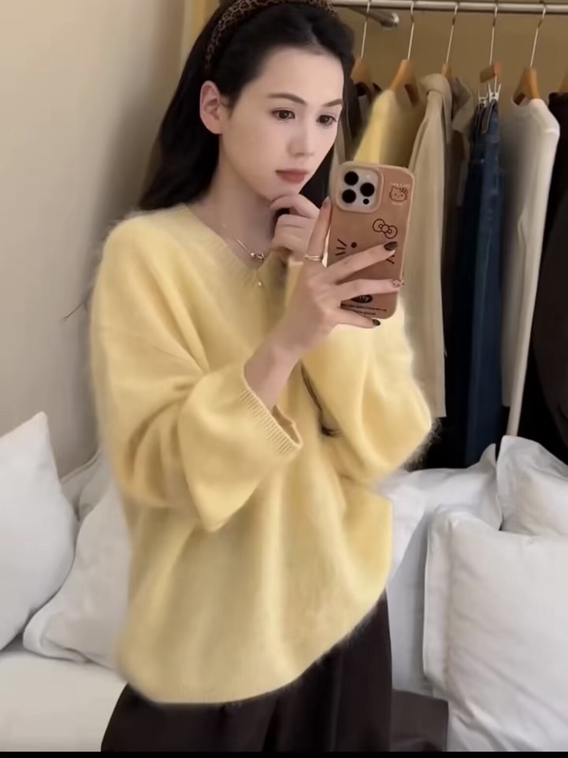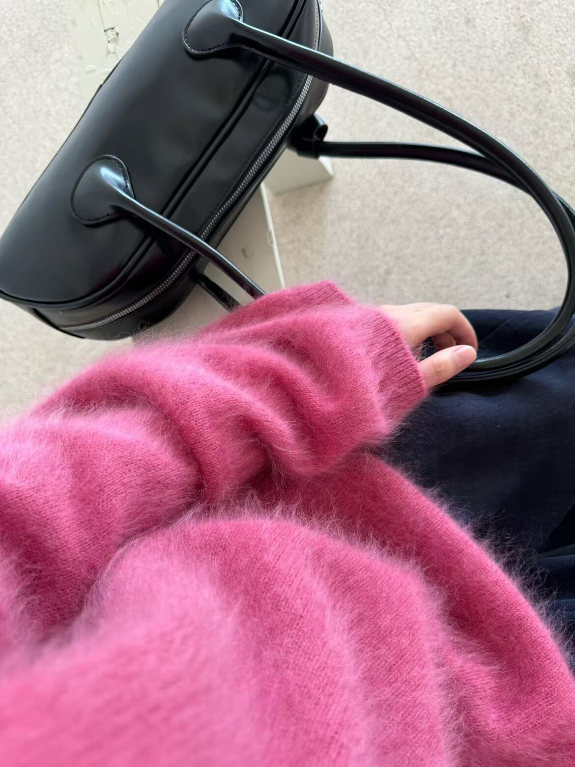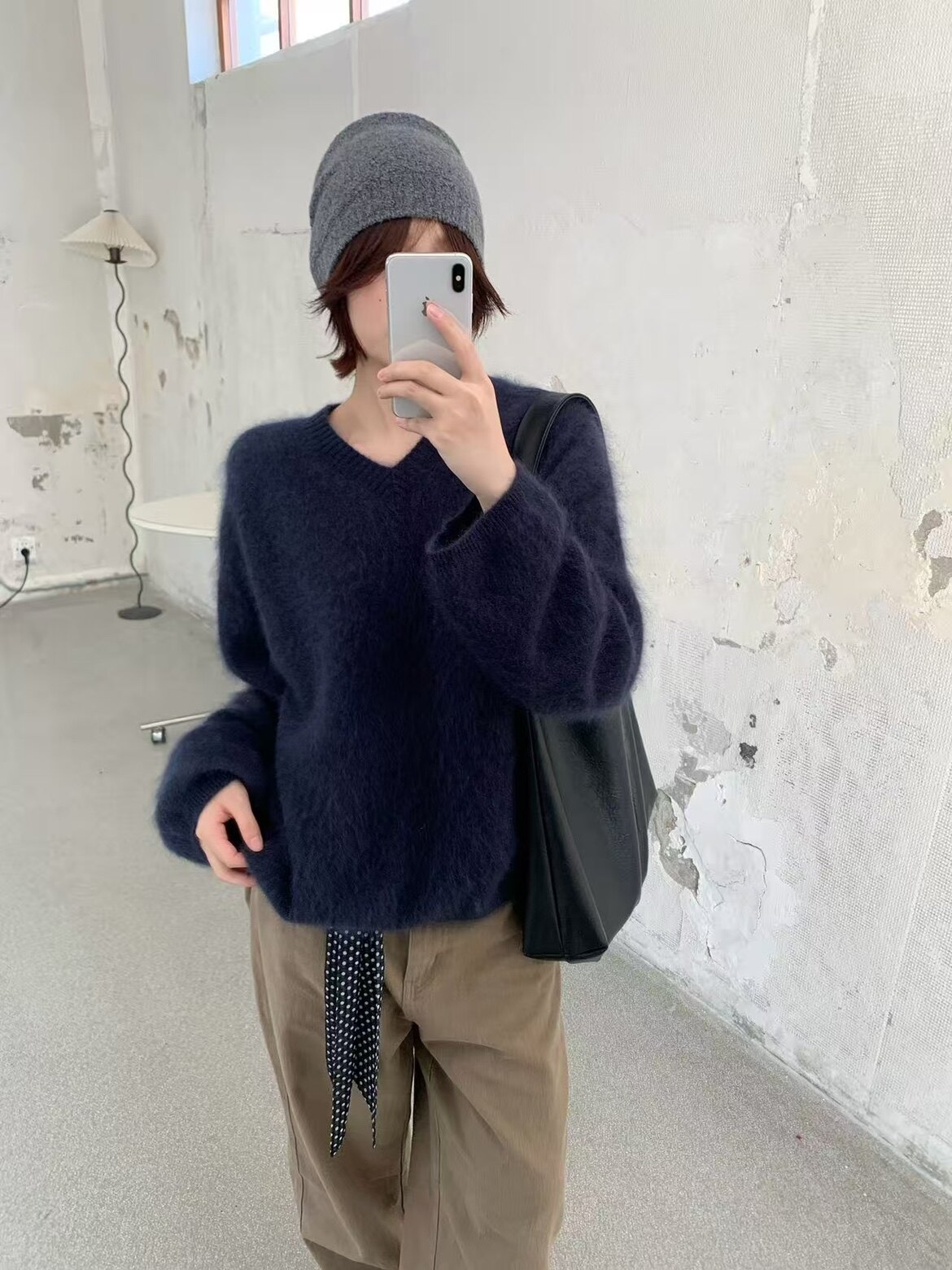 Wool Brushed 79002 New Korean Style V-Neck Long-Sleeved Knitwear for Women, Loose Furry Sweater, Mid-Length Outer Wear