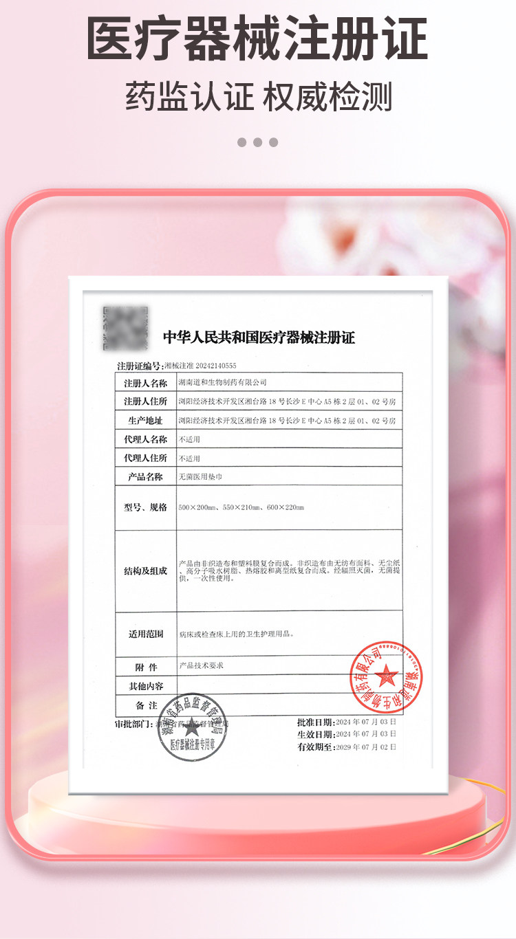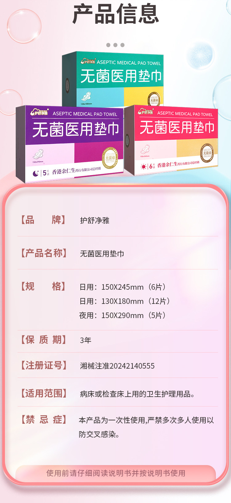 Medical Device Product Name Yue Ren Sheng Hushu Jingya Sterile Medical Pad