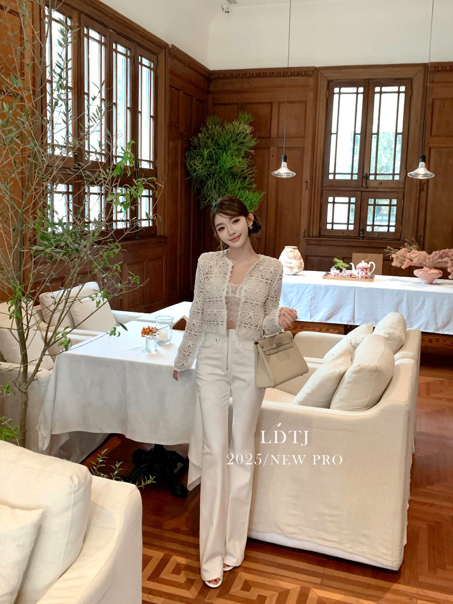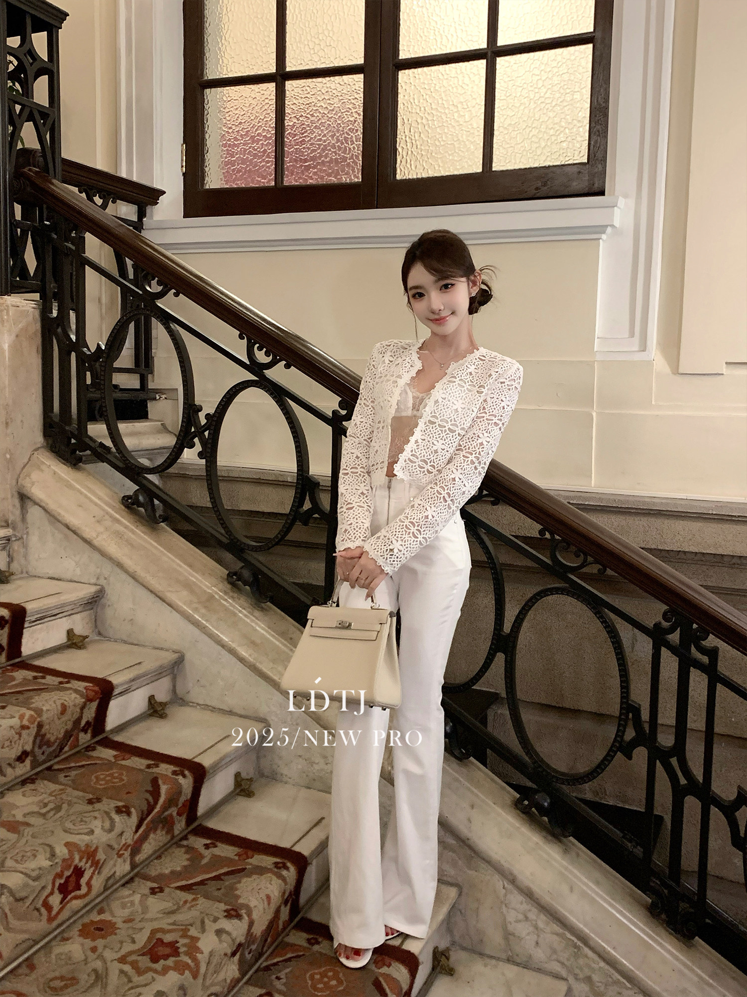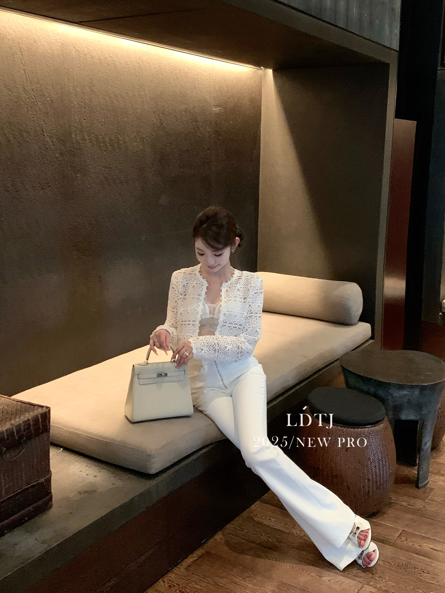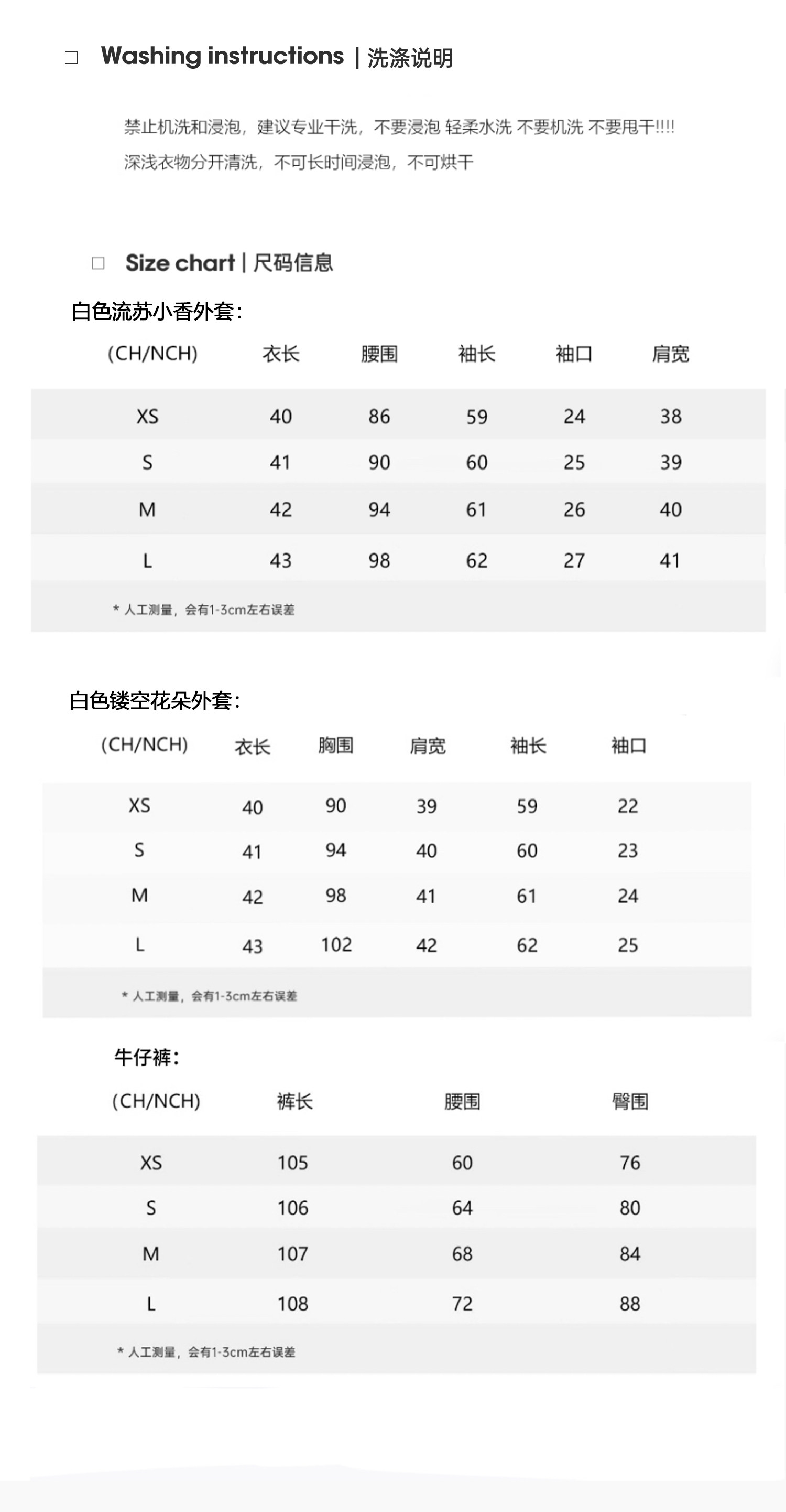 Color Classification White Jeans,White Tassel Tweed Jacket,White Hollow Flower Jacket