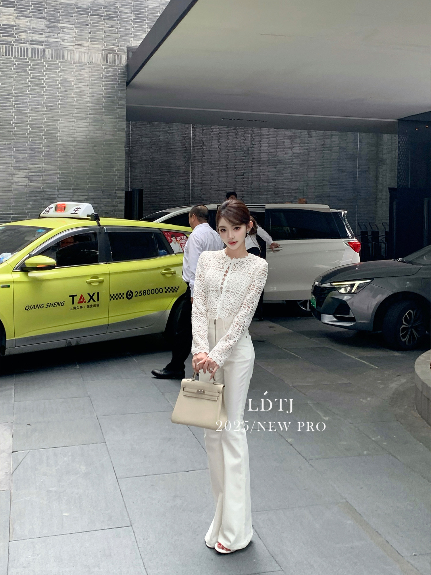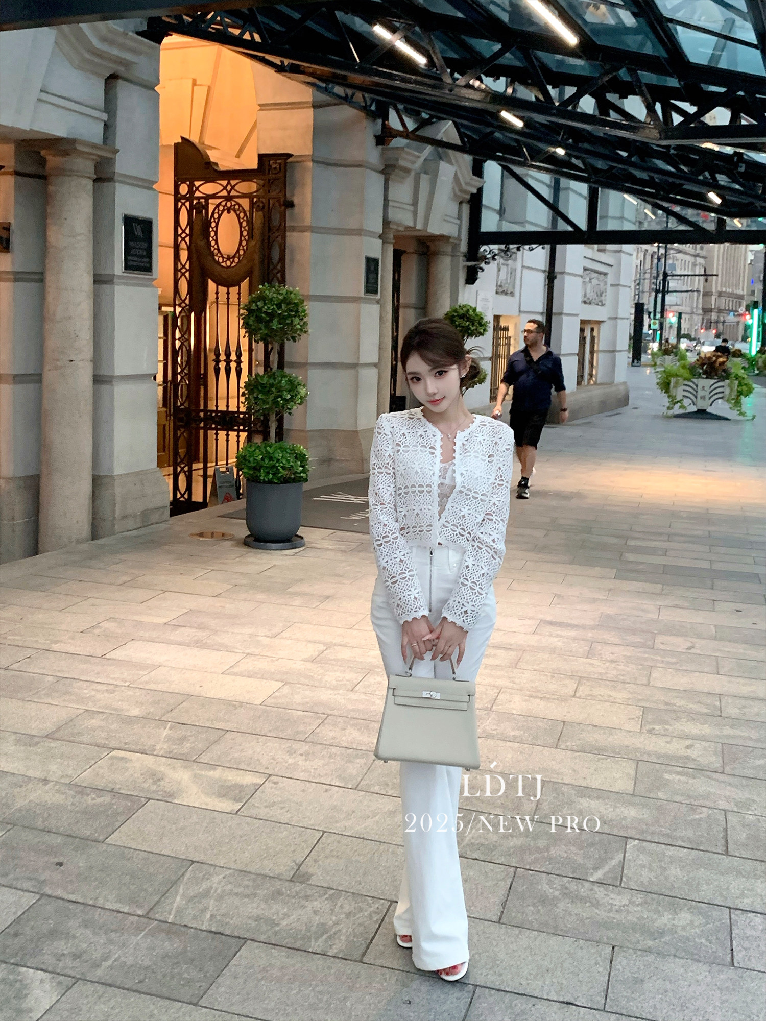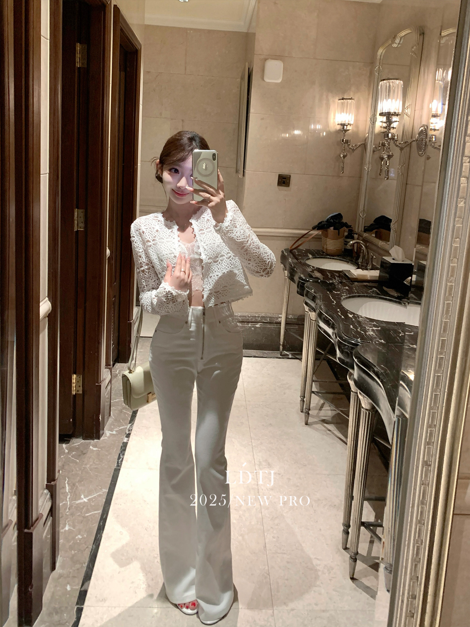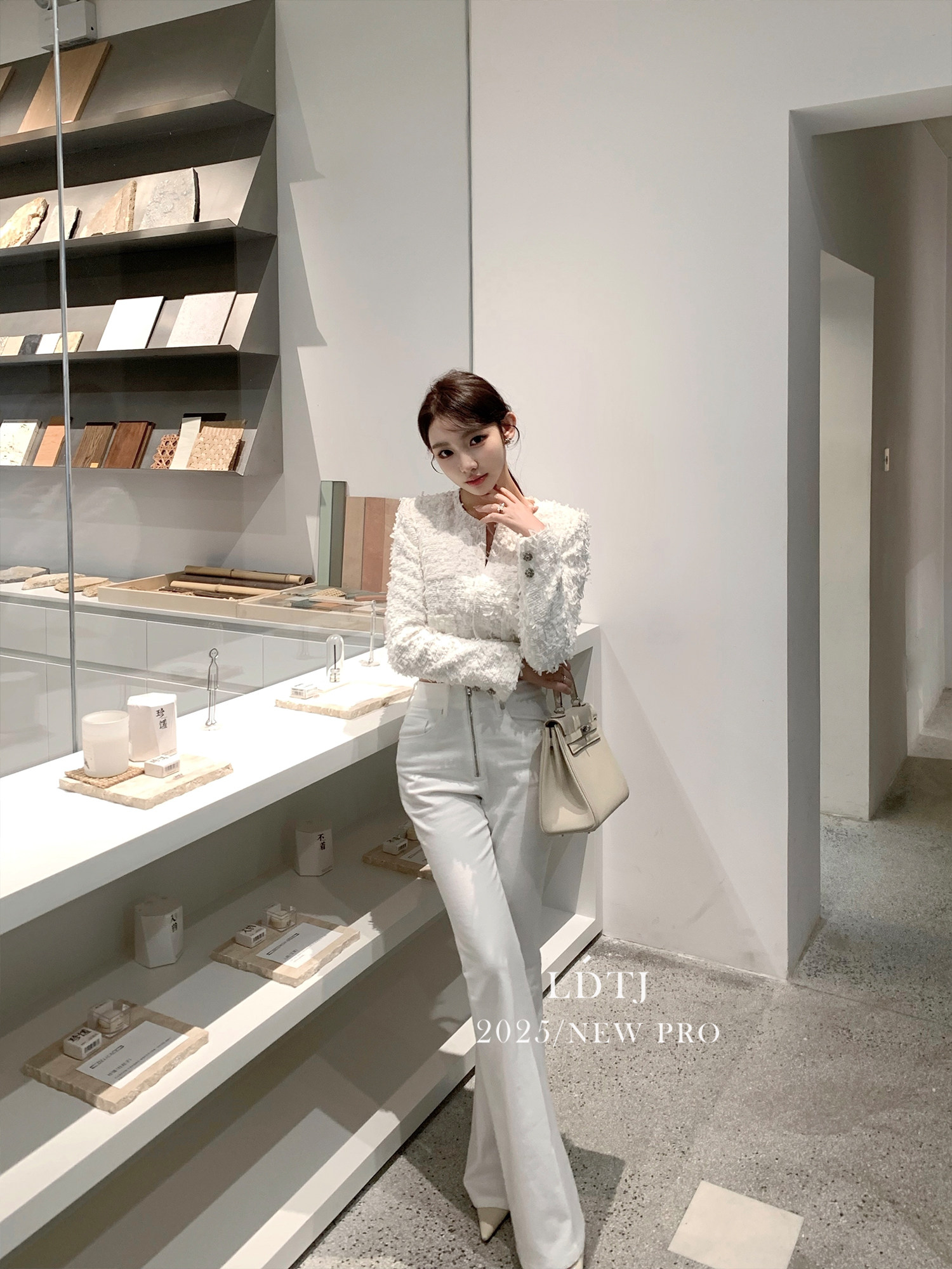 Color Classification White Jeans,White Tassel Tweed Jacket,White Hollow Flower Jacket