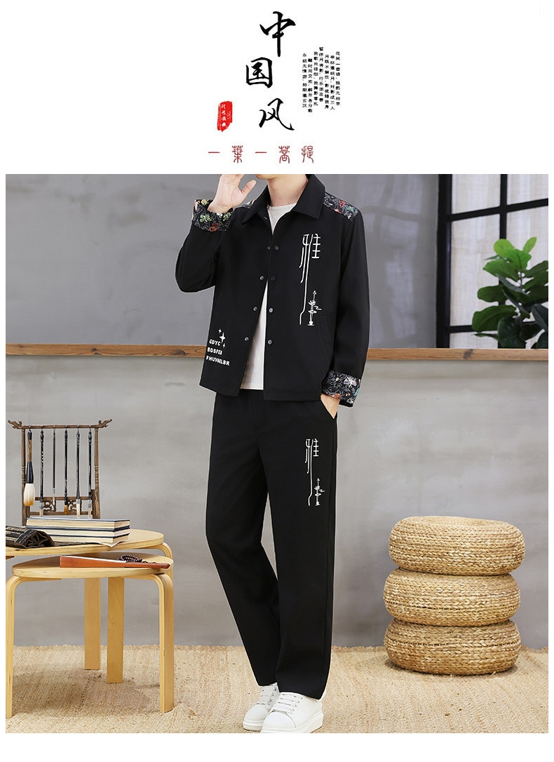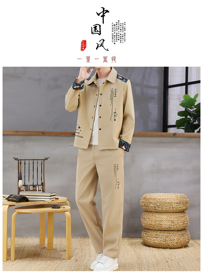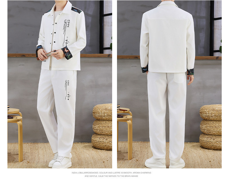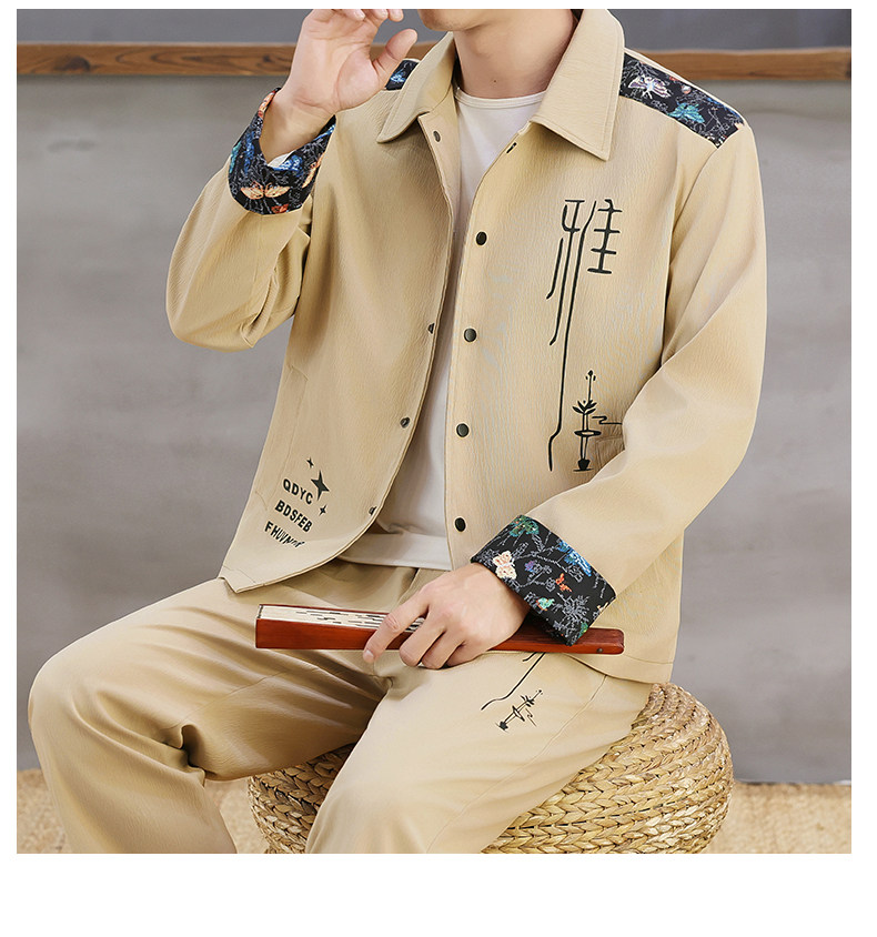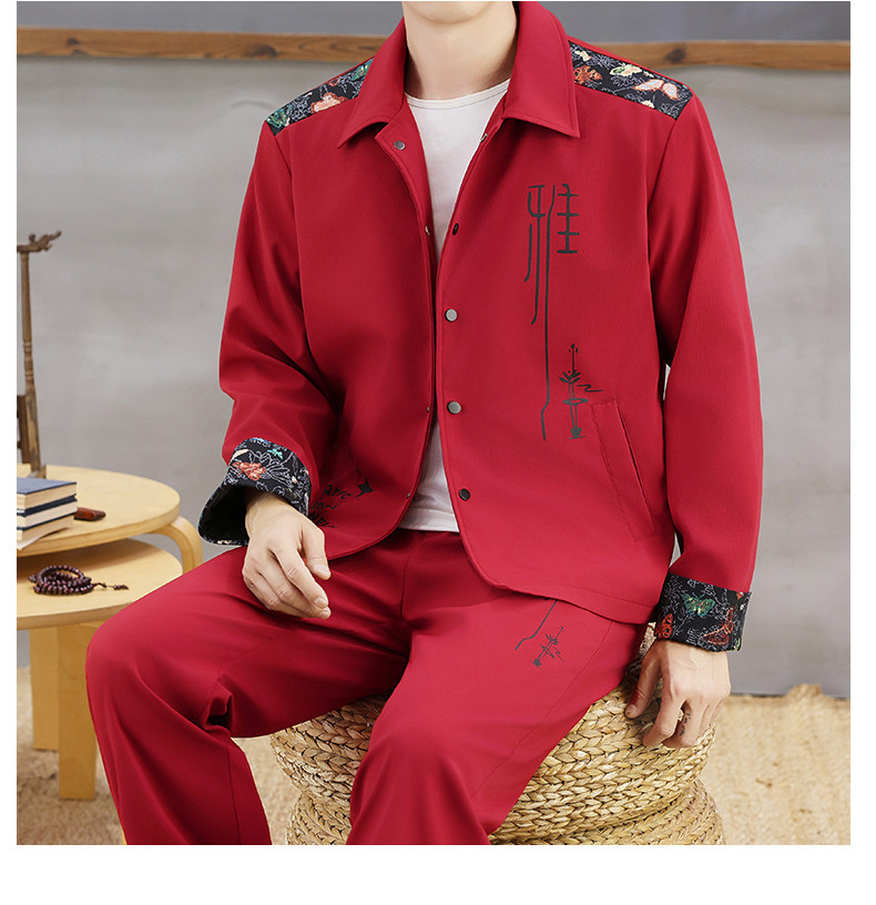 Autumn New Chinese Style Jacket Suit for Men with Lapel, High-End Design, Printed Fashion, Long-Sleeved Long Pants Two-Piece Set