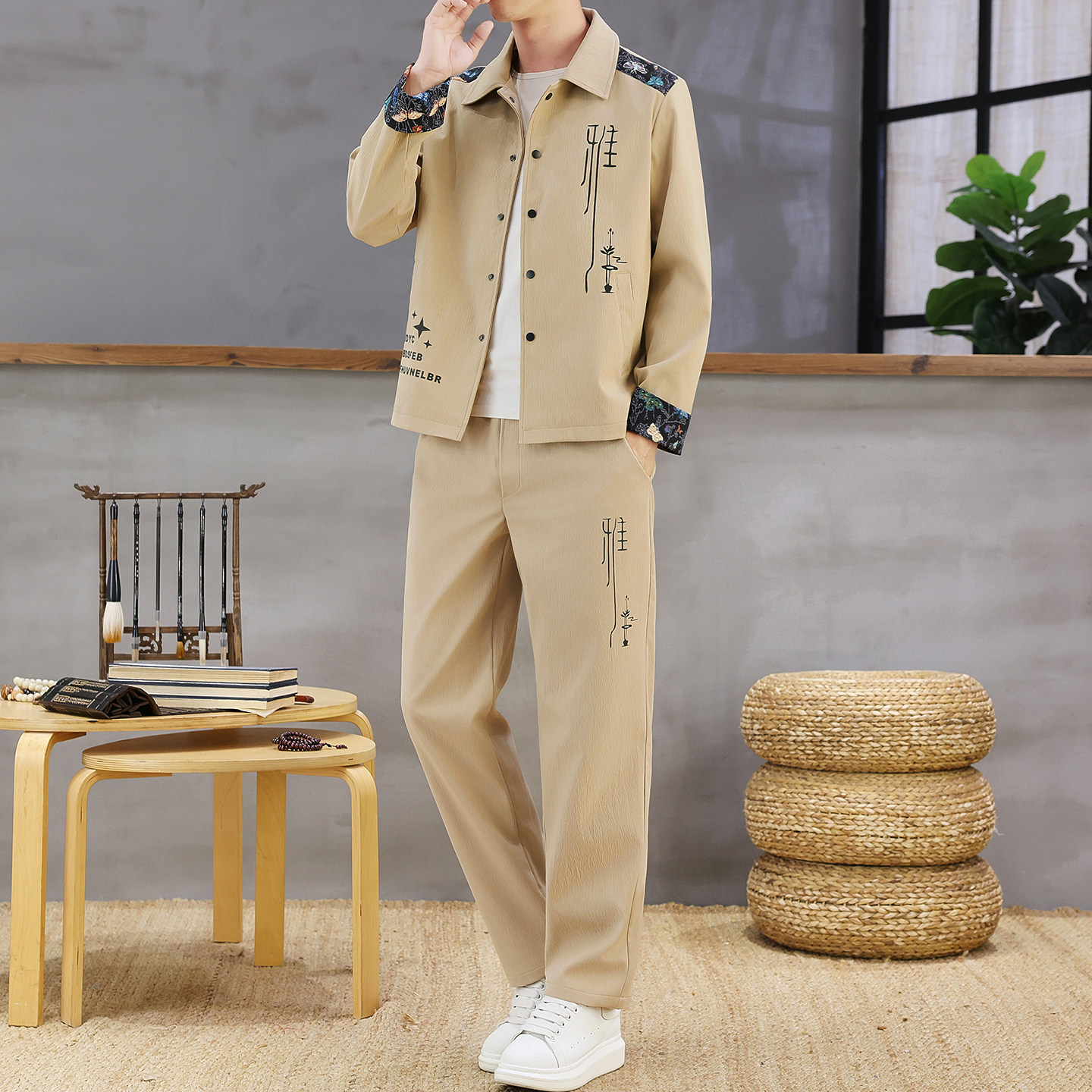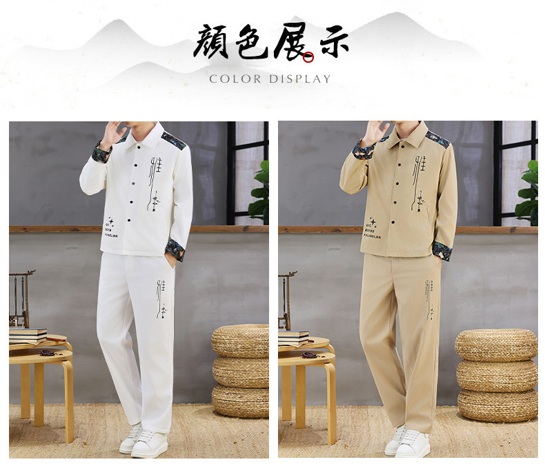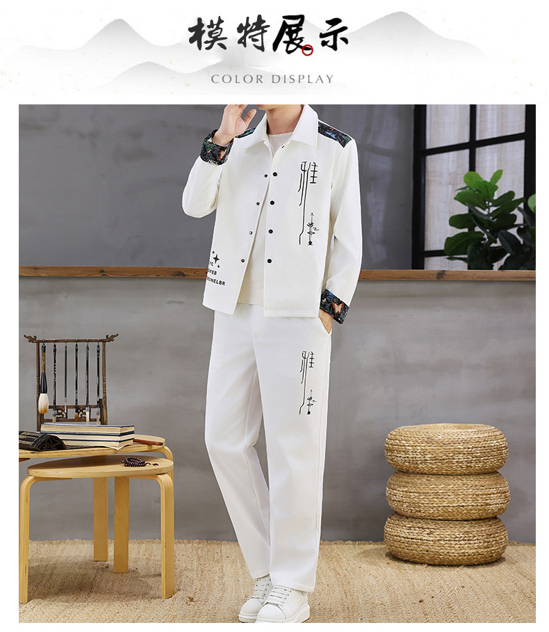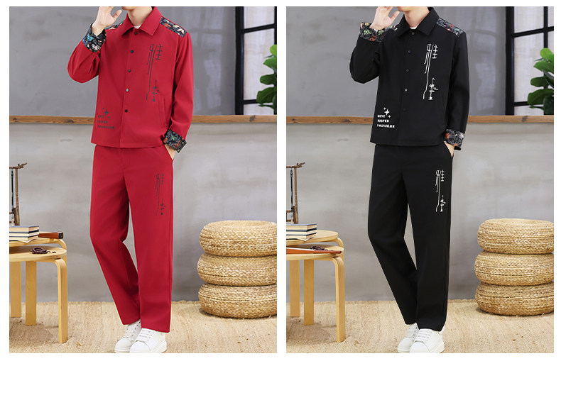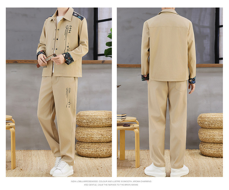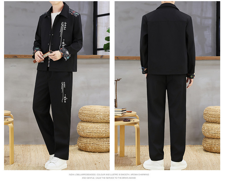Autumn New Chinese Style Jacket Suit for Men with Lapel, High-End Design, Printed Fashion, Long-Sleeved Long Pants Two-Piece Set