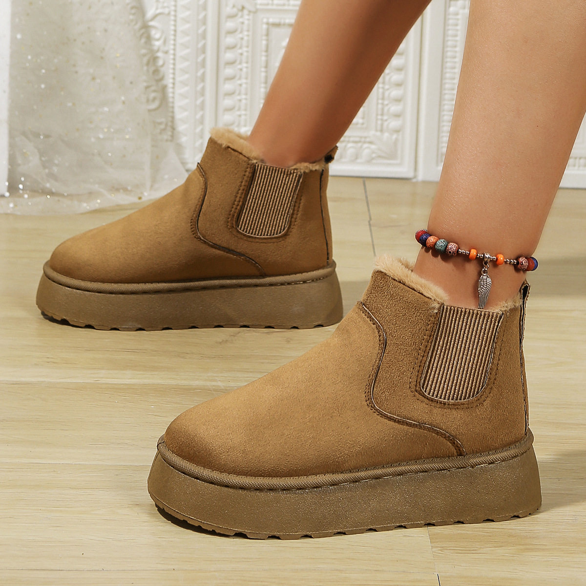 Women's Winter Snow Boots, Size 44, Warm Cotton Shoes, 2025 New Model, Solid Color, Elastic Opening, Thick Sole, Stitched Short Boots