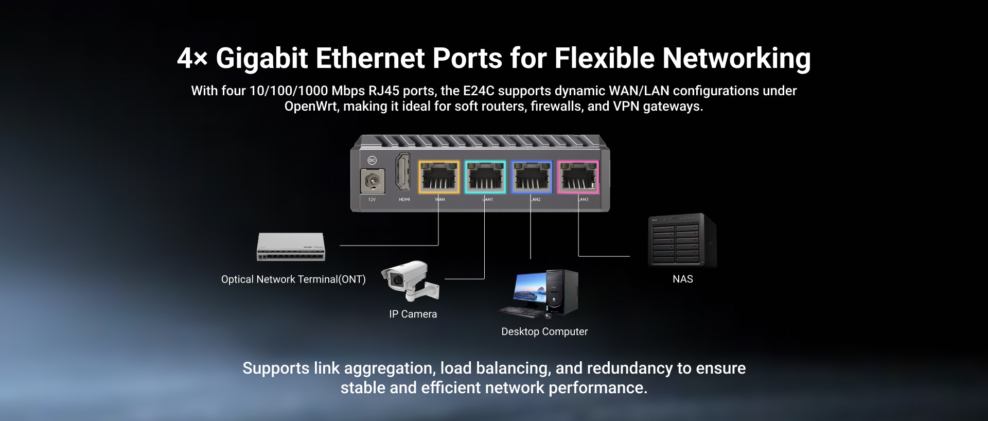 Radxa E24C Rk3528A Gateway Network Computer Development Board with Four Gigabit Ethernet Ports