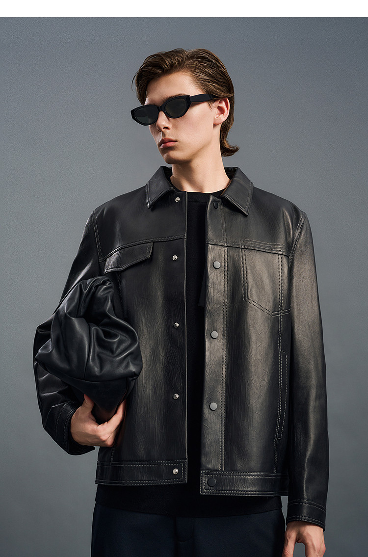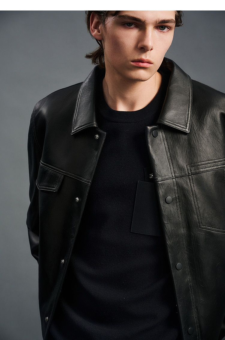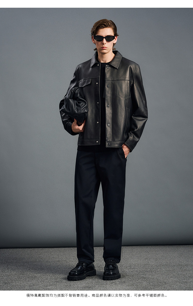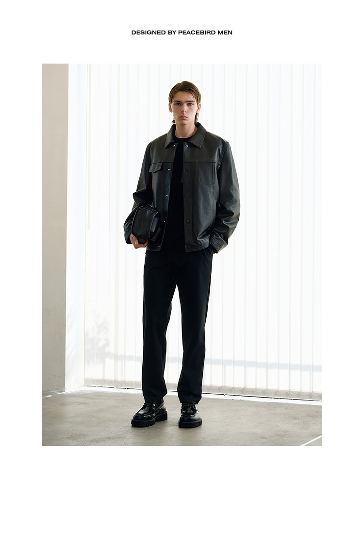 Peacebird Men's Genuine Leather Jacket Men's Trendy Brand Winter New High-End Coat down B1Bde4F01
