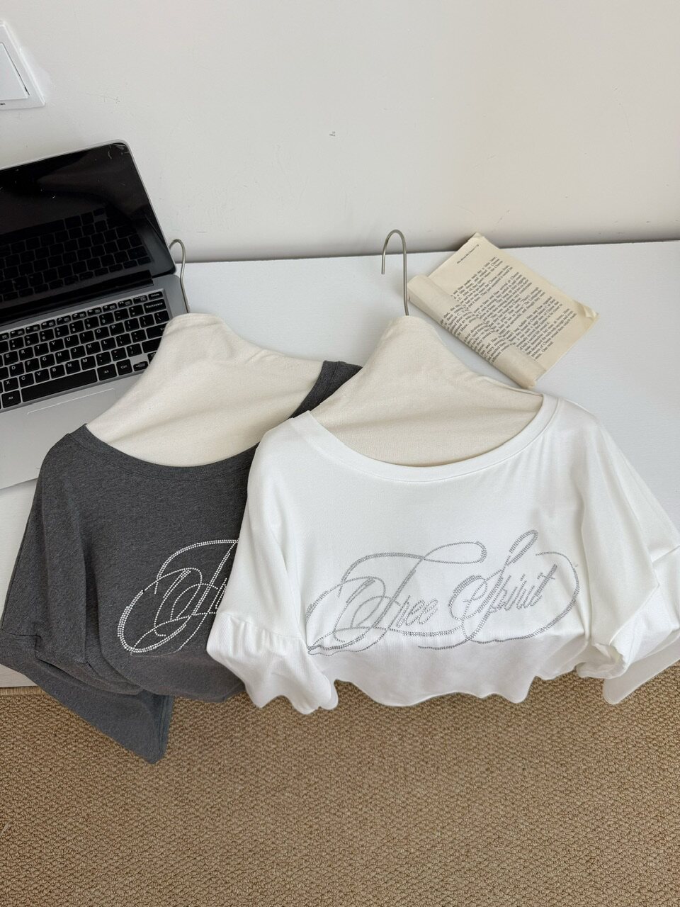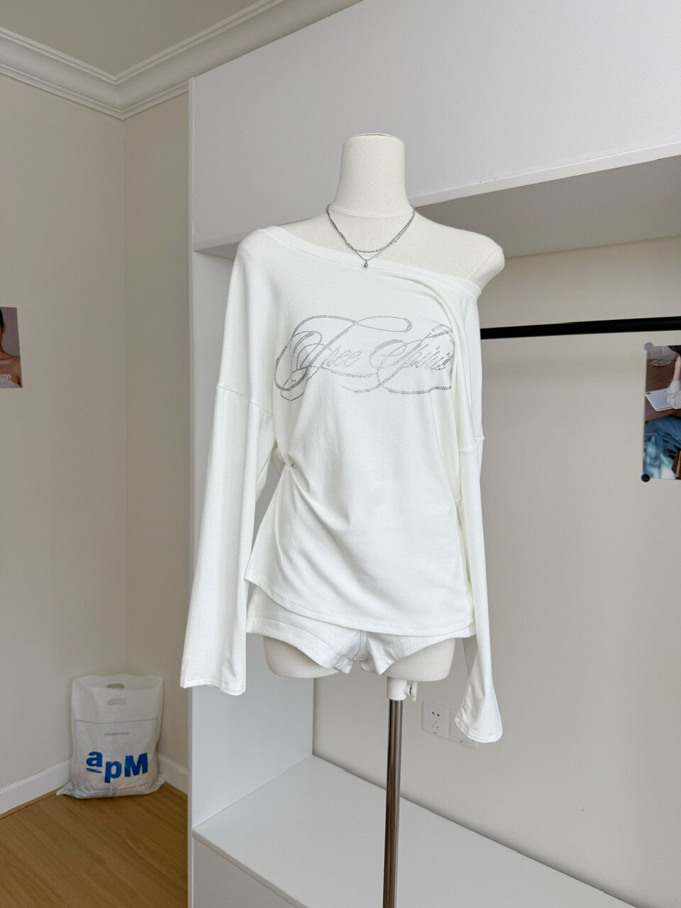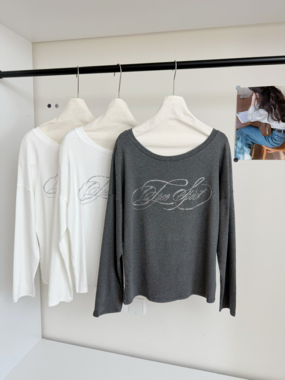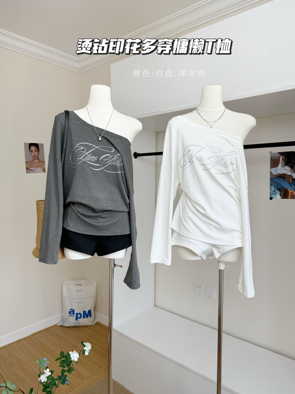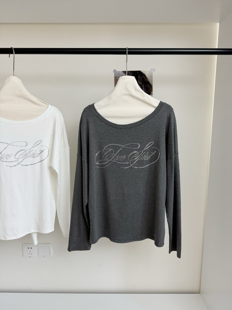 Lin Xi Xi 9.8 20:00 Cezanne's Brushwork Rhinestone Print Multi-Wear Casual Long-Sleeve T-Shirt