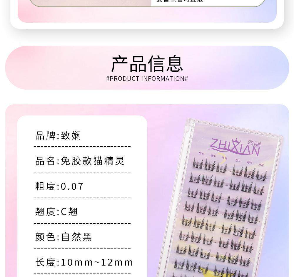 Zhixian glue-free self-adhesive cat elf false eyelashes, no need to remove