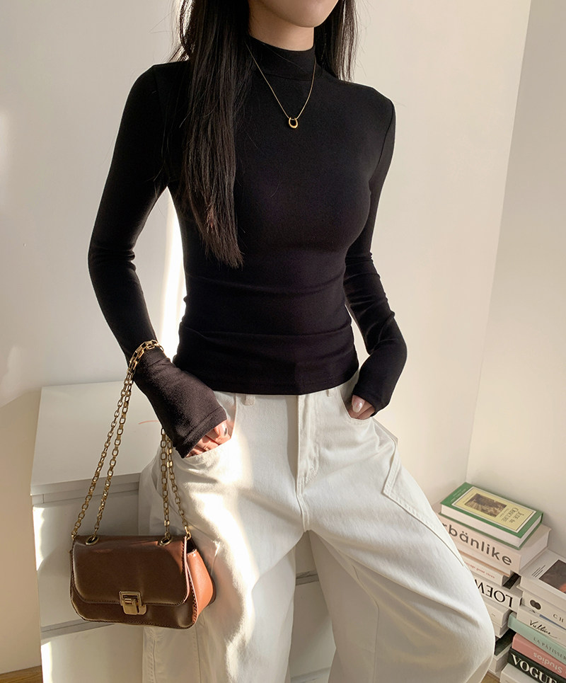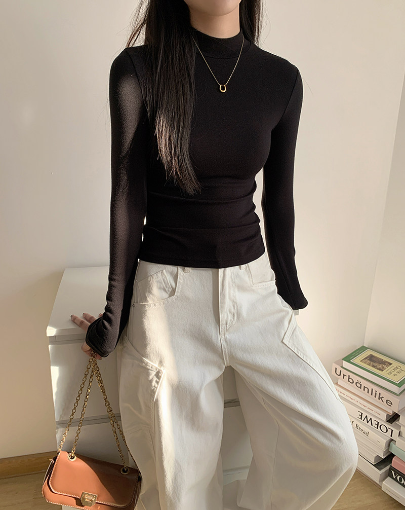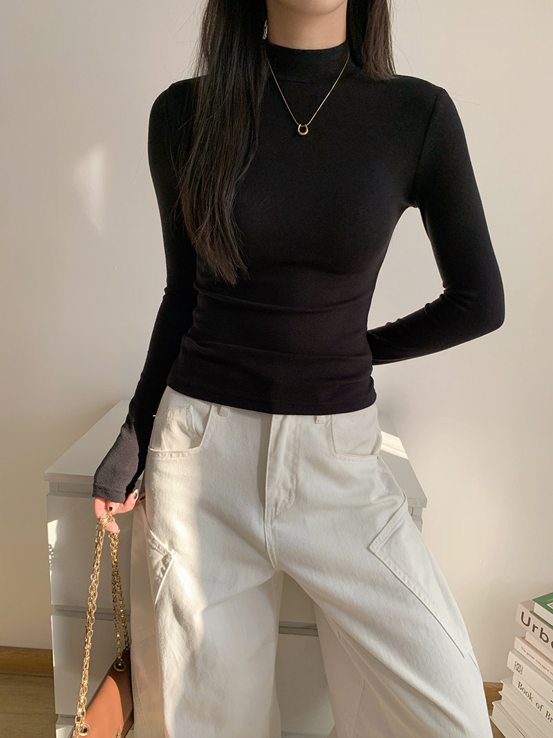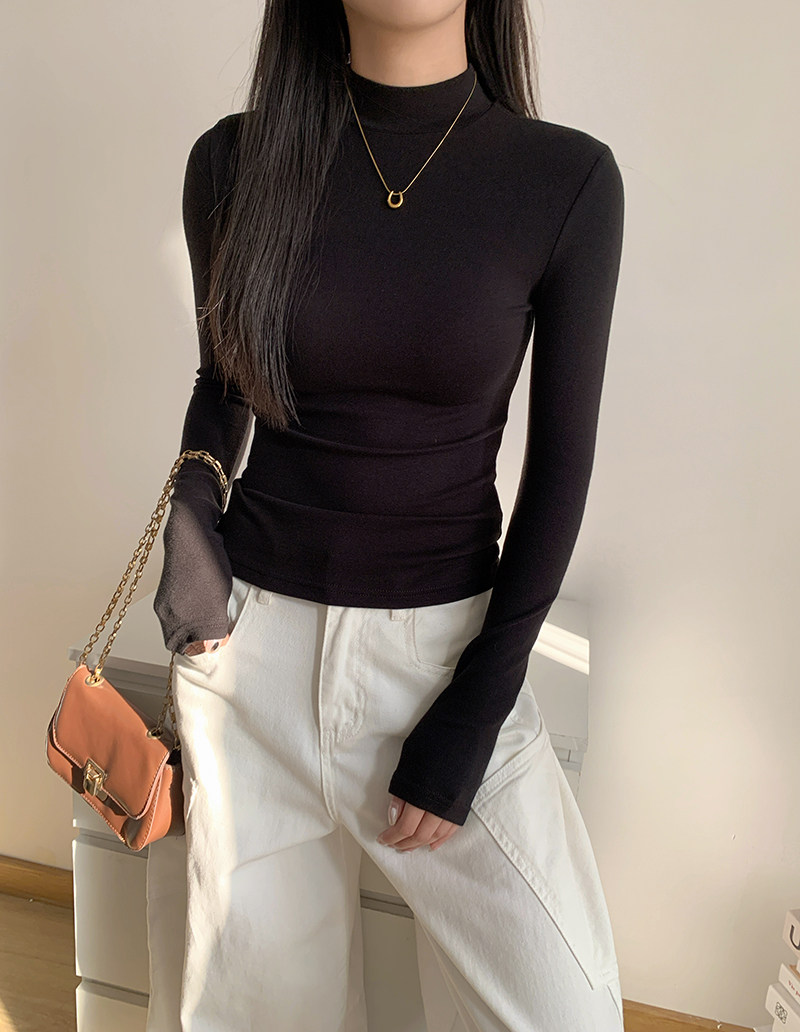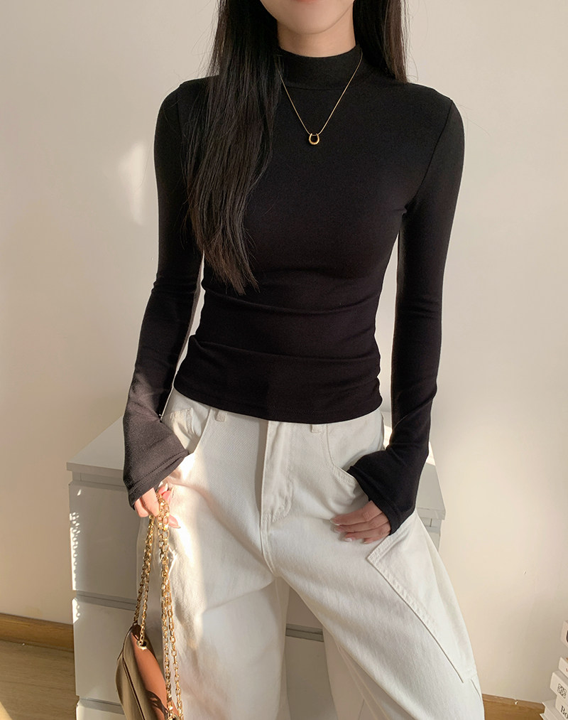 Half-Turtleneck Base Layer Shirt for Women, Suitable for Autumn and Winter, Stylish, Skin-Friendly, Versatile, Elegant, Slim-Fit, Stand-Up Collar, Long-Sleeve T-Shirt Top